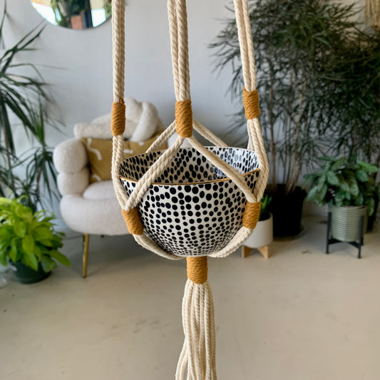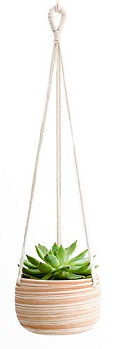 Mkono Ceramic Hanging Planter Macrame Plant Holder 5 Inch Cute Succulent Cactus Pot with Cotton Rope Hanger for Indoor Outdoor Decor, 1 Pack