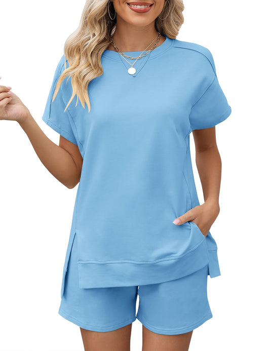 LOMON Womens Fashion 2 Piece Outfits Sweatsuits 2025 Summer Short Sleeve Loungewear Tracksuit Round Neck Lounge Shorts Sets