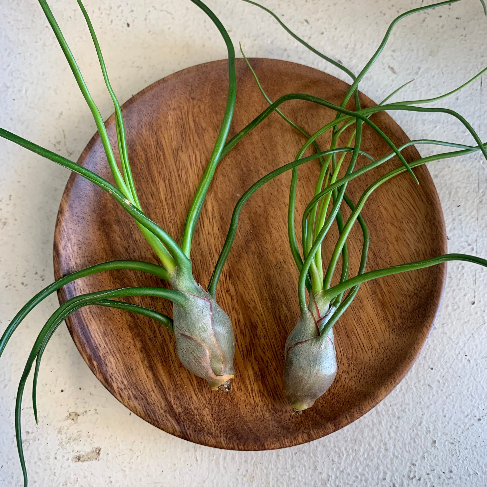 This wild air plant is similar in style to Caput Medusae and Butzii, but what makes Bulbosa special is its exaggerated bulbous base and firmly "waving" leaves. Bulbosa enjoy lower light levels and more frequent waterings than some of the more xeric air plants (IE Xerographica). If possible, this plant should always be turned upside down after watering to allow any water to escape from its pseudobulbous base.