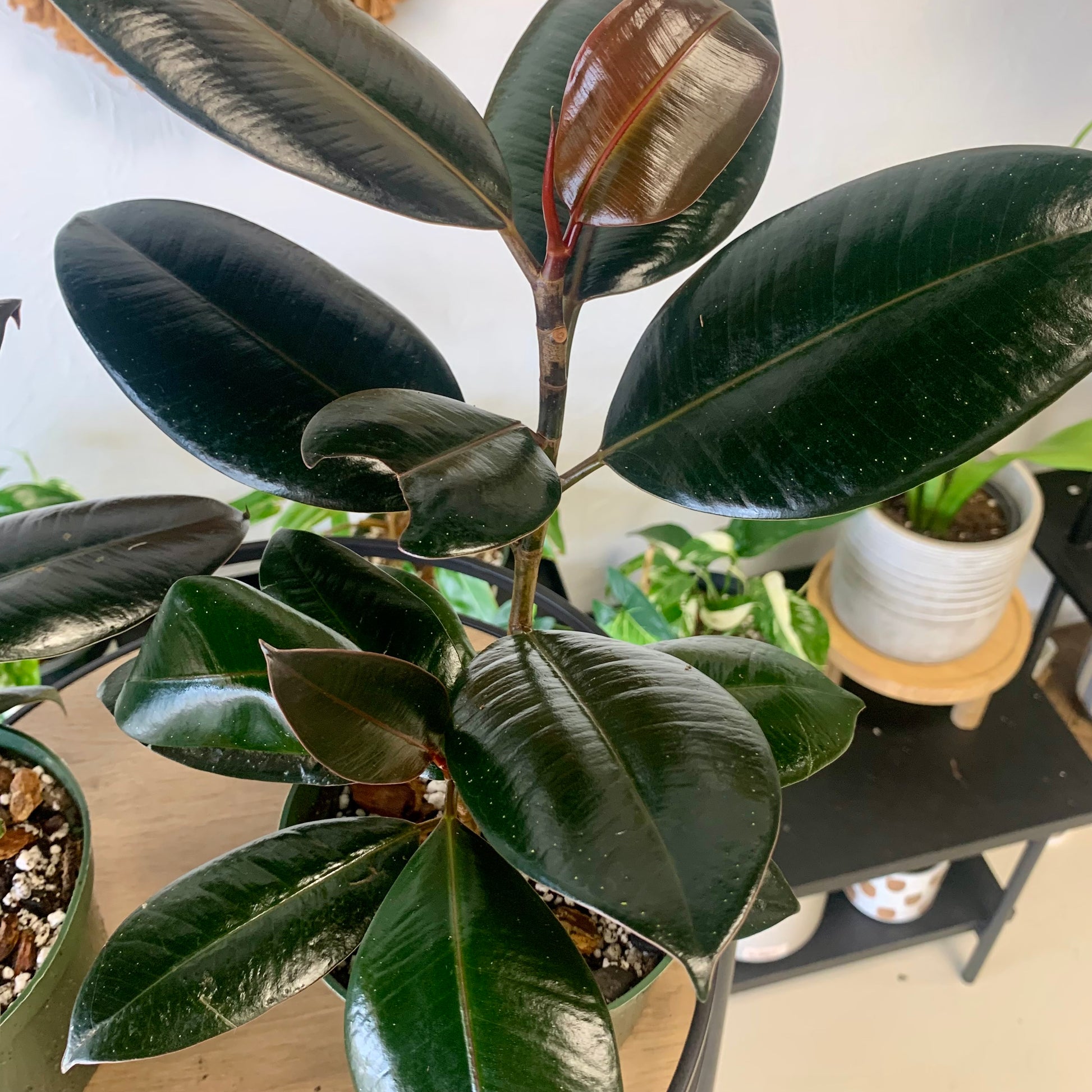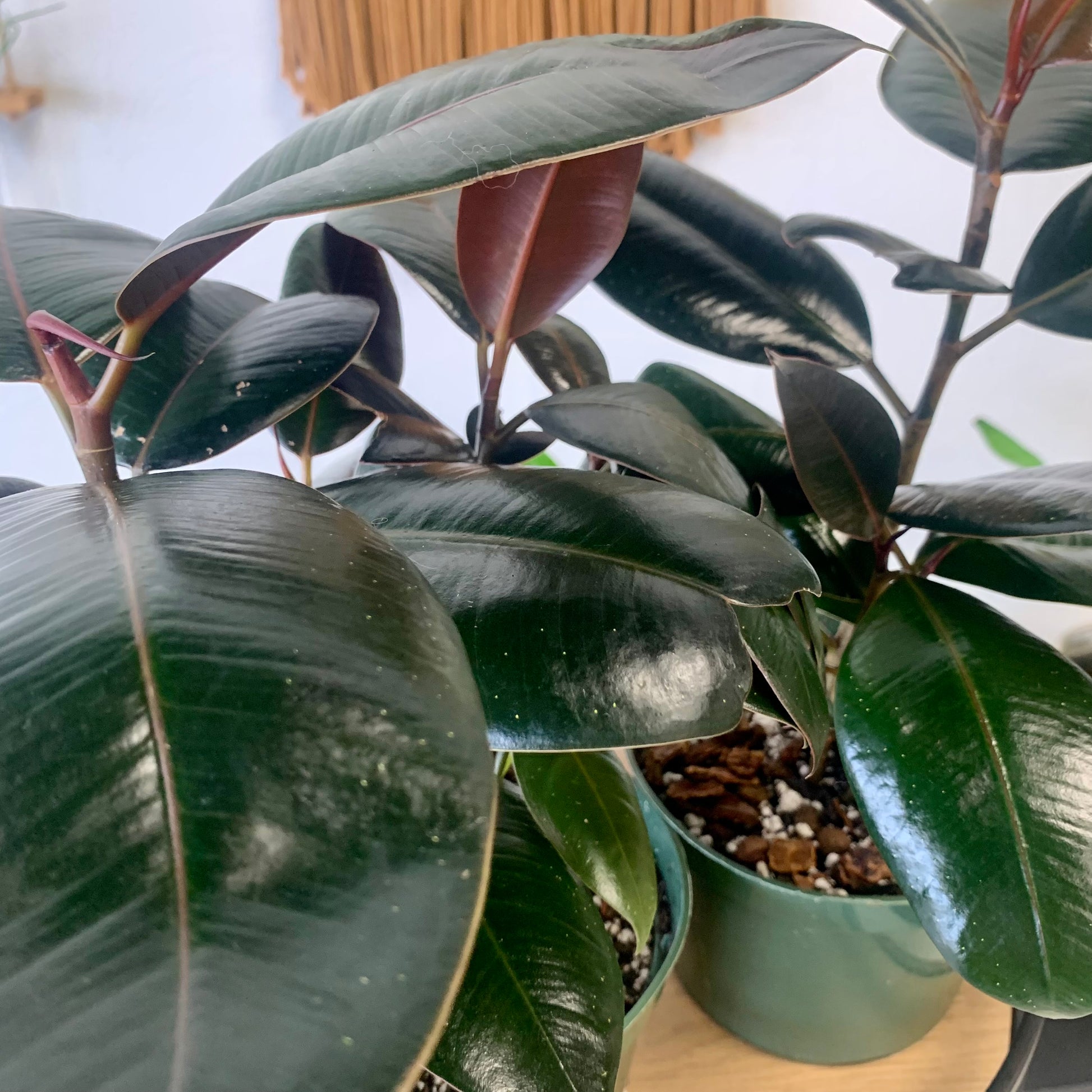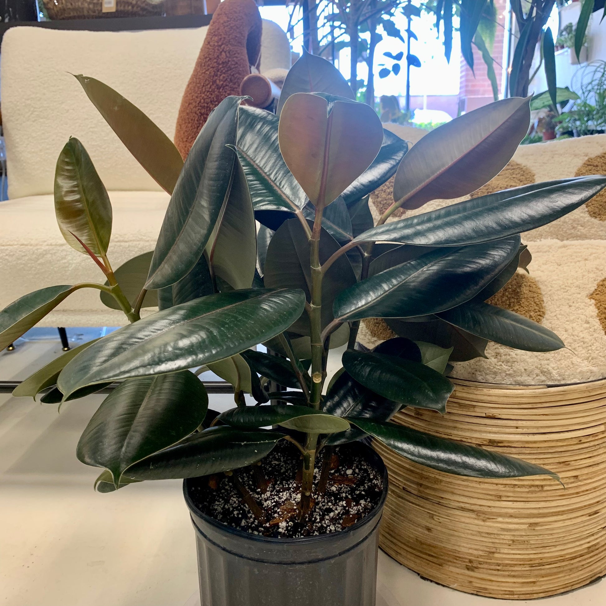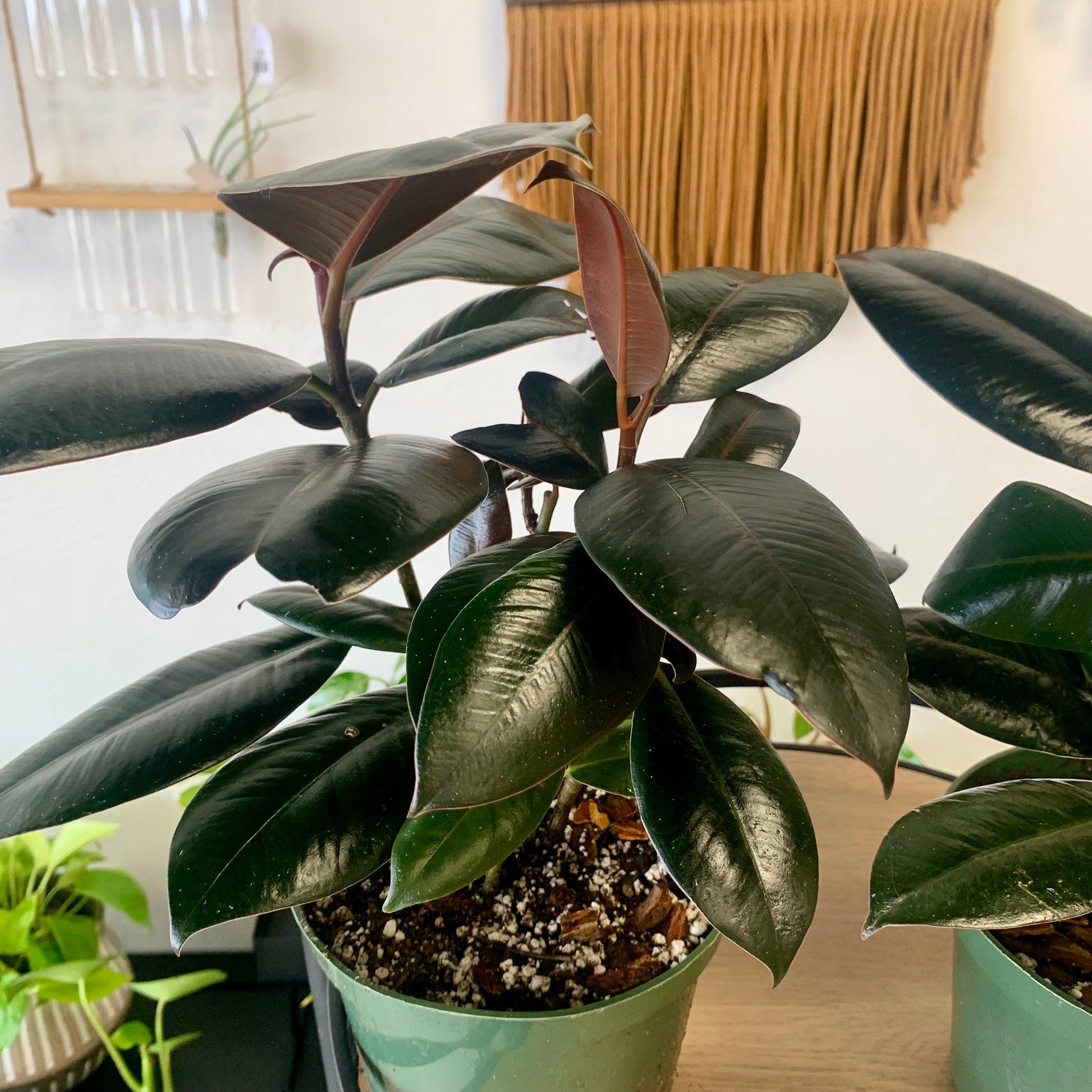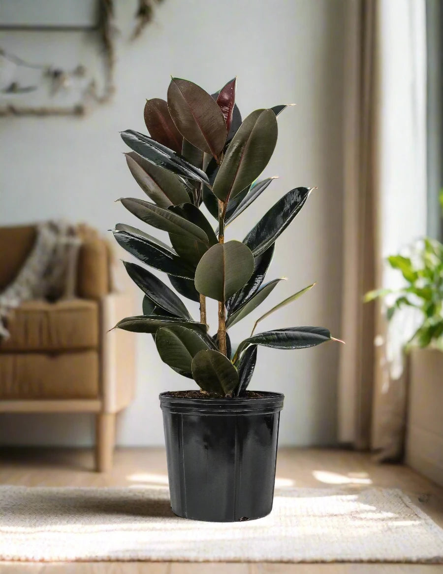 The Burgundy Rubber Tree is an easy, yet hardy indoor plant that is native to Southeast Asia. Commonly known as the Ficus Rubber plant, its glossy oval leaves and contrasting green and purple hues bring a modern touch to any home. While it starts off small in size, this plant grows into an indoor tree within a few years.