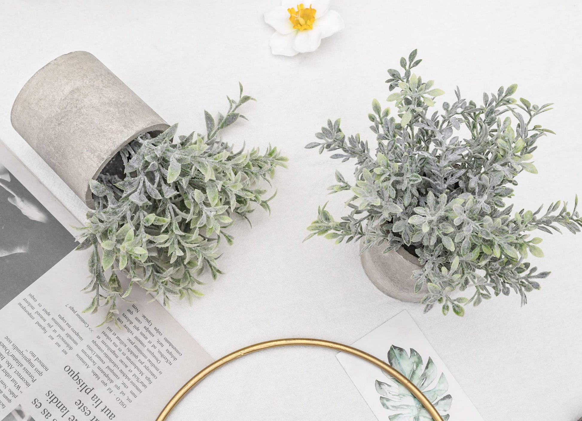 - Delicate Design: The lifelike desk plants can bring green life and freshness to your living space. We adopt a unique design to imitate the frosty gray-green leaves of eucalyptus, and flock the surface of each potted plant. The sage green leaves make them look more realistic, which is not dust, please don't worry about it