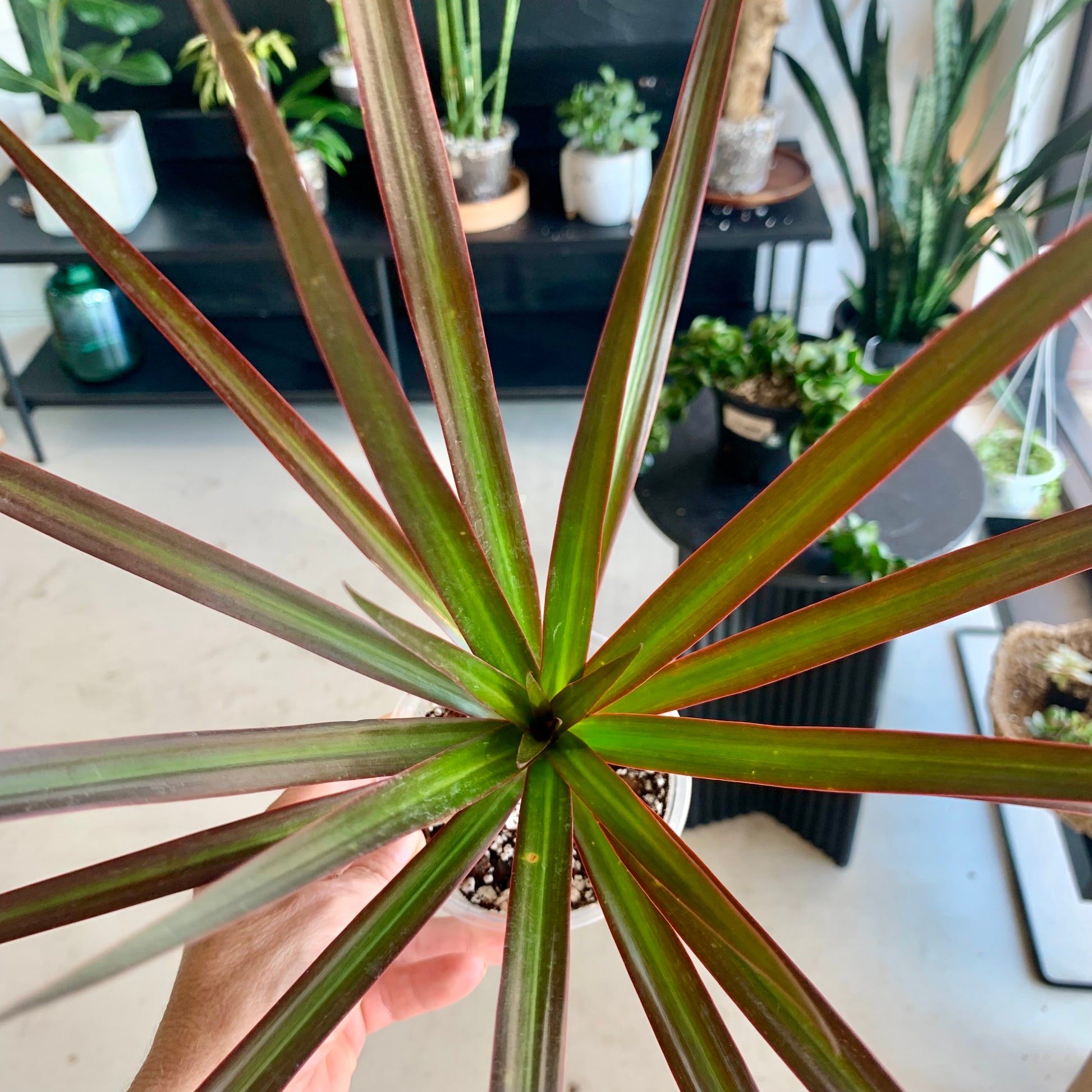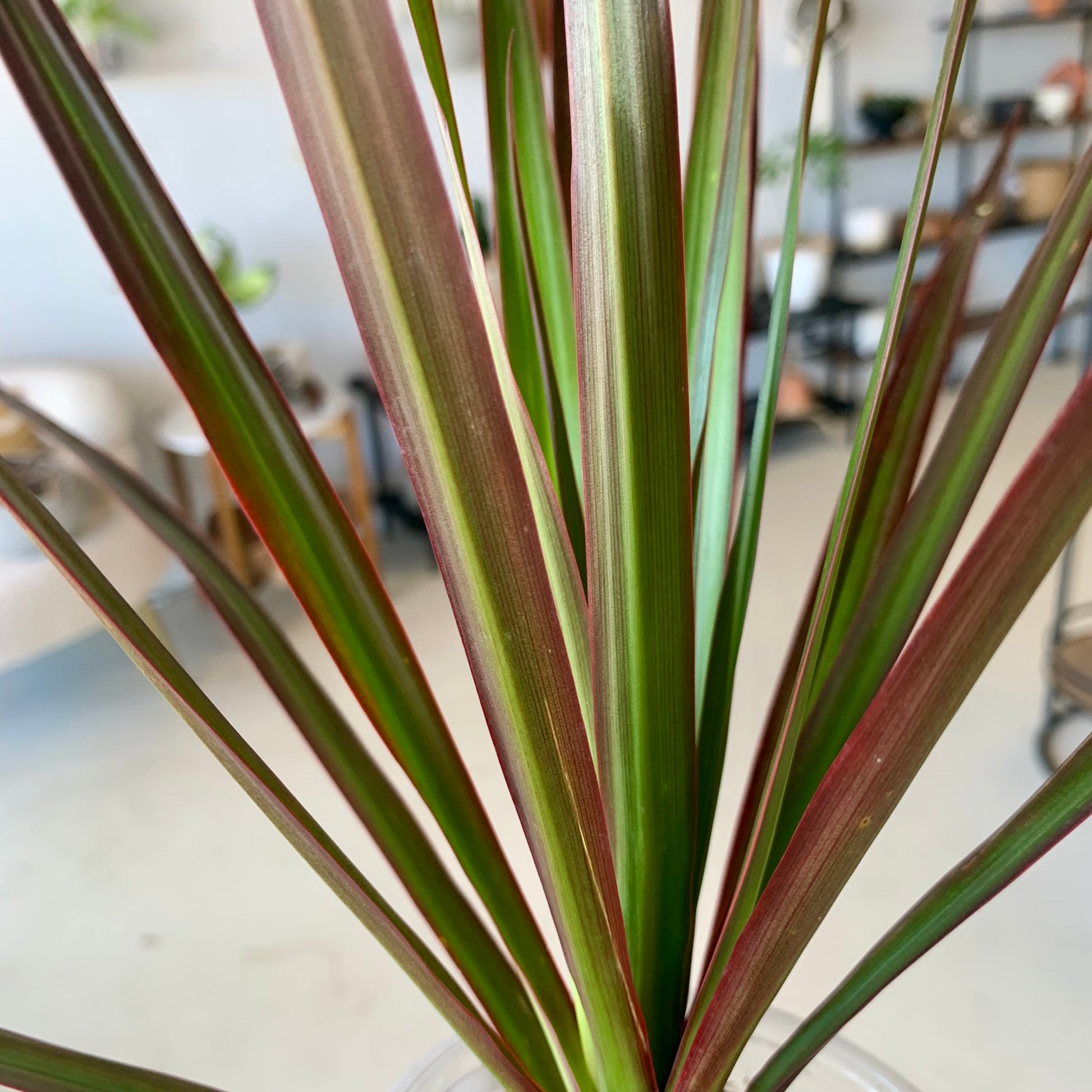 Dracaena Marginata, also known as the "Dragon Tree" is a great low maintenance plant with striking narrow leaves and a thin curving trunk. A great beginner plant that is easy to care for.