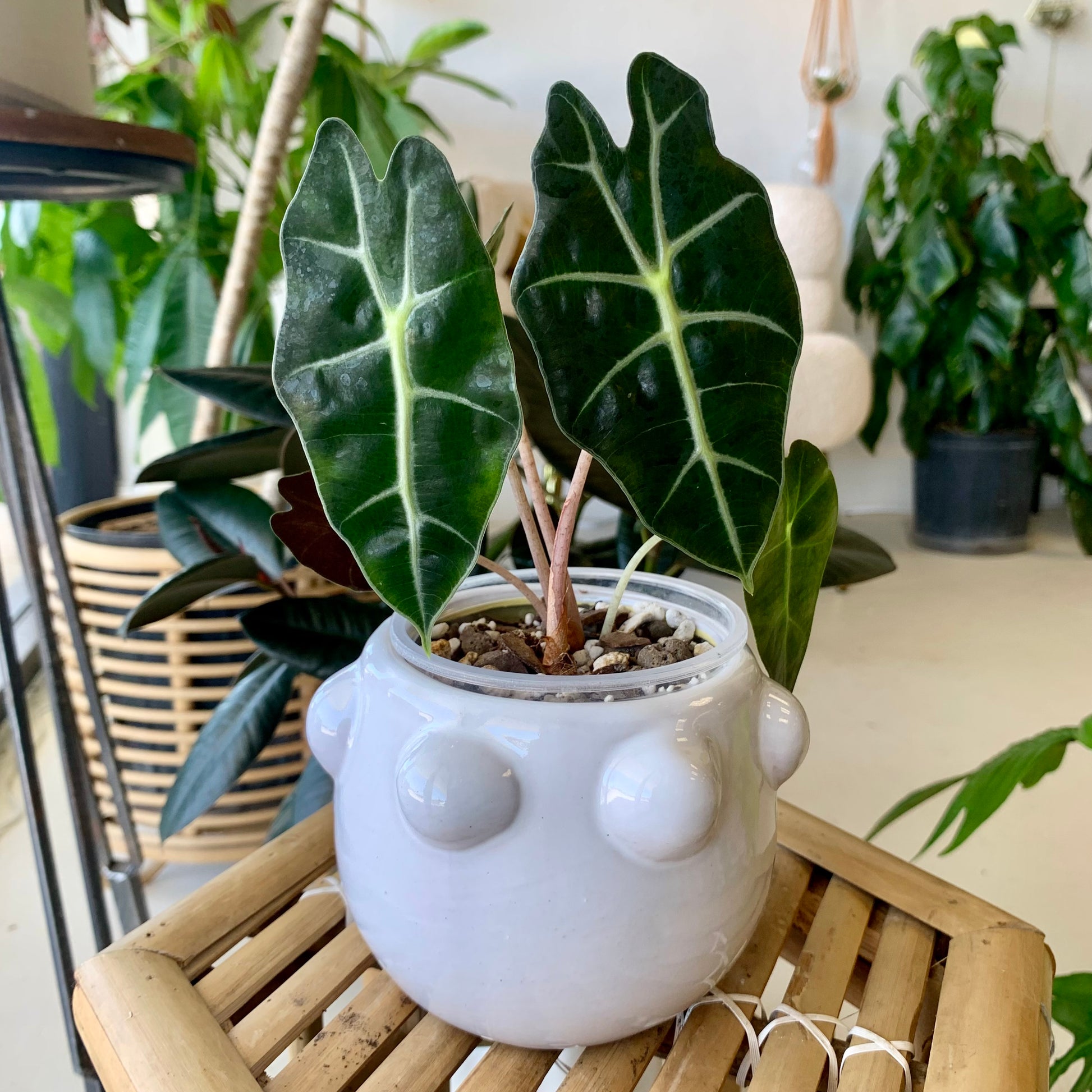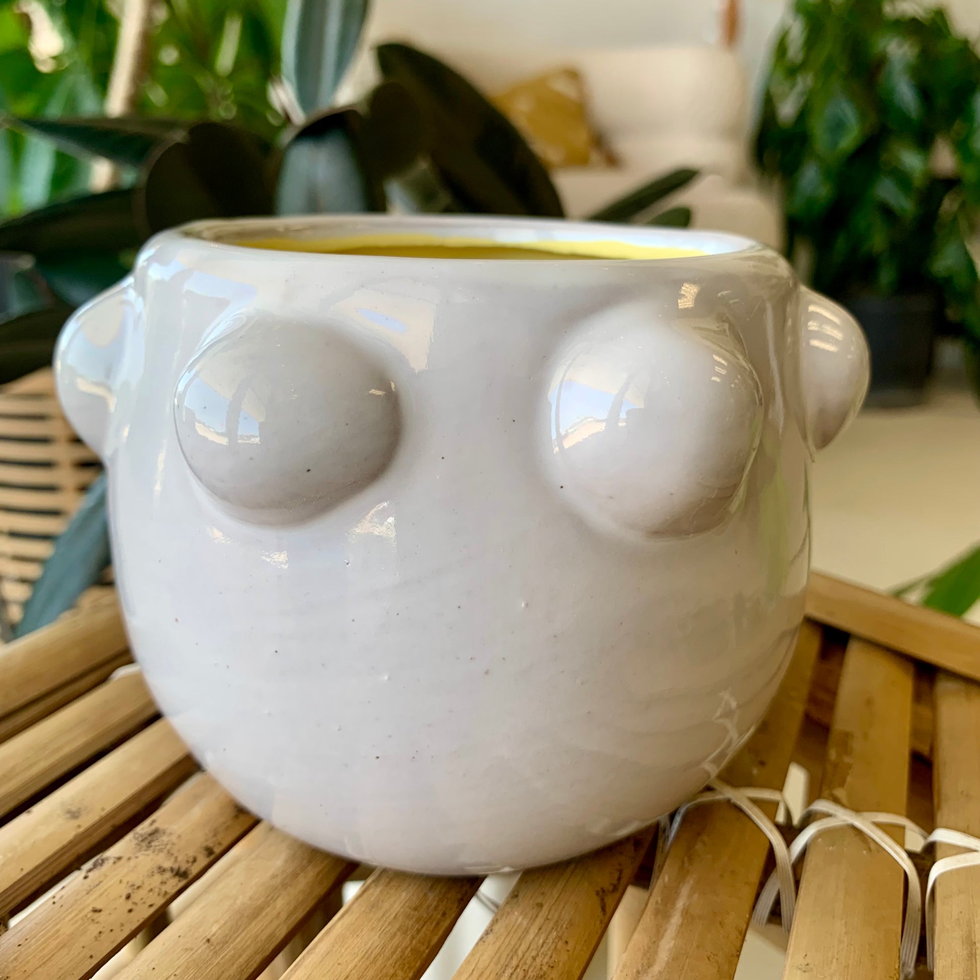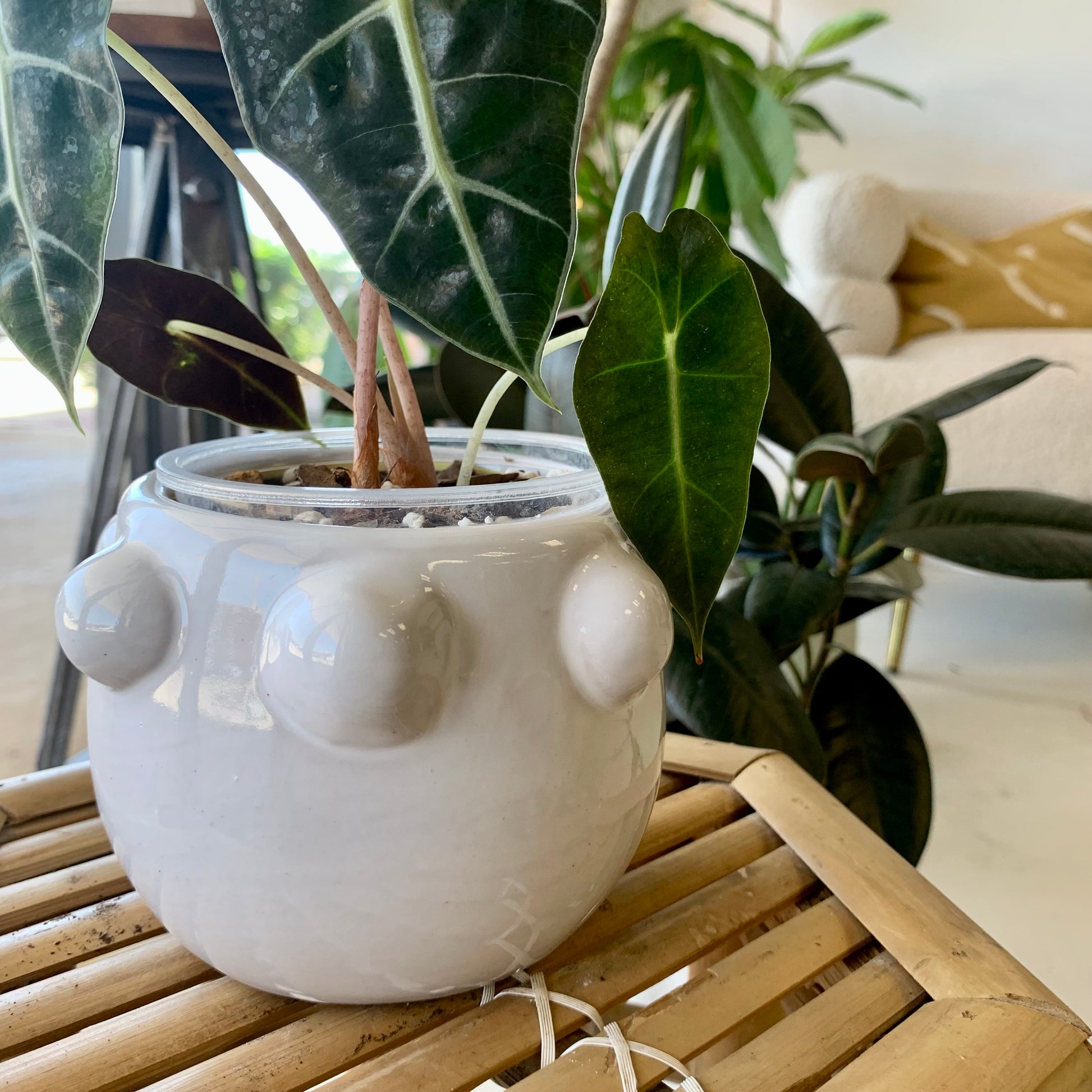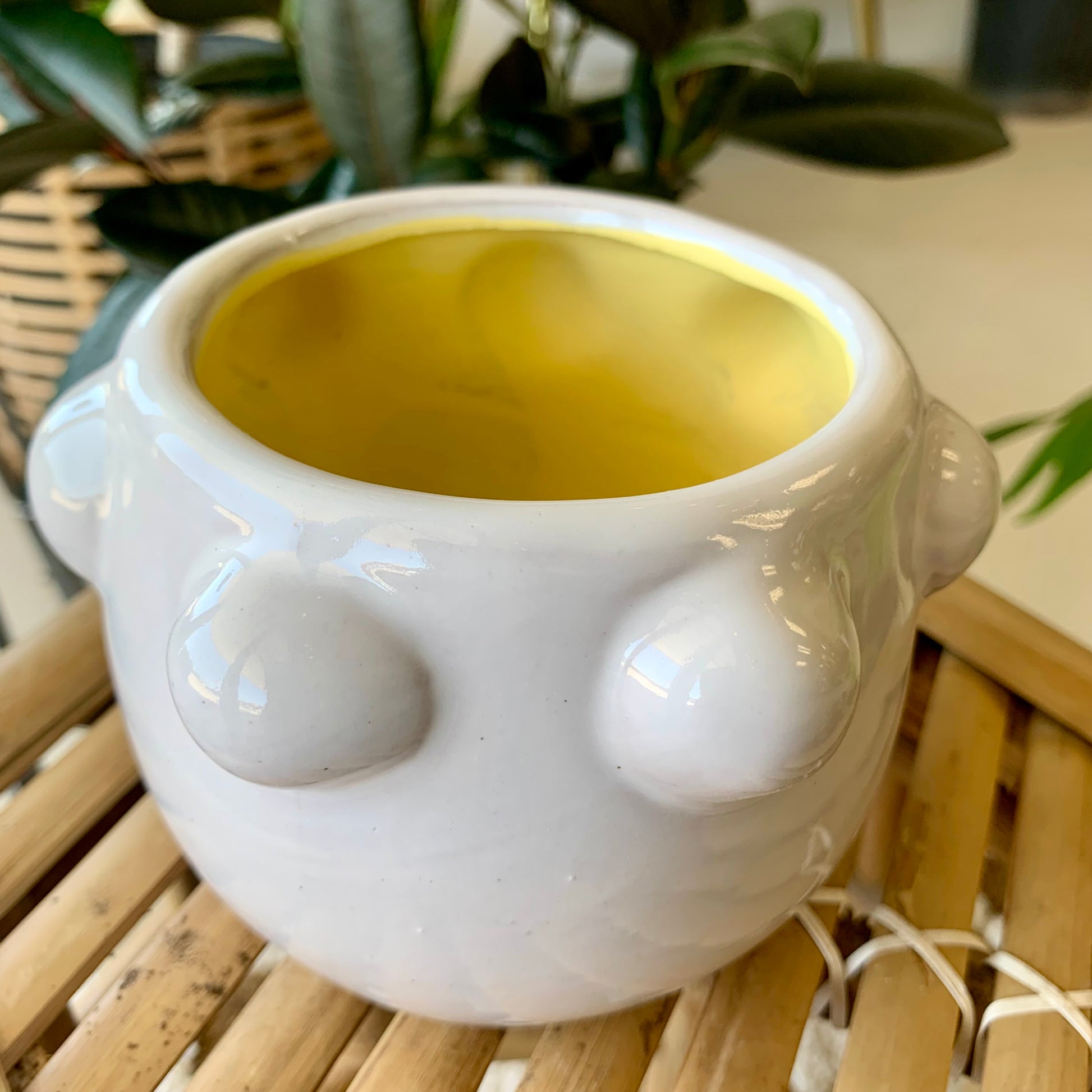 Create a beautiful and stylish display with our unique Fem Rosa Pot. Featuring a shiny white ceramic design with fun orbs for added dimension, this pot is the perfect addition to any room or outdoor space. Elevate your decor and add a touch of elegance with our Fem Rosa Pot today!