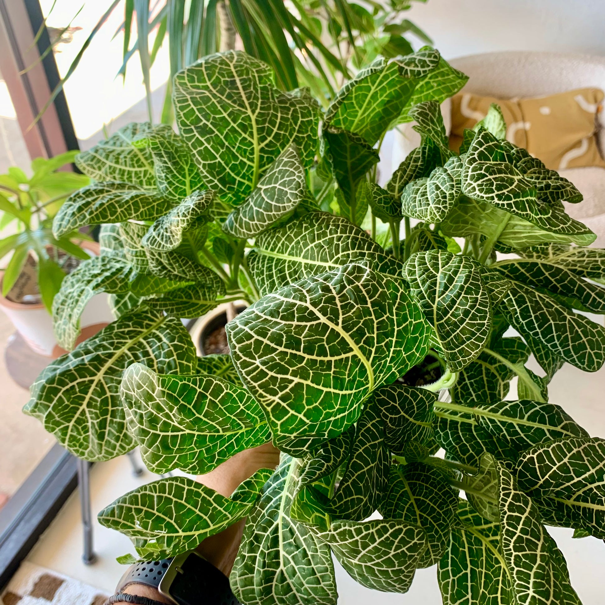 As a tropical plant that naturally grows in the humid, bright shade of tropical forests, this plant prefers similar conditions when grown as a houseplant. It dislikes full sunlight, preferring bright, indirect sun, such as that offered by north-facing windows. You can also keep a nerve plant in the bathroom even if there's low lighting.