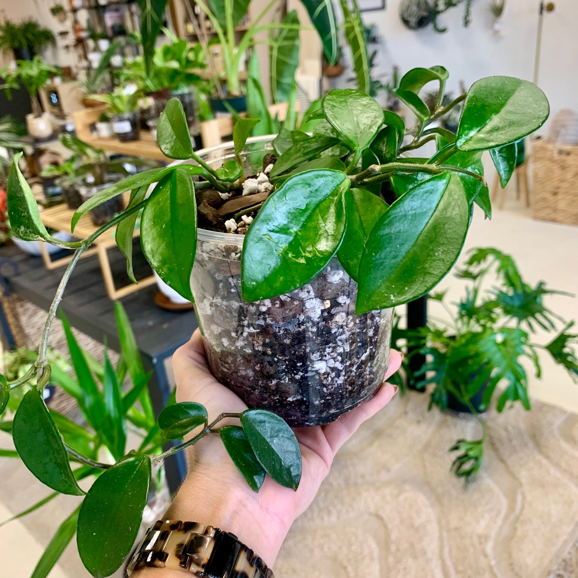 The Hoya Meliflua is a fast-growing vining Hoya. As with most Hoya plants, it prefers brighter indirect light, allow the soil to nearly completely dry out between waterings.