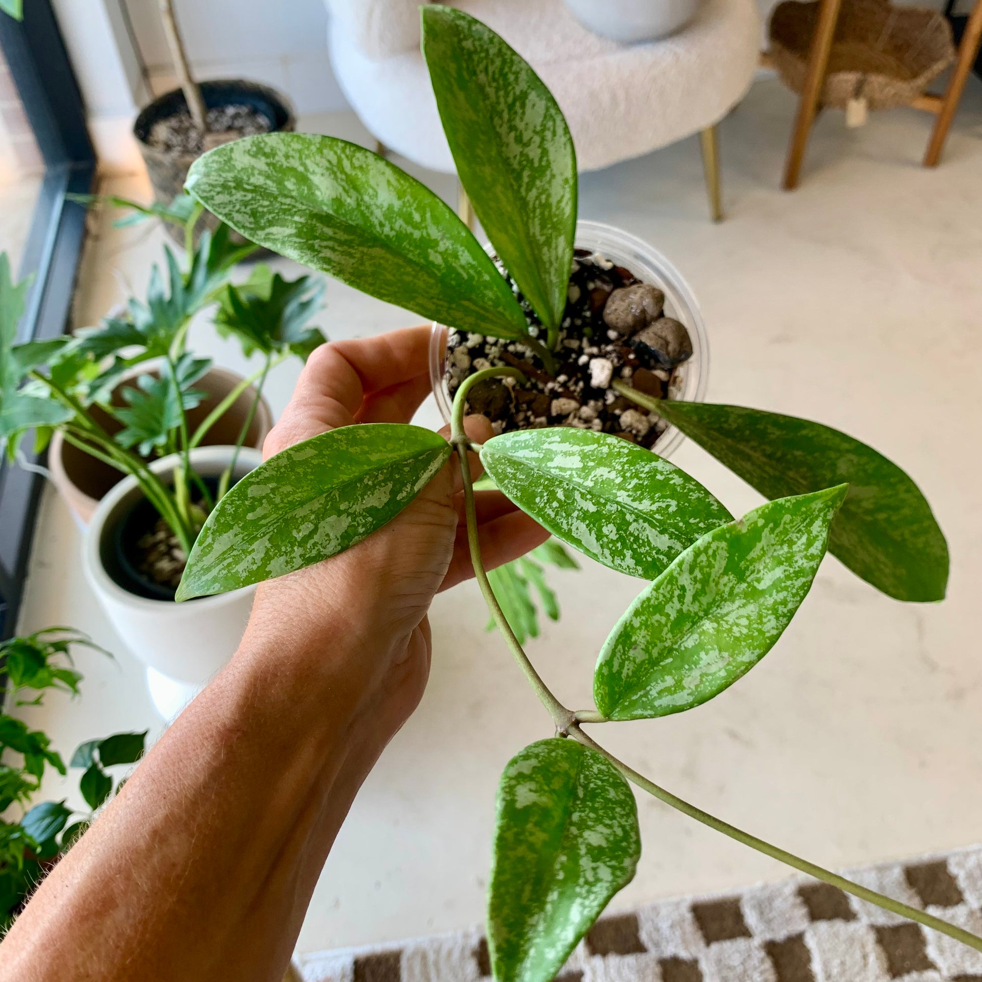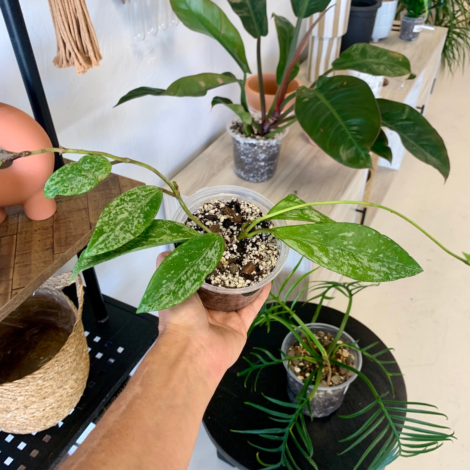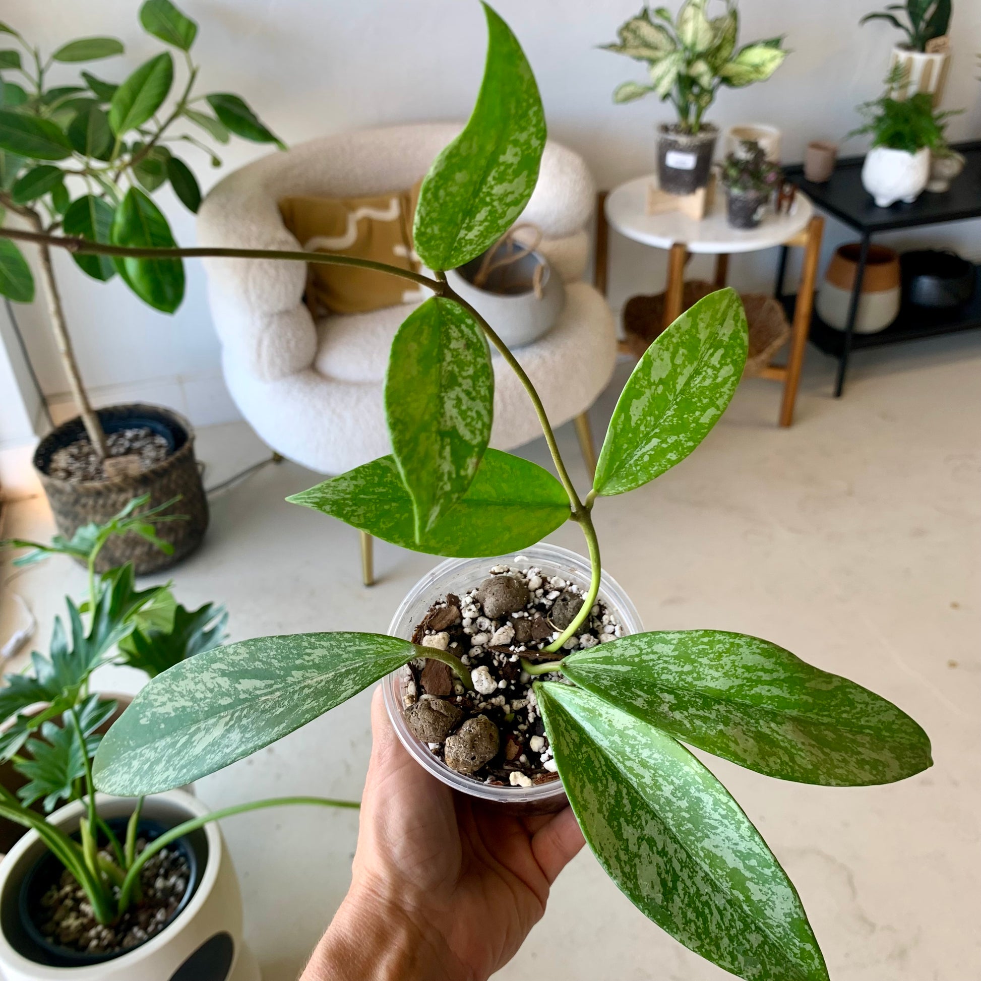 Hoyas, known more commonly as 'wax Plants' are a relatively low-maintenance and gorgeous addition to your plant collection and this Silver Splash Hoya is no exception!
