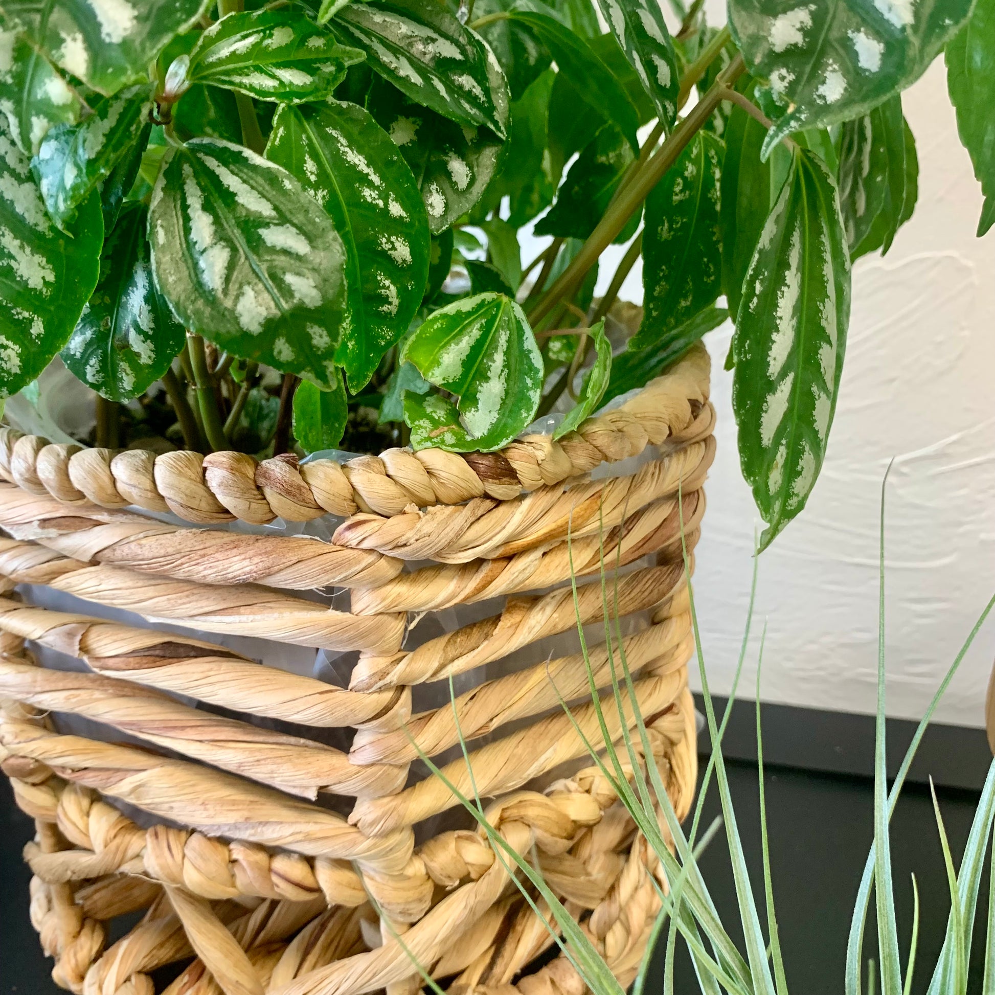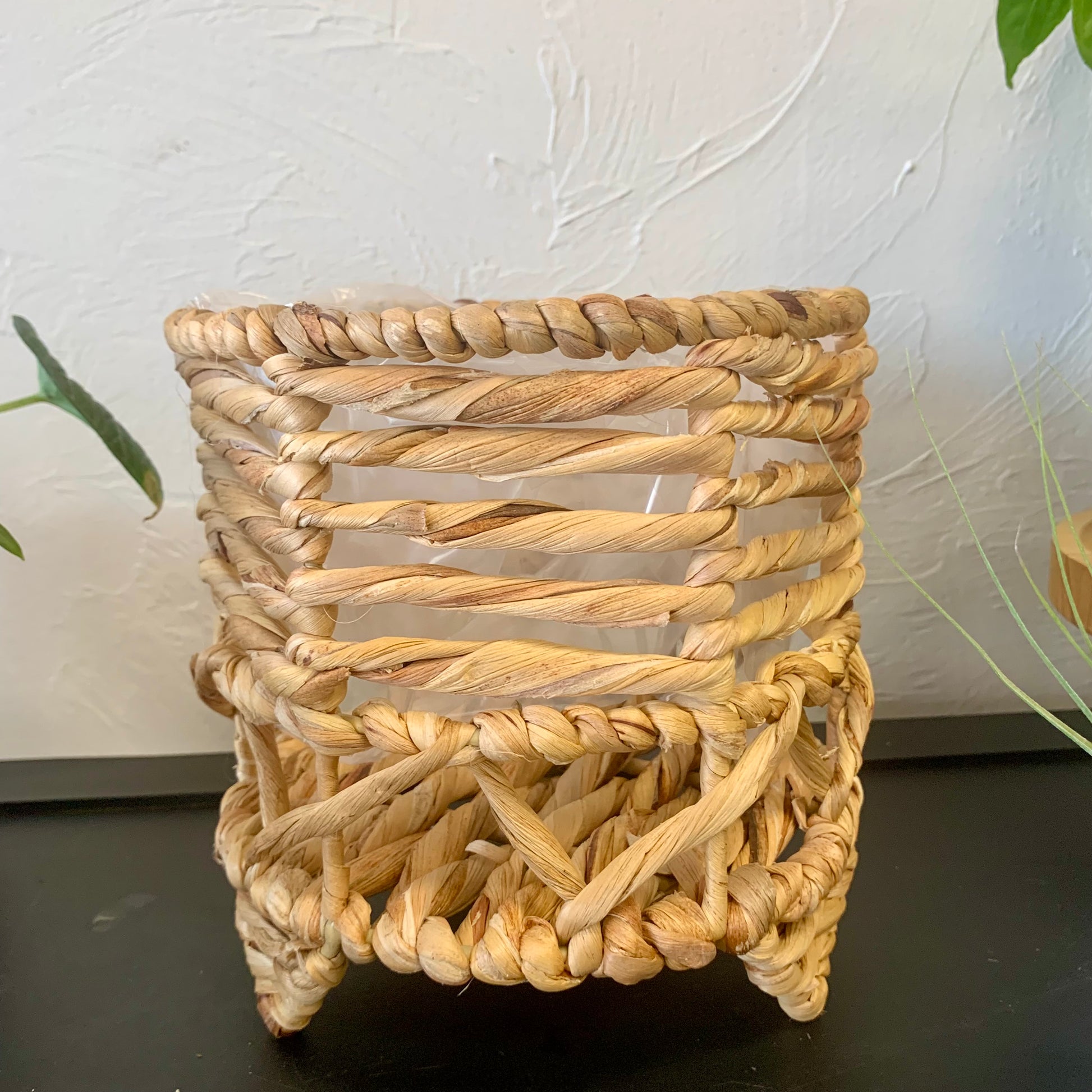 Enhance your space with the natural beauty of this lined seagrass planter. The perfect addition to any bohemian themed room, it's handcrafted for a unique and charming touch. Measuring at 8.5" tall and 8" in diameter, it's the ideal size for a variety of plants.