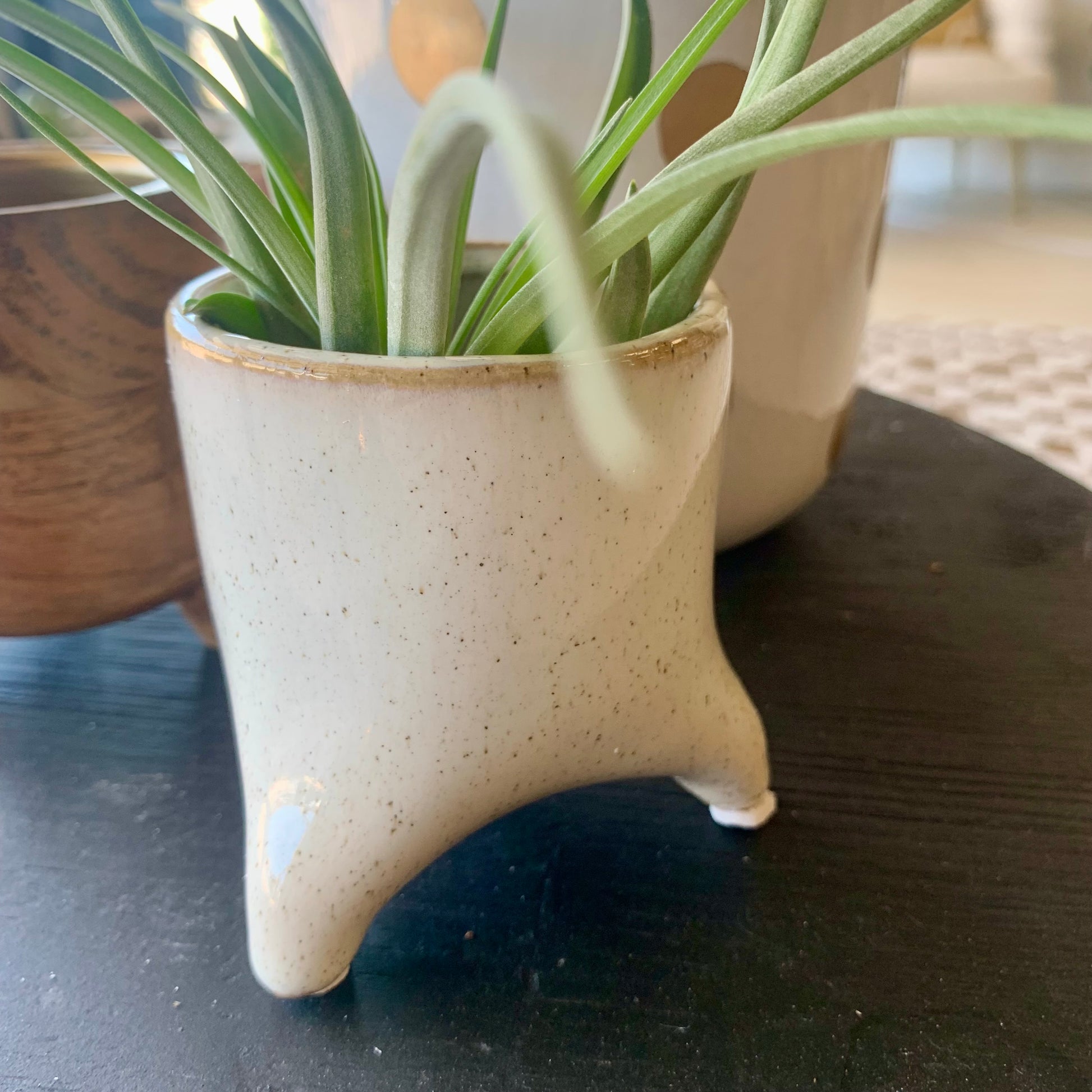 Mini tripod pot is adorable and a cute planter to display small succulents or cacti or even your favorite air plant! Turn your home into a little garden with this charming, versatile Mini Pot! Whether you have a green thumb or just a love for quirky decor, this mini tripod pot is sure to brighten up any space. Perfect for showing off your favorite plants, it's also a great way to add a touch of nature to your home.