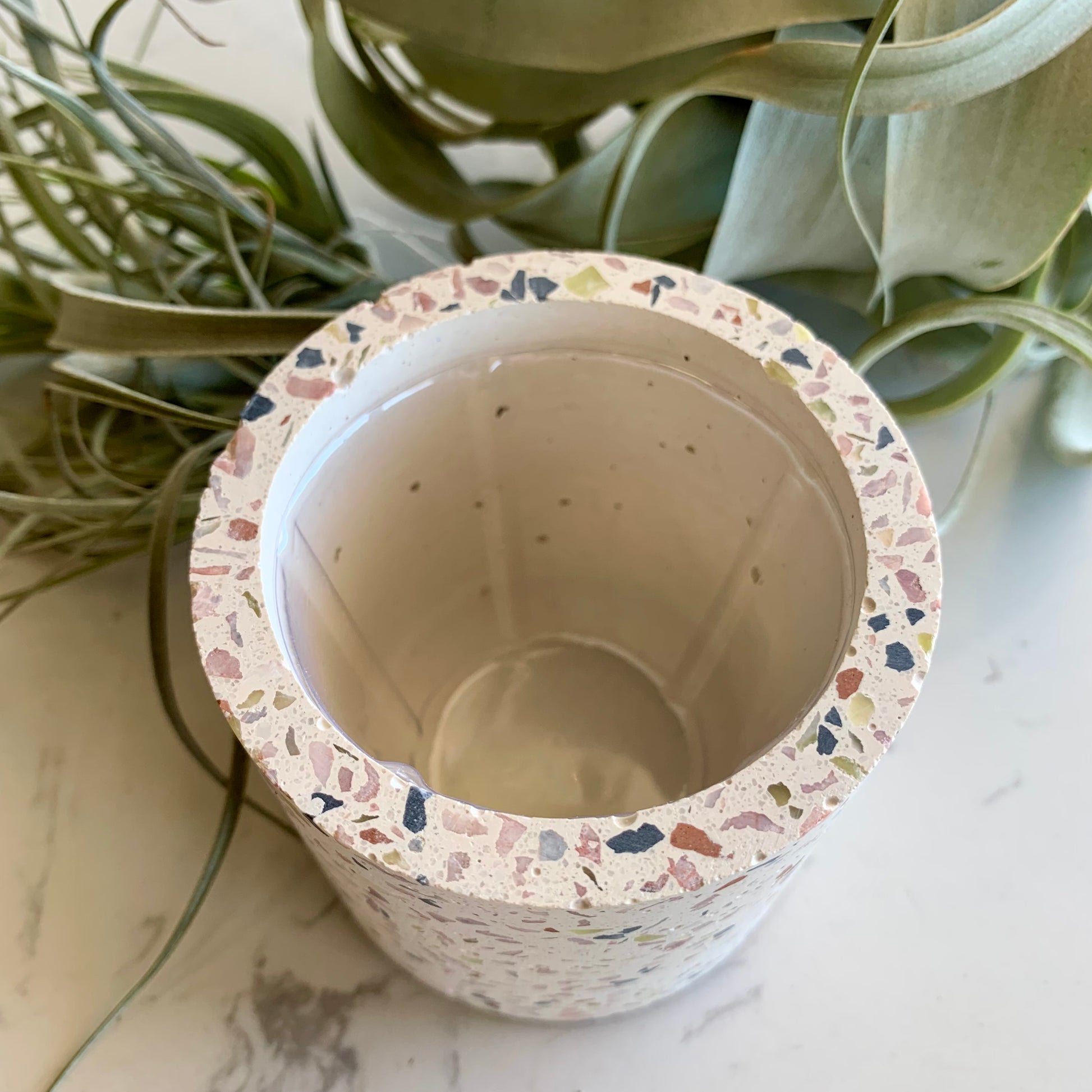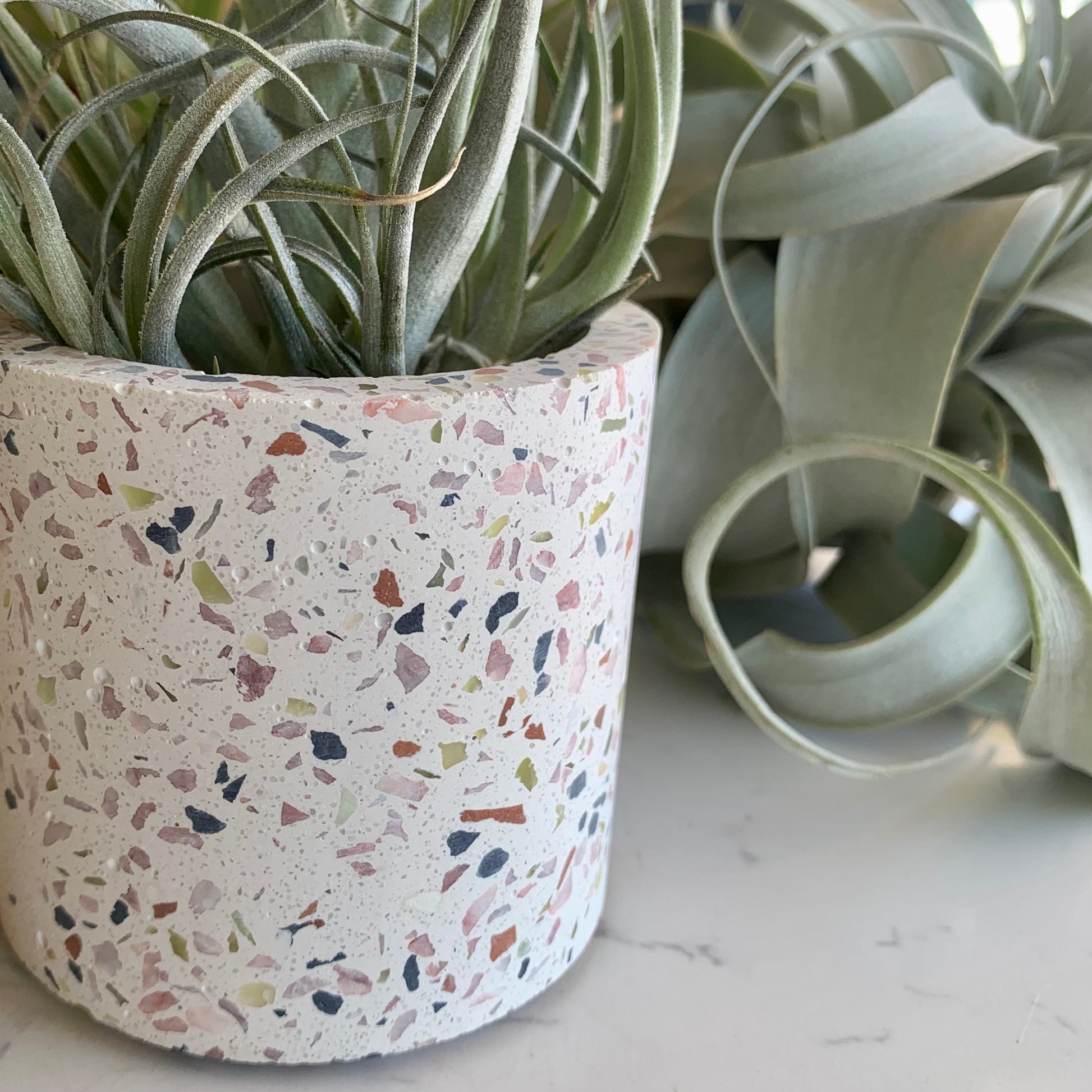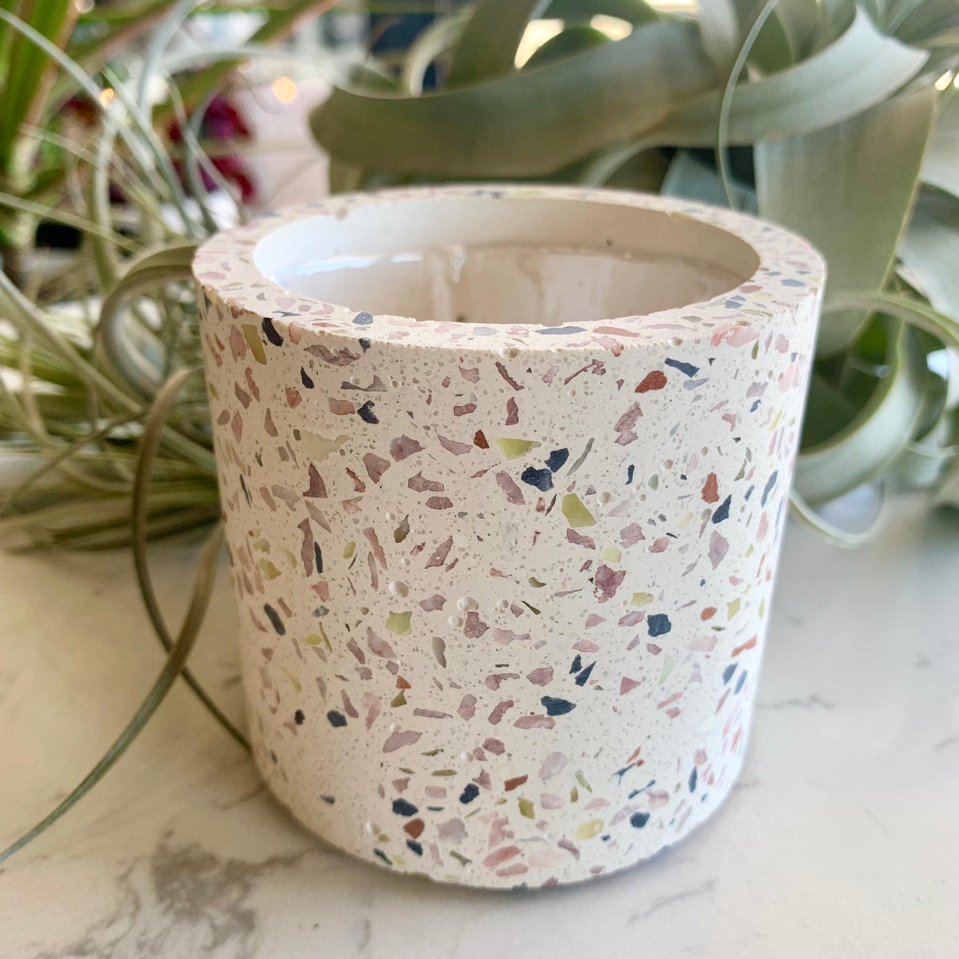 Display your beloved plants, succulents, and air plants in this charming mini terrazzo pot! The trendy design has been updated to seamlessly integrate into modern interior decor. Has plastic removable liner.
