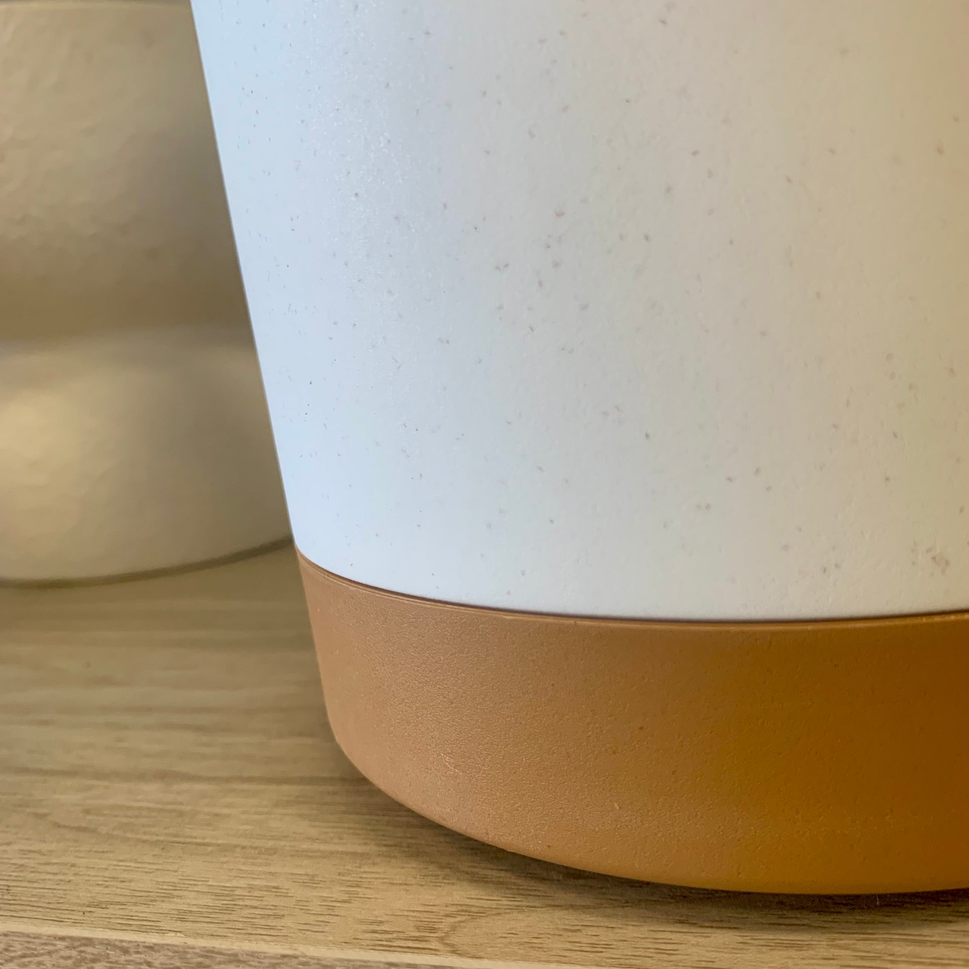 Modern plastic planter with removable drainage/self-watering tray. Lots of drainage in bottom and a great size at 6.5" in diameter and 6.25" tall with tray.