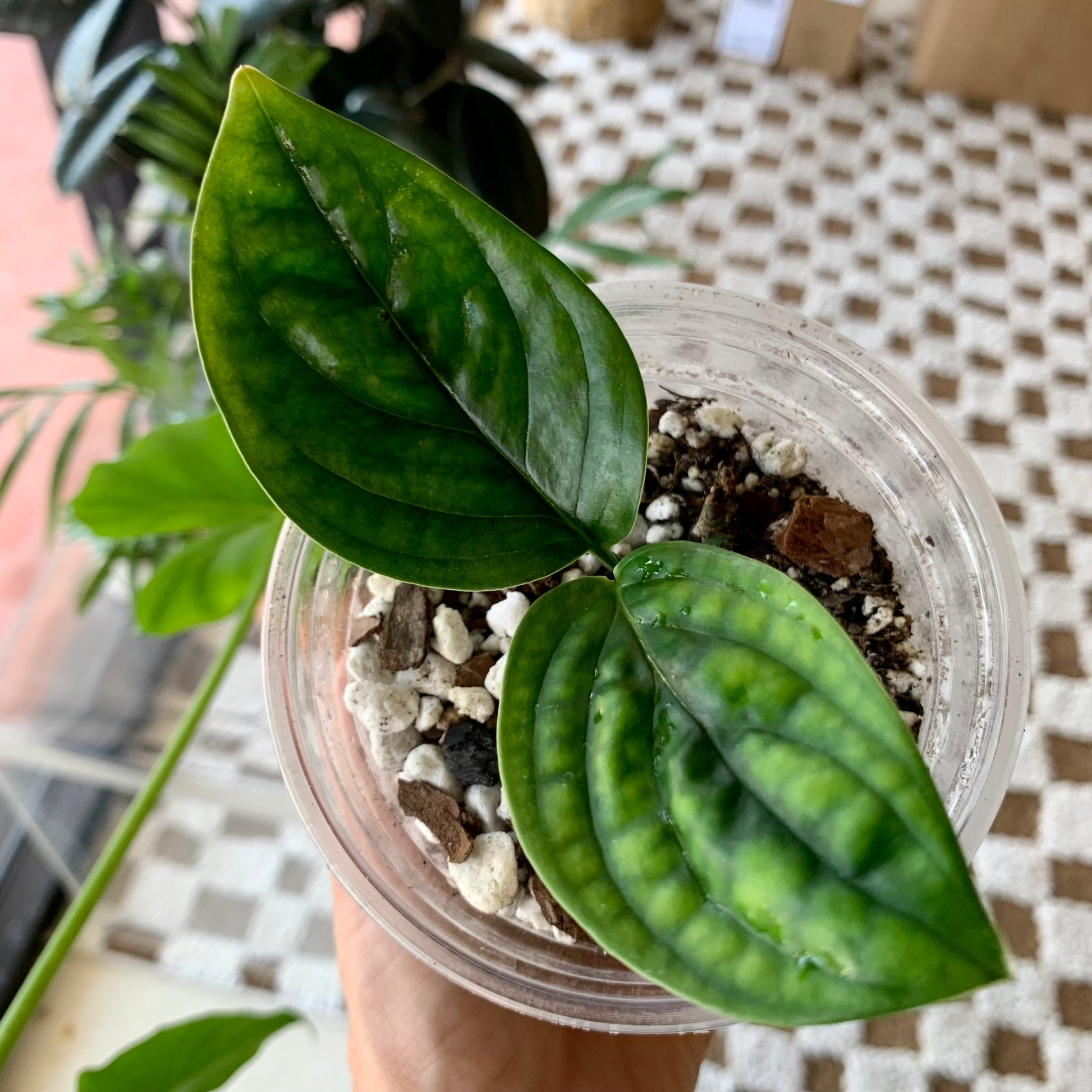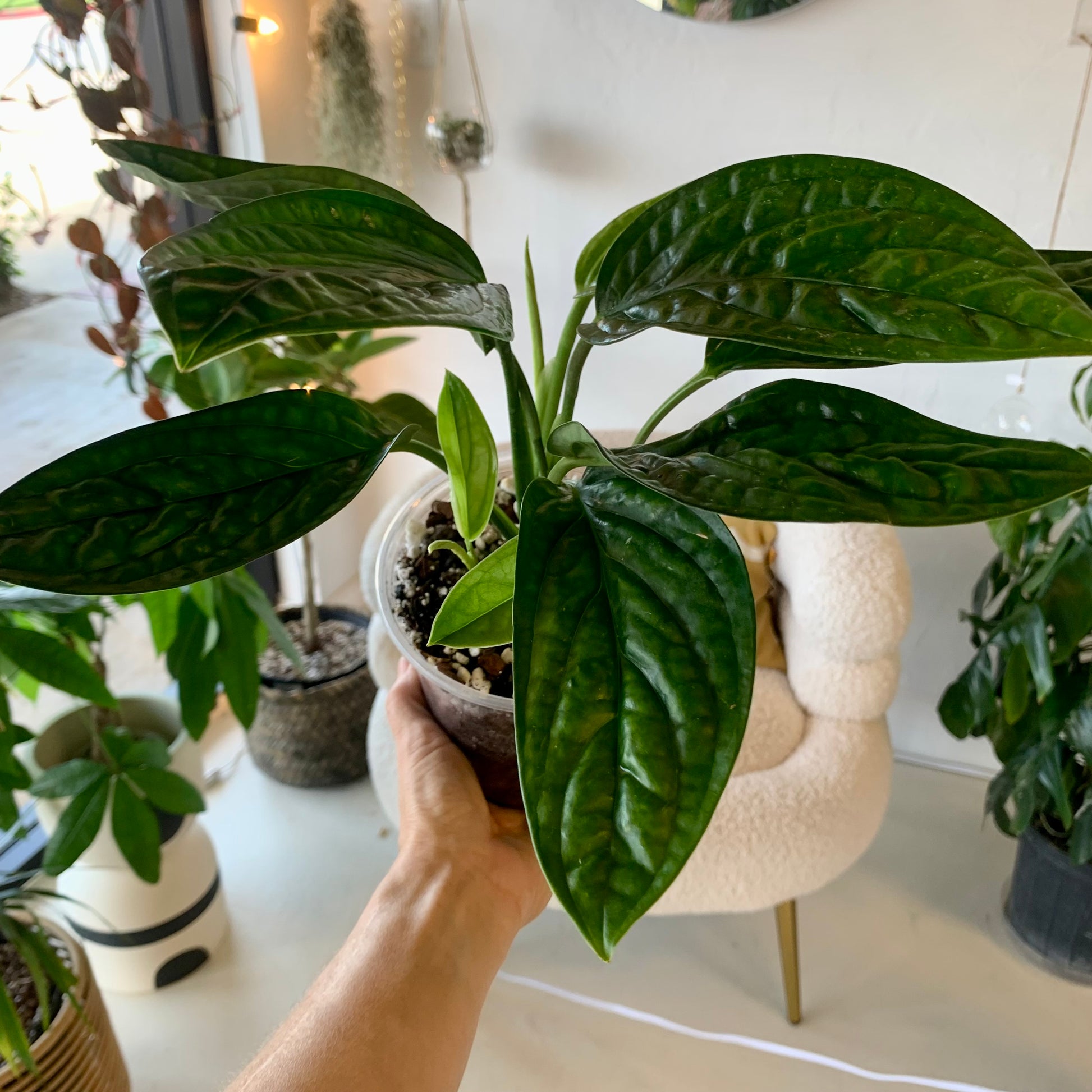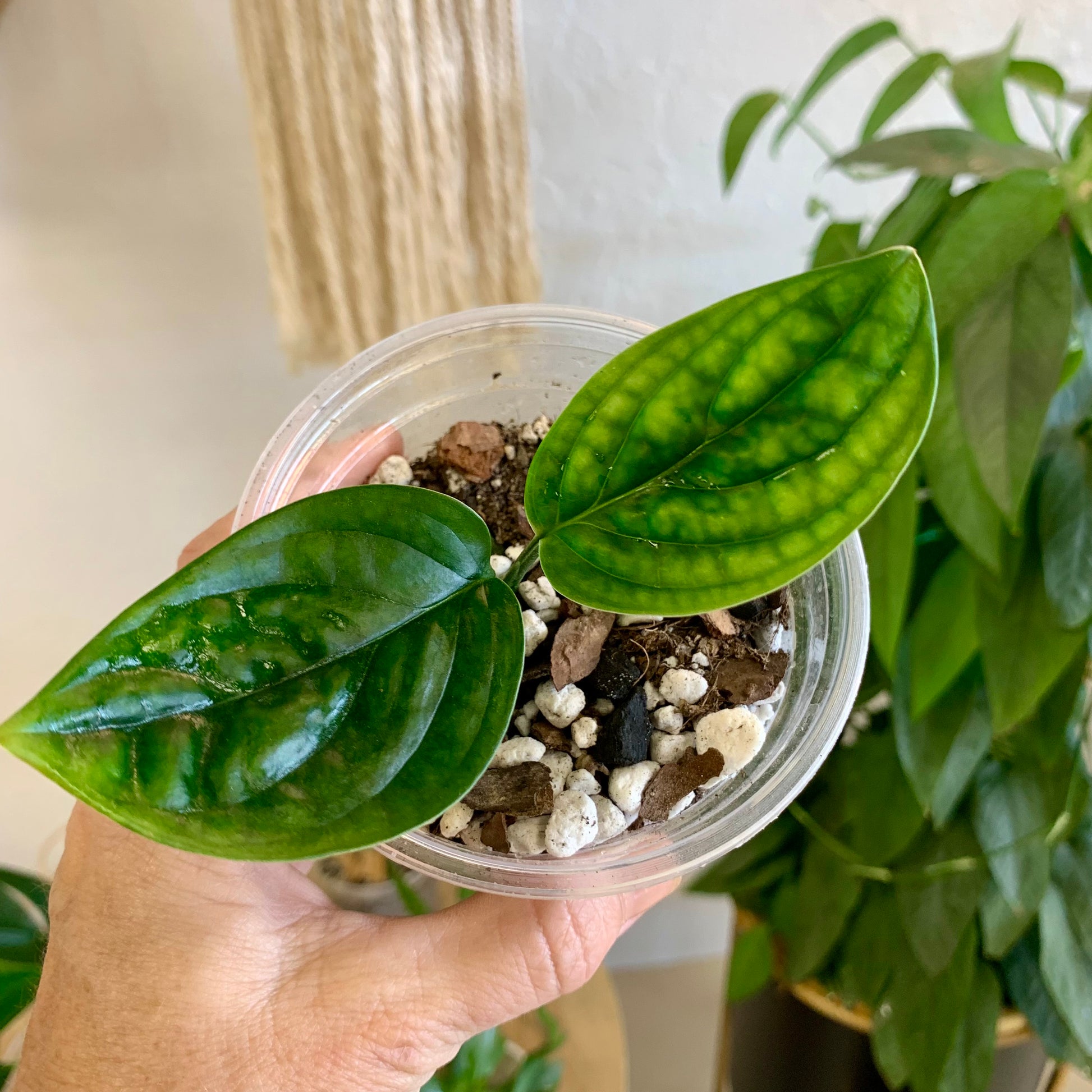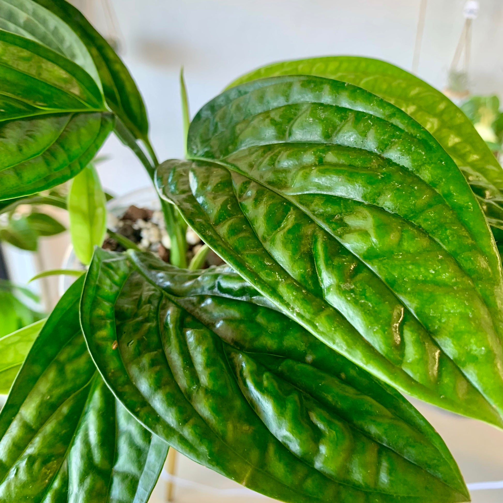 The Monstera "Peru" is surprisingly easy to grow indoor with beautiful textured leaves with dark glossy foliage. A beautifully behaved houseplant! Water when 50% dry and provide medium to bright indirect light.