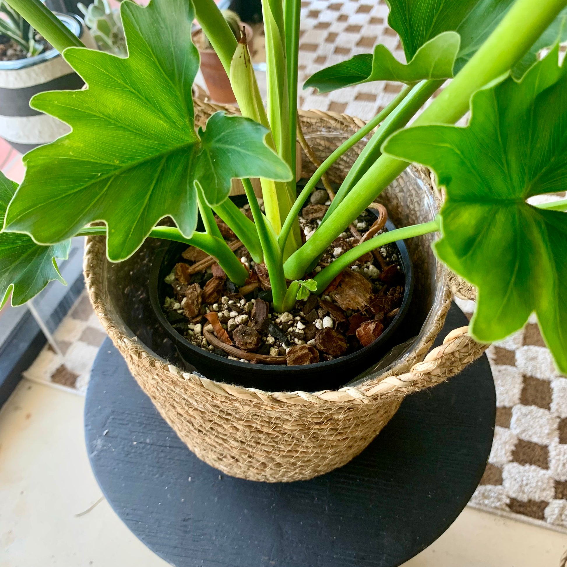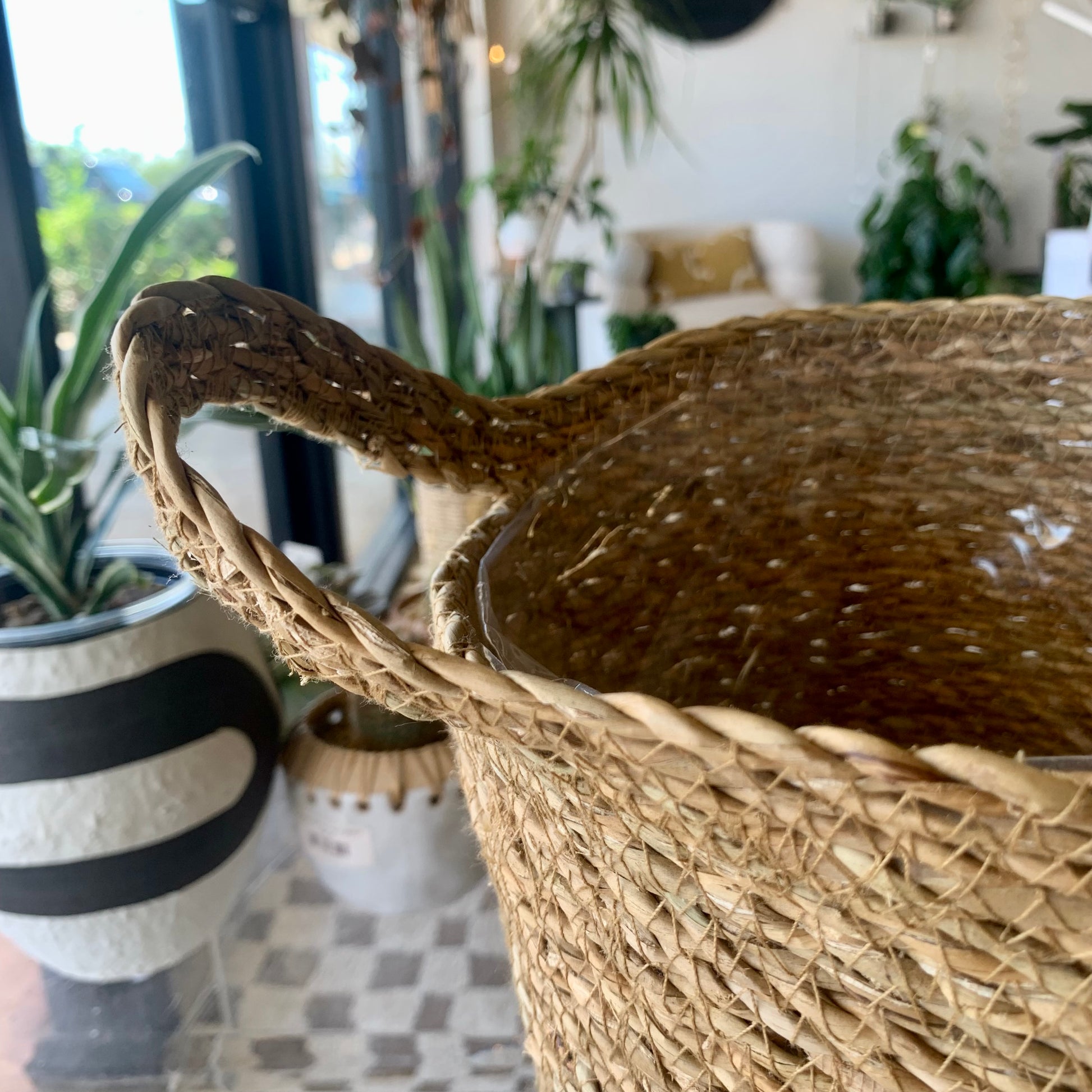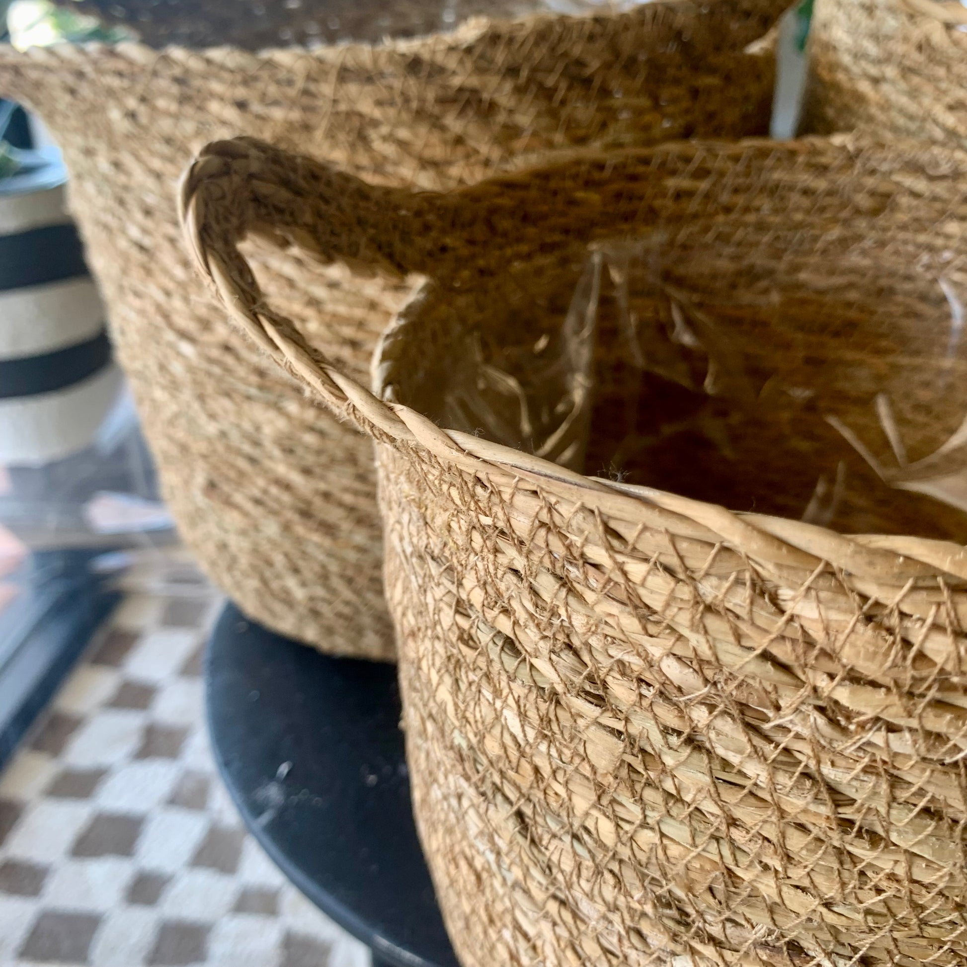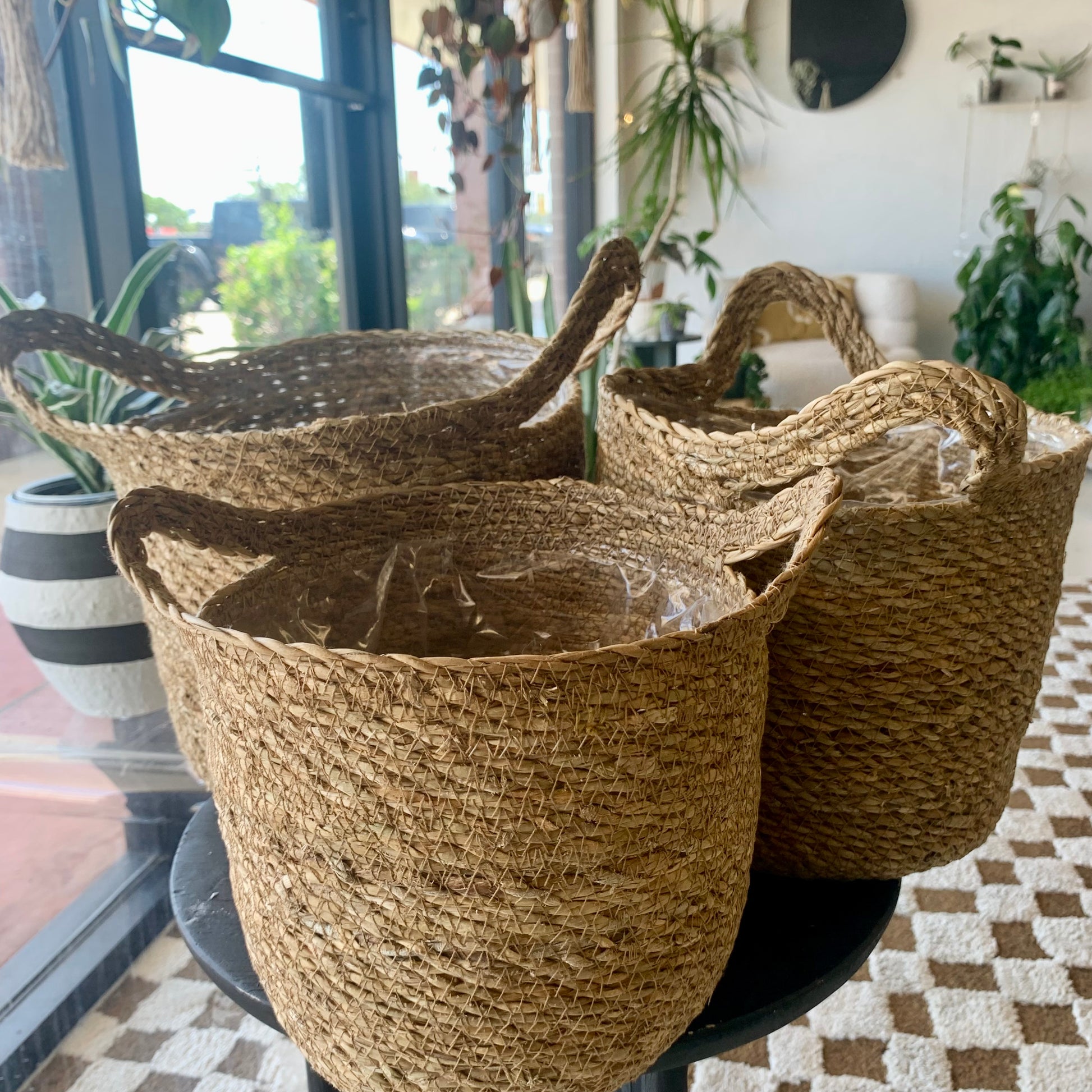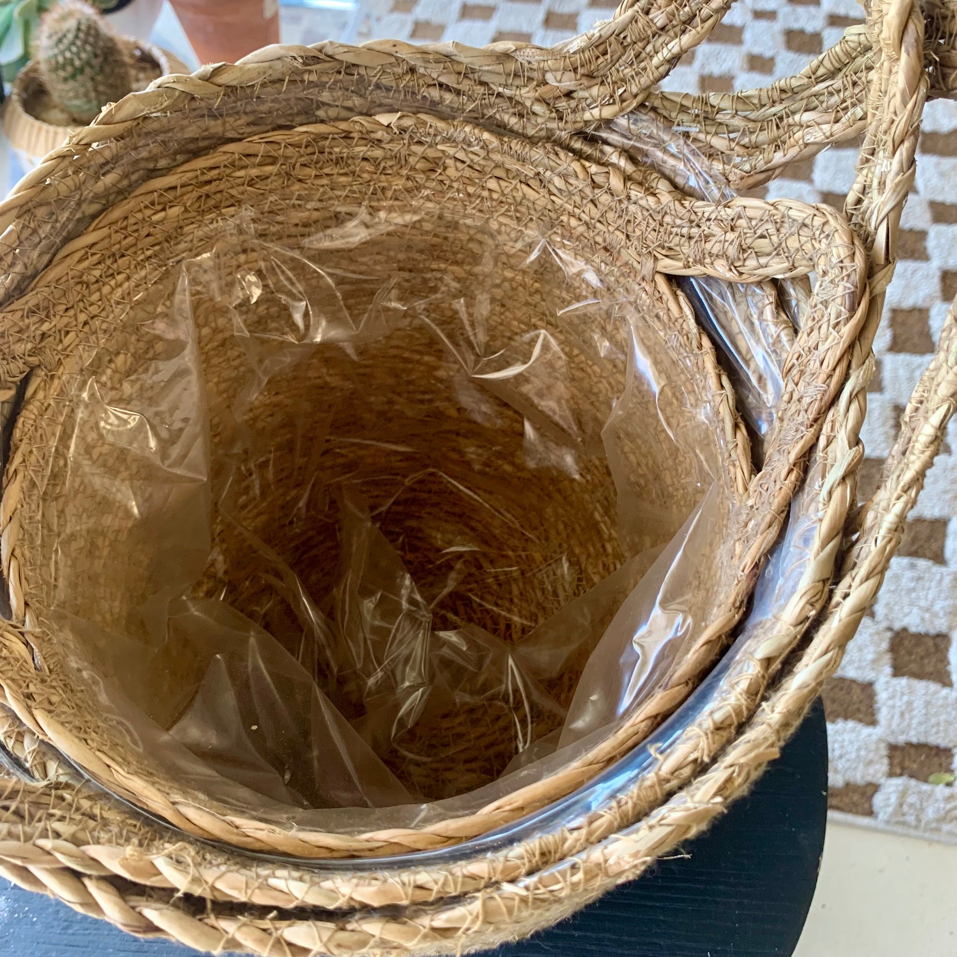 Natural weave basket with plastic liner and handles is an affordable and great way to hide those ugly nursery pots your beautiful plants are in. They are also versatile and can be used for home or office storage solution.