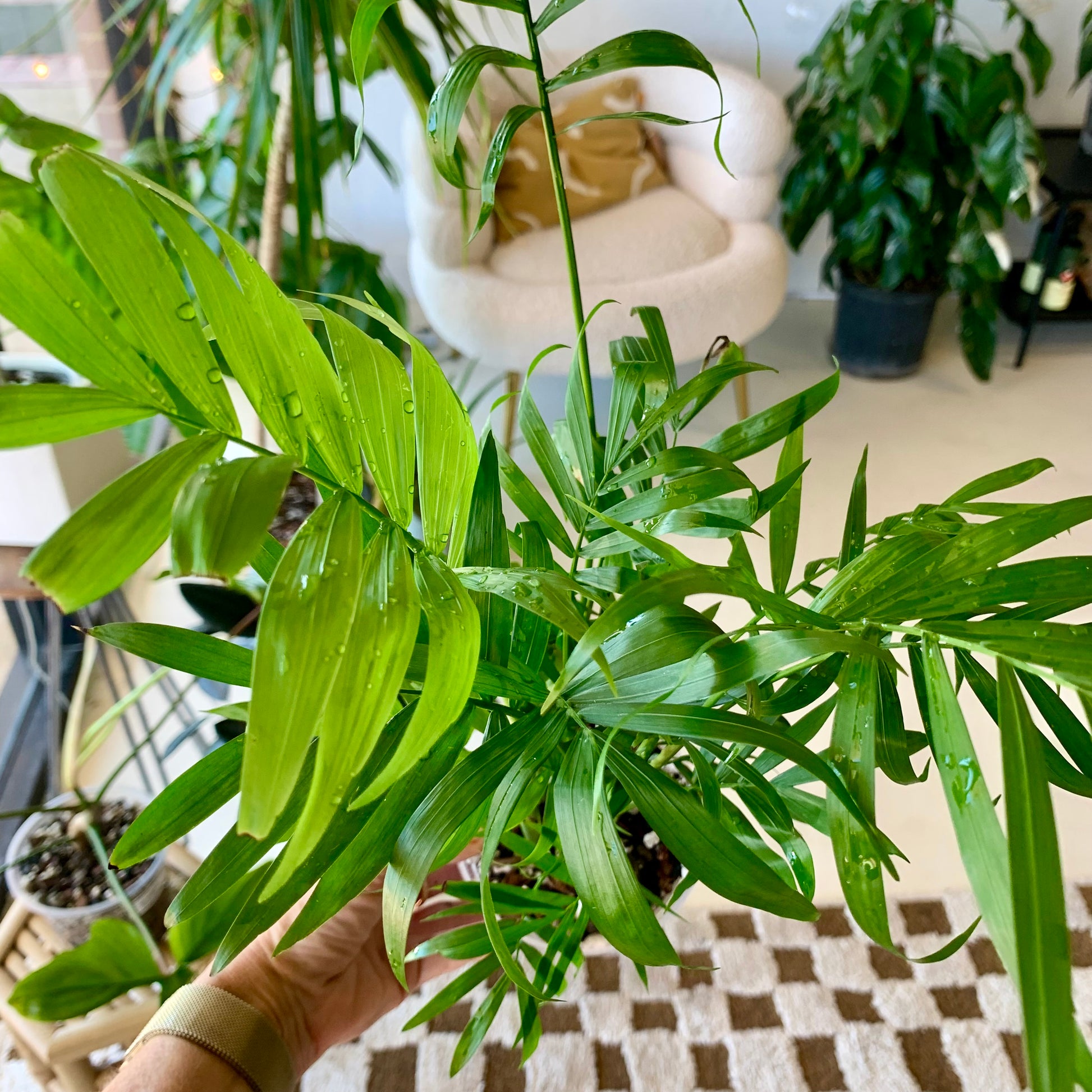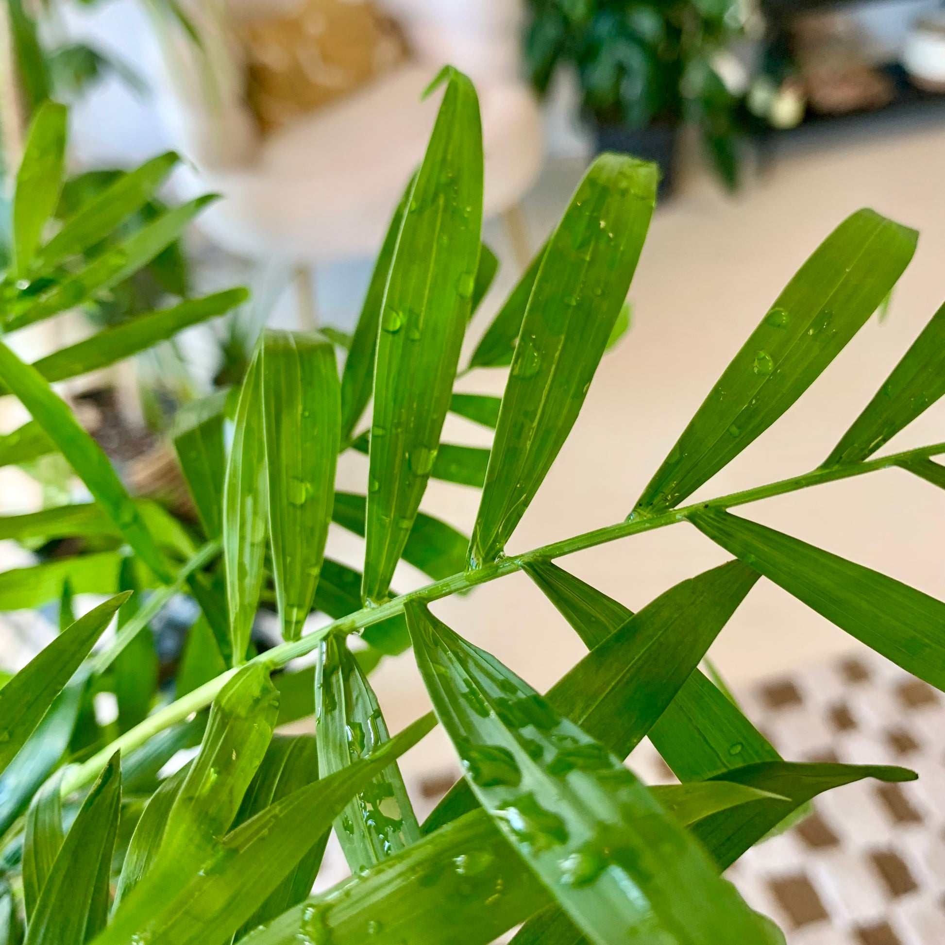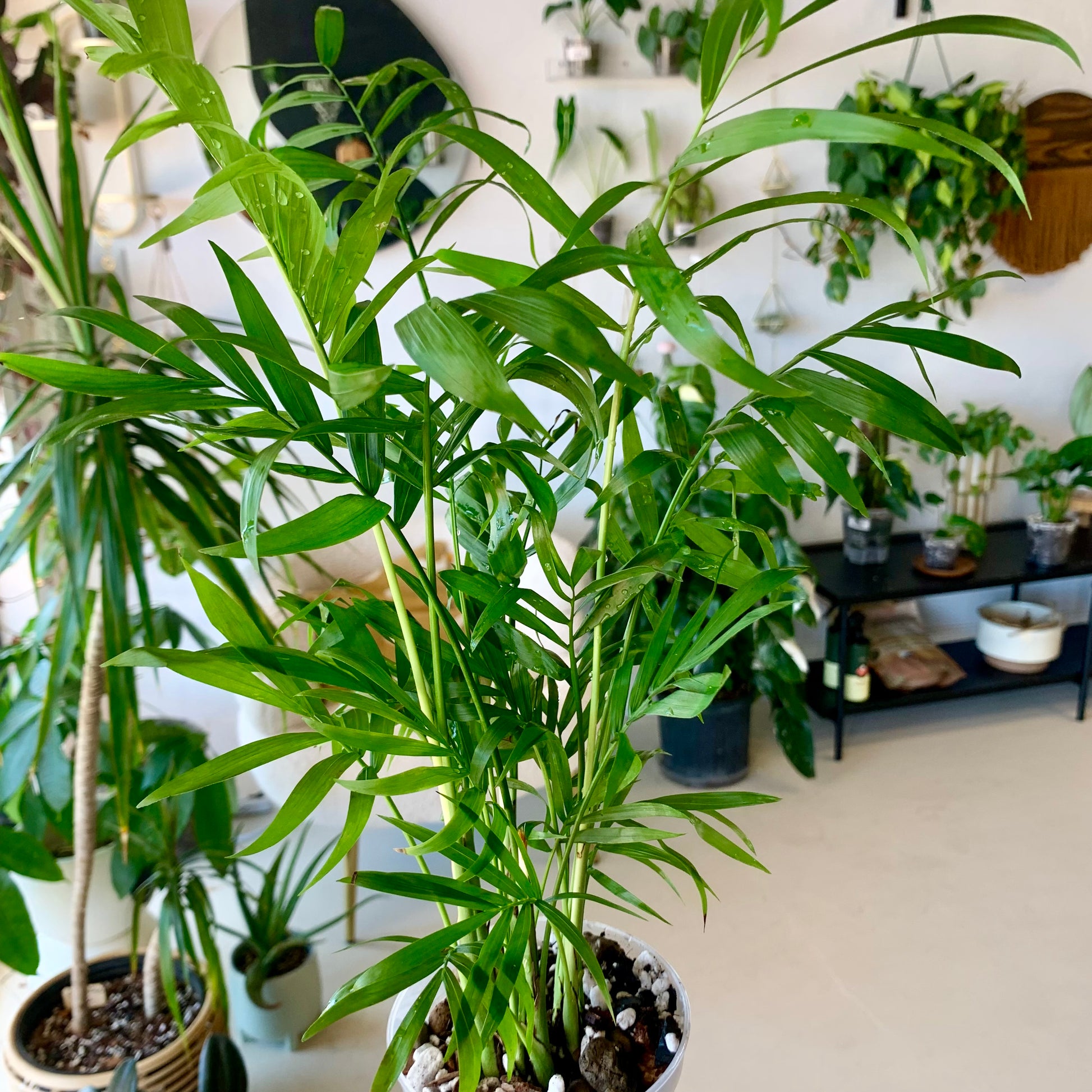 In their natural habitat, the parlor palms thrive under dappled sunlight, so they will fare best when placed in an area with bright, indirect light—like an east facing window. You can also place your palm away from the window in a sunny room or behind a sheer curtain. If you don’t have a bright spot, don’t despair. Parlor palms have been known to adapt to low-light conditions and may grow well in shaded or north-facing windows.