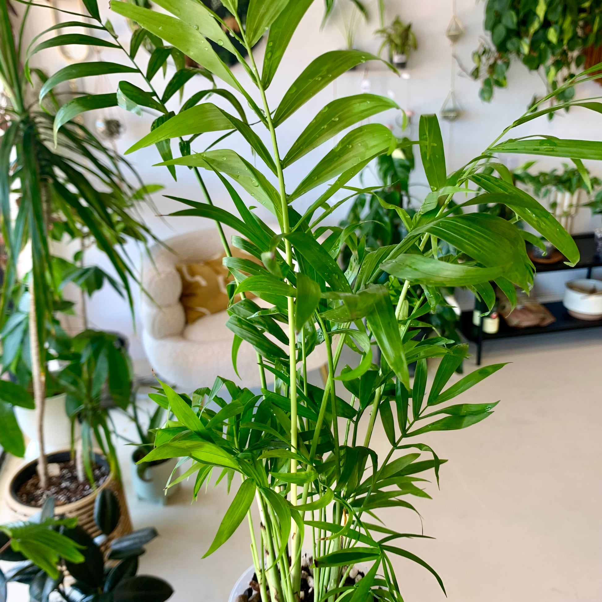 Parlor palms like moist (but not wet) soil and are drought-tolerant once established.