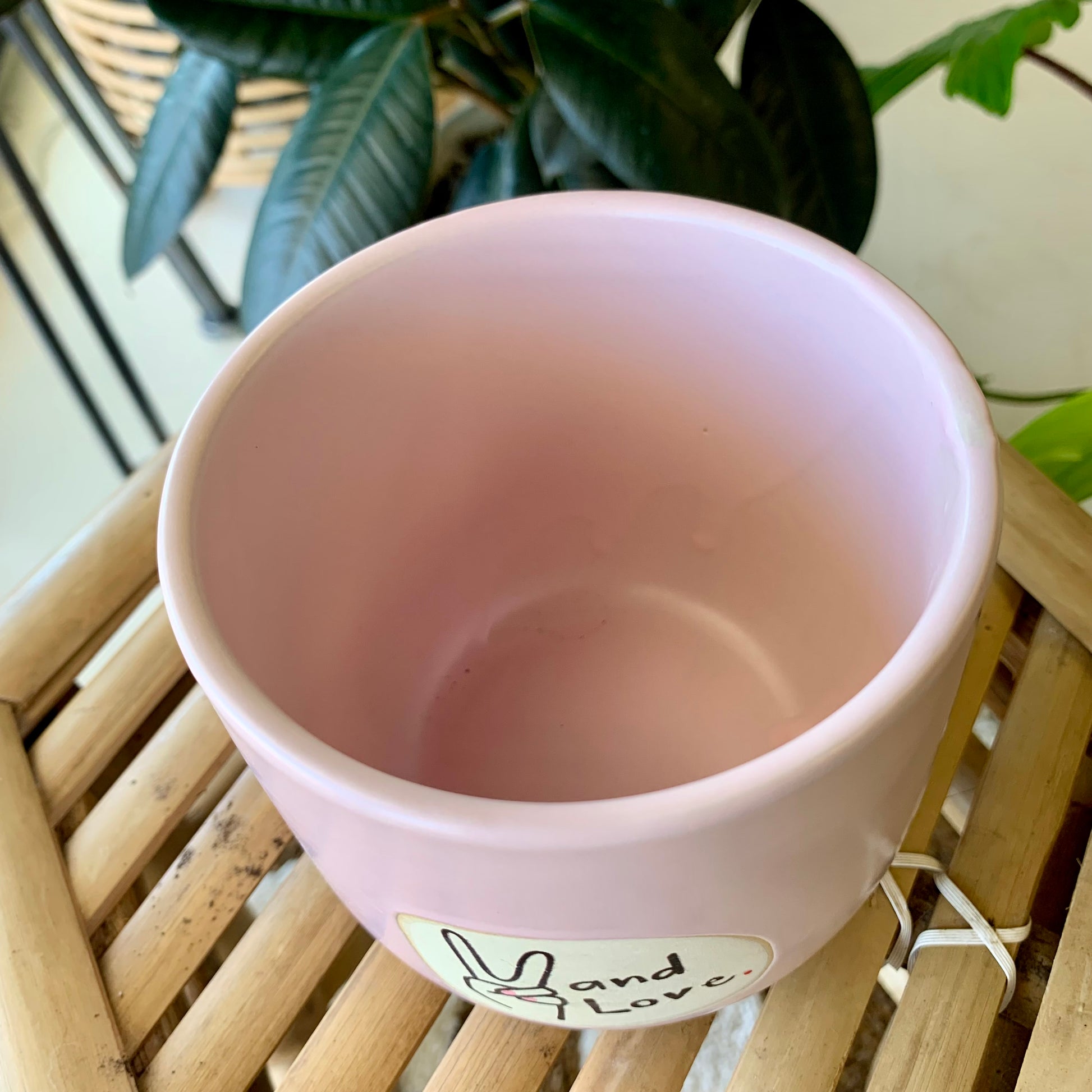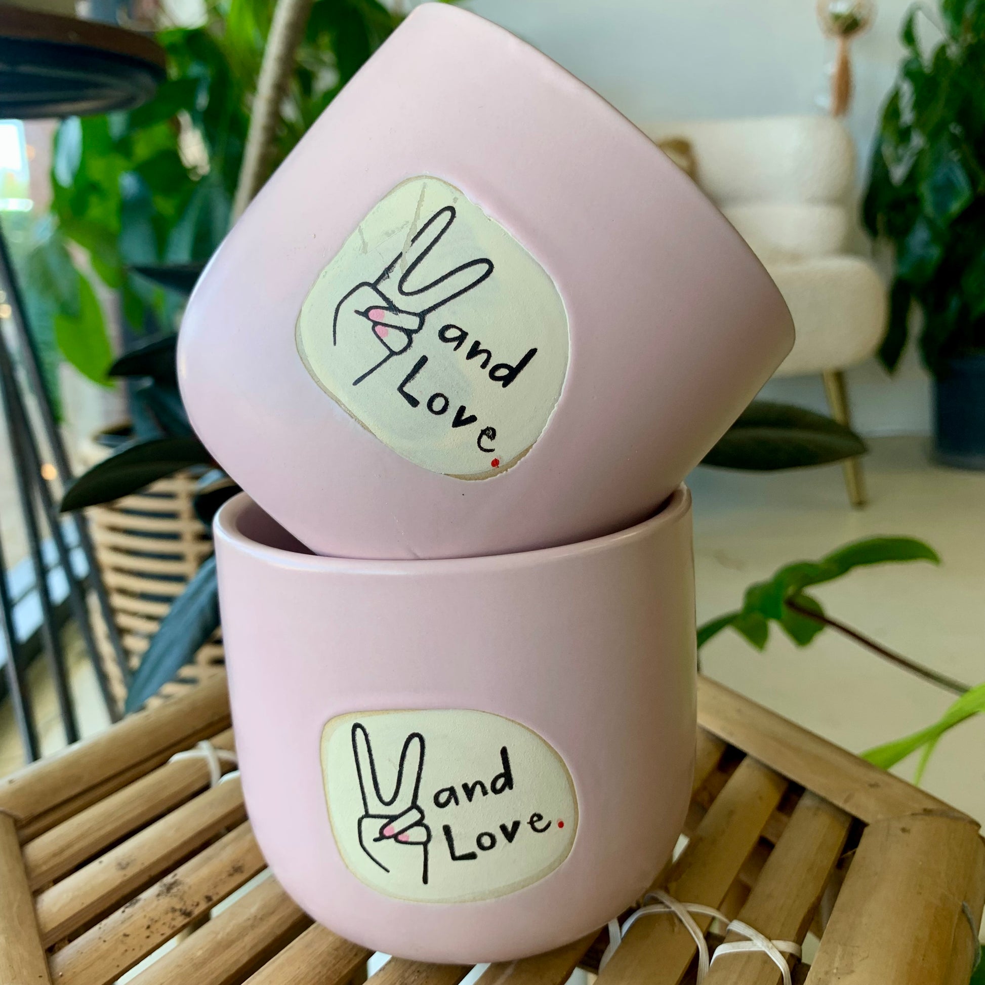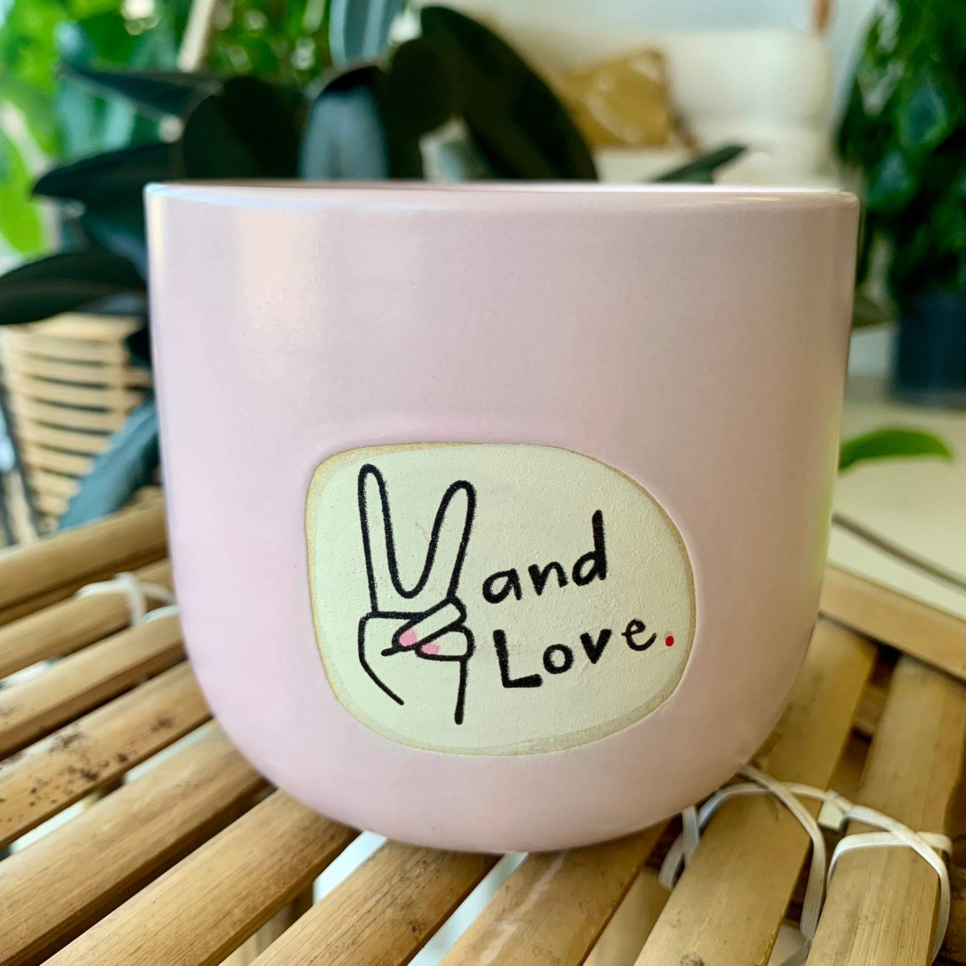 Add a touch of warmth and positivity to your home with our adorable Peace & Love Pot. The soft pink color adds a calming, feminine vibe while the compact size is perfect for smaller plants. Bring a sense of tranquility and love to your space with this charming pot.