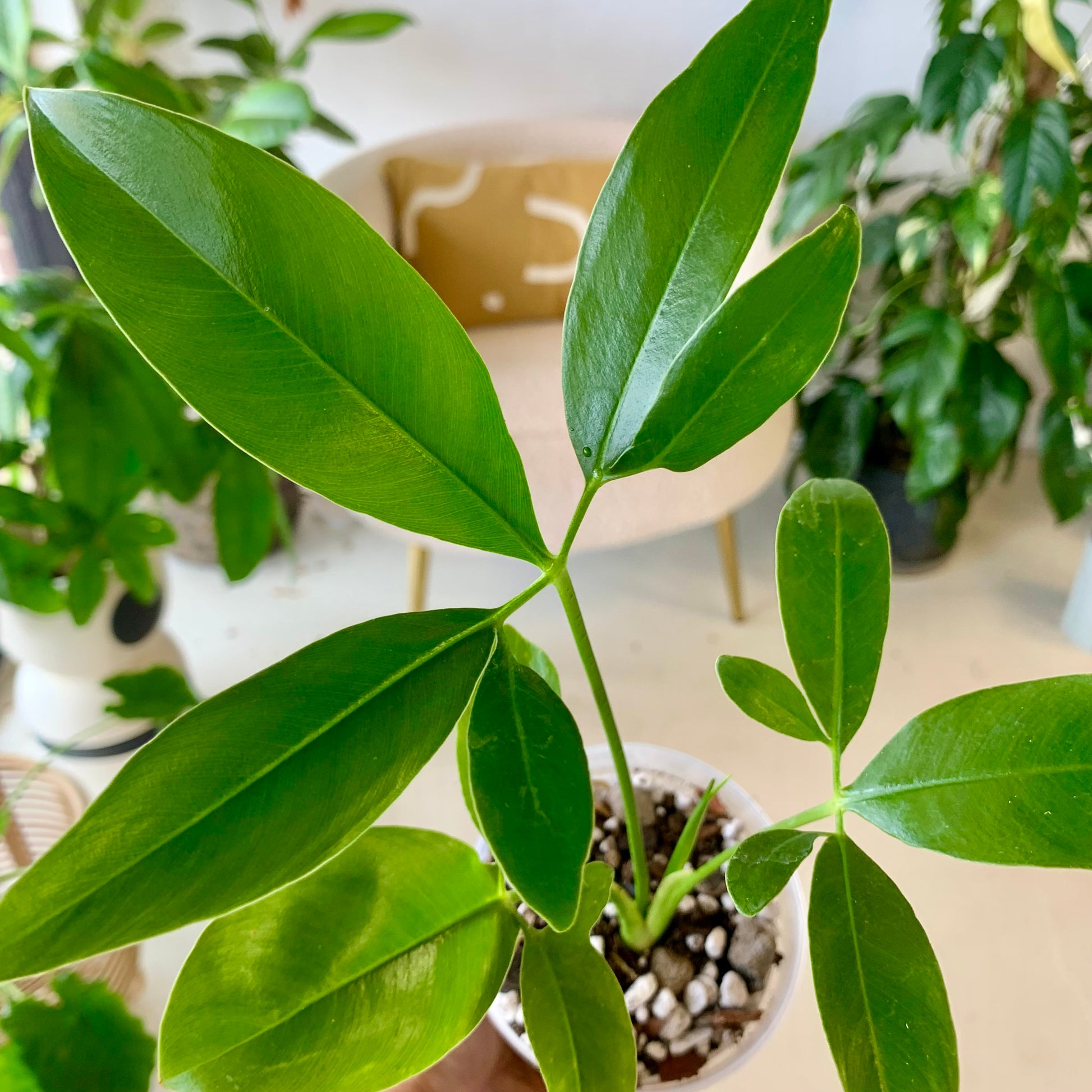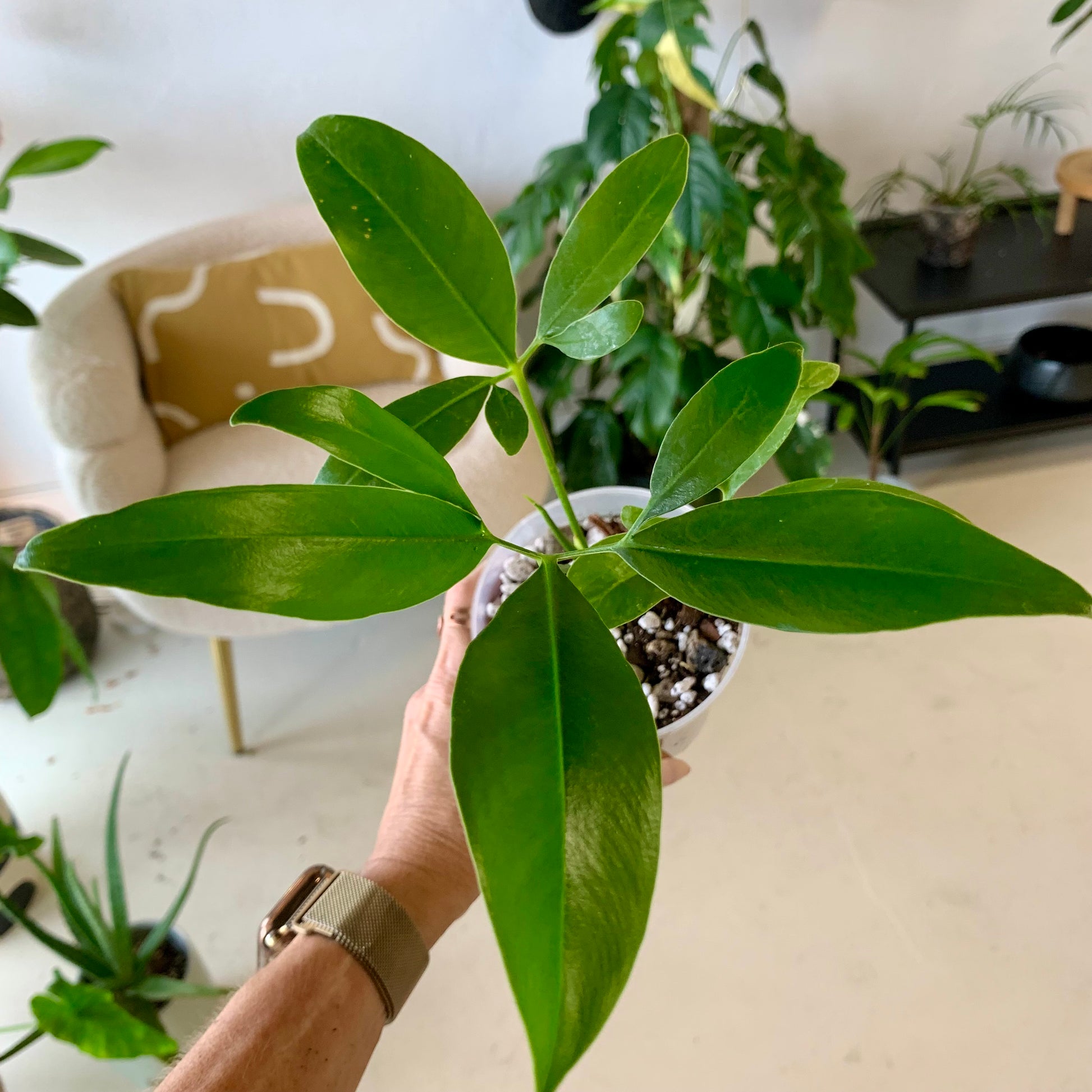 Formerly known as Thaumatophyllum spruceanum, Philodendron Goeldii showcases a remarkable change in leaf appearance as it reaches maturity. This Aroid species is a must-have for any plant collector.