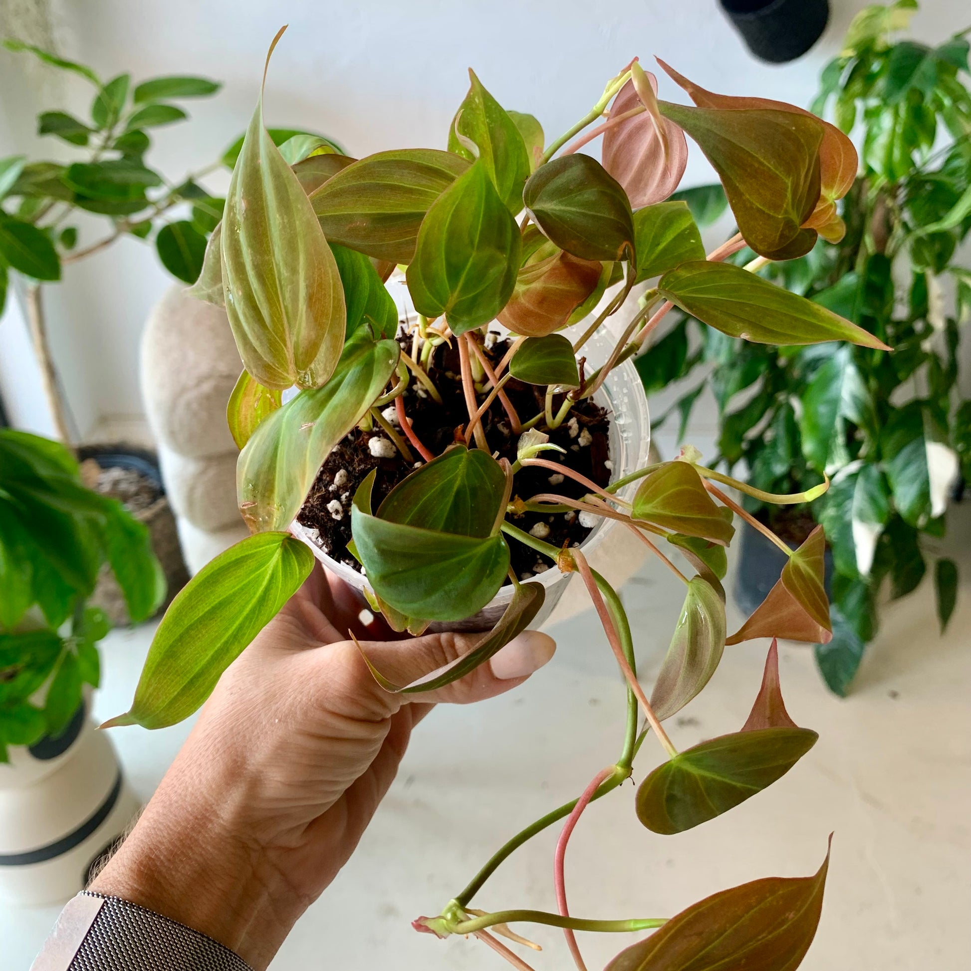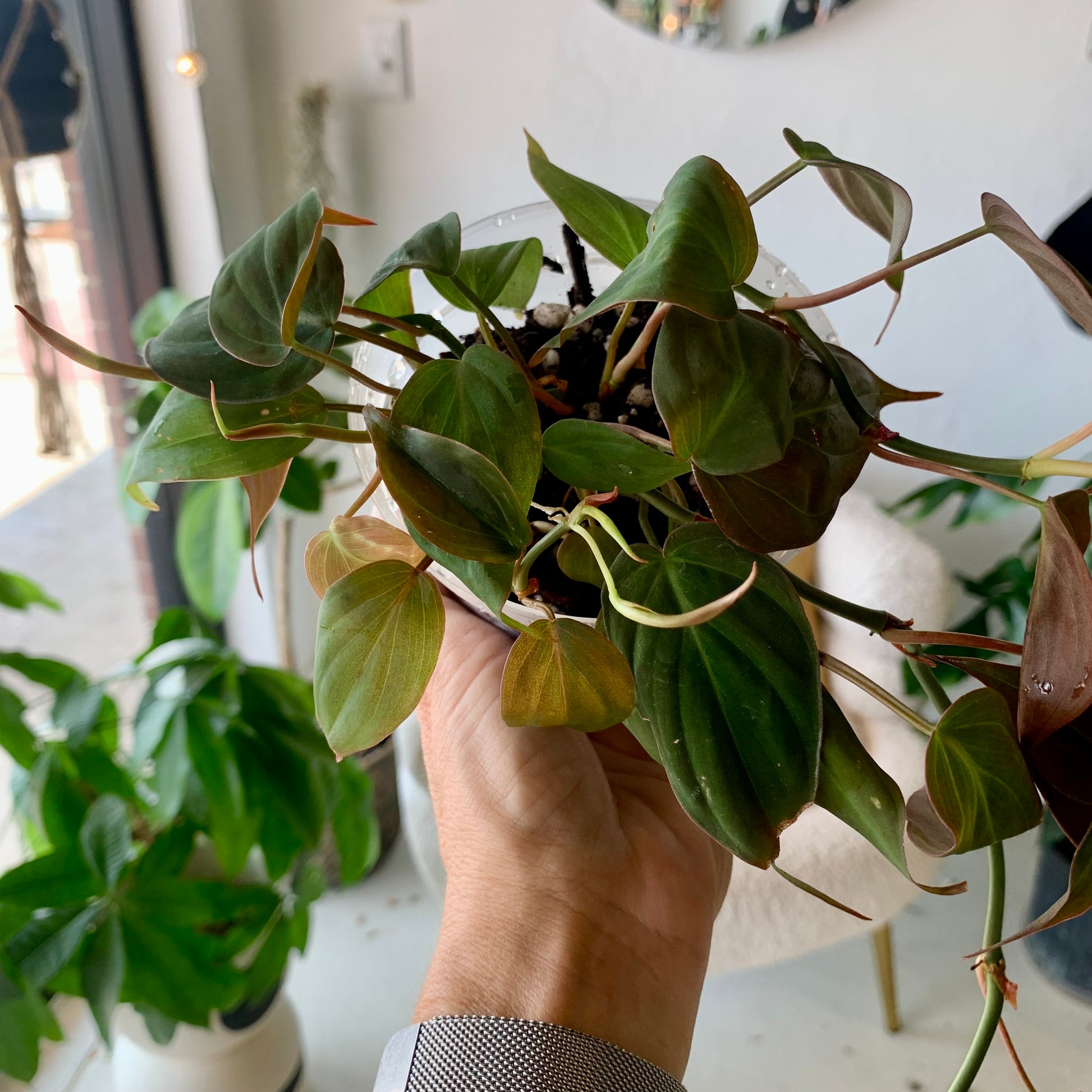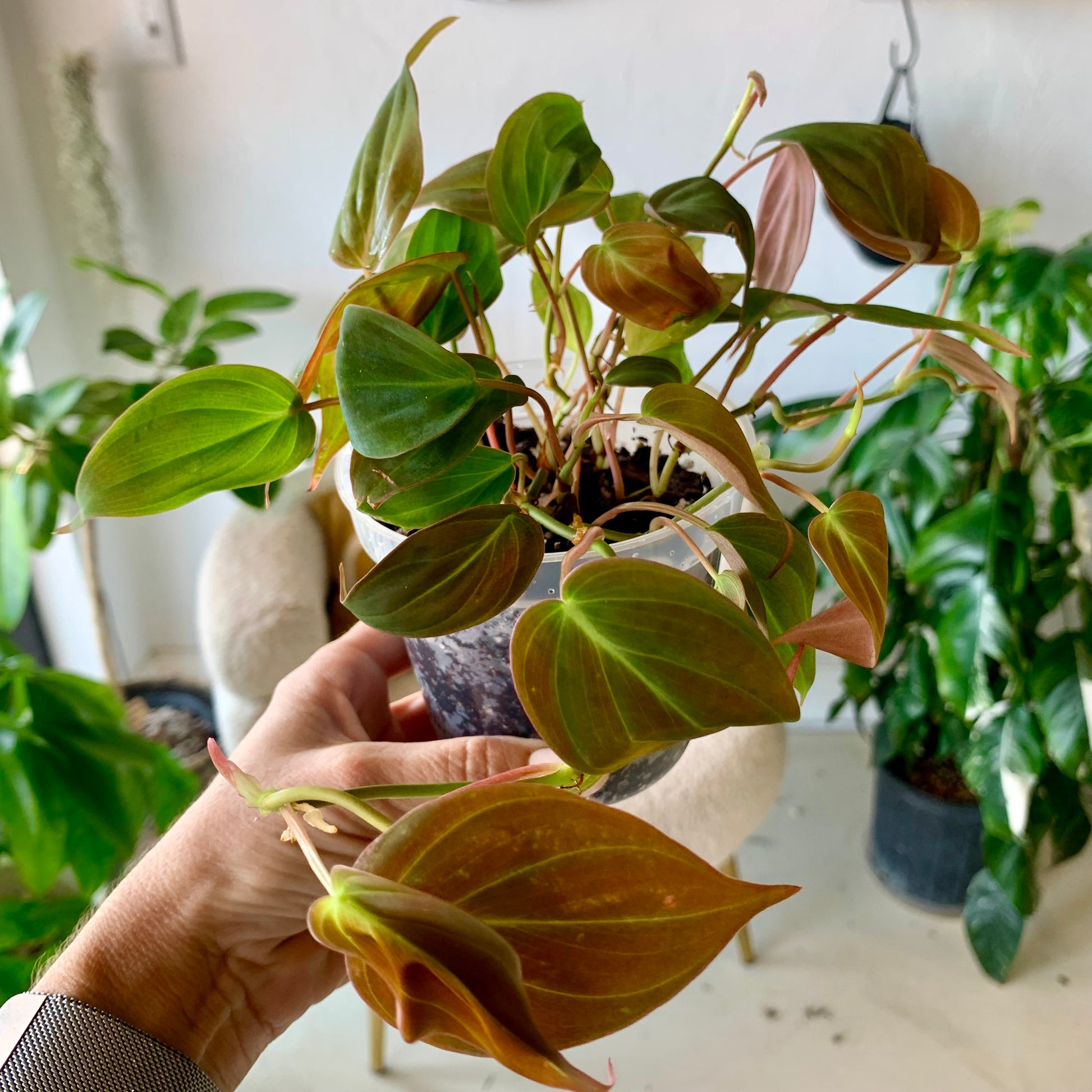 Philodendron Micans or Velvet Leaf Philodendron. The perfect rare beauty to add to any collection! Super easy care. Bright to medium, indirect light. Allow to dry most of the way between watering.