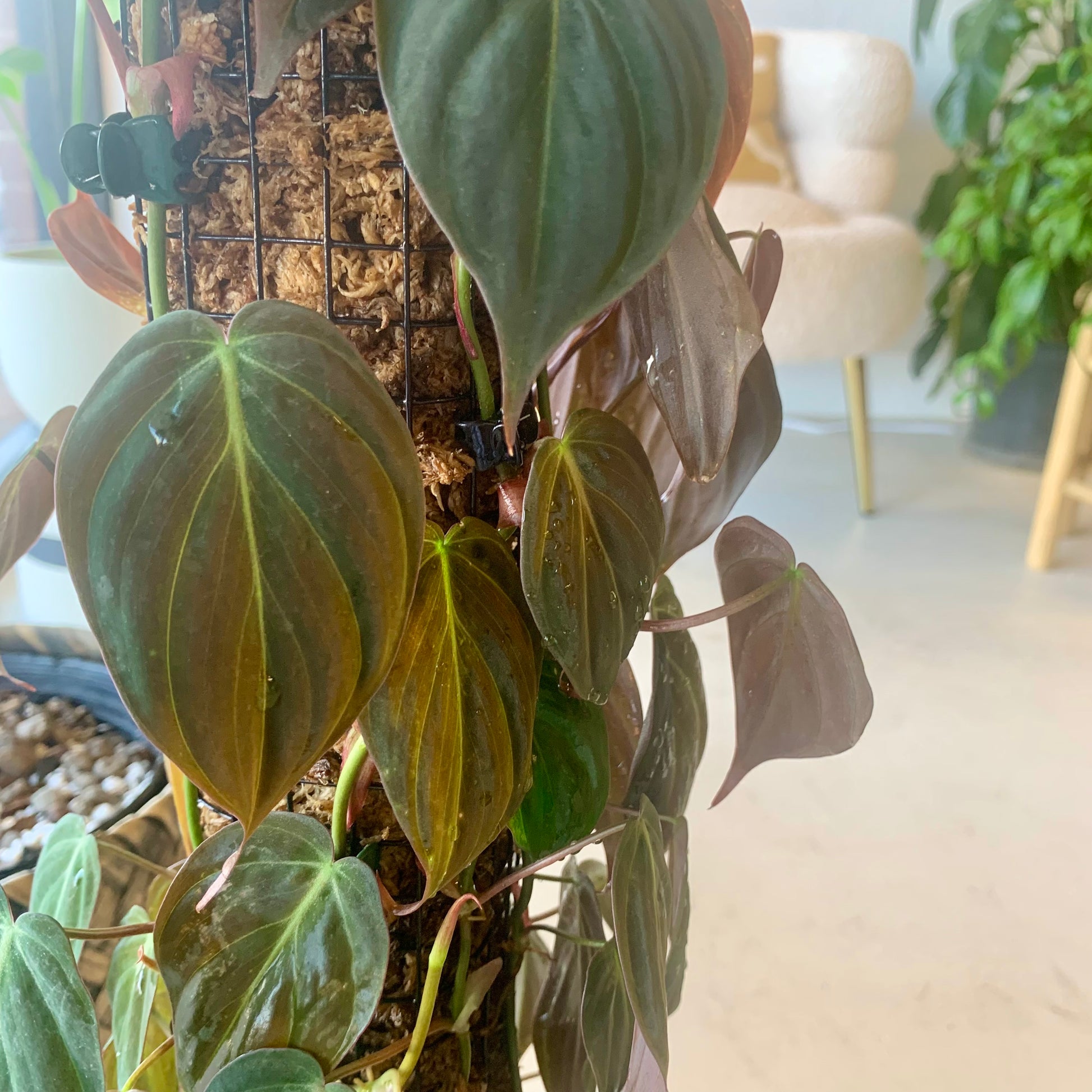 Philodendron Velvet is one of the most luxurious philodendrons out there. Similar to the sweetheart plant the leaves of the Philodendron Velvet are also heart-shaped! The leaves are smaller and are a deep burgundy and green color. The velvety texture of the leaves sparkles in the sunlight.