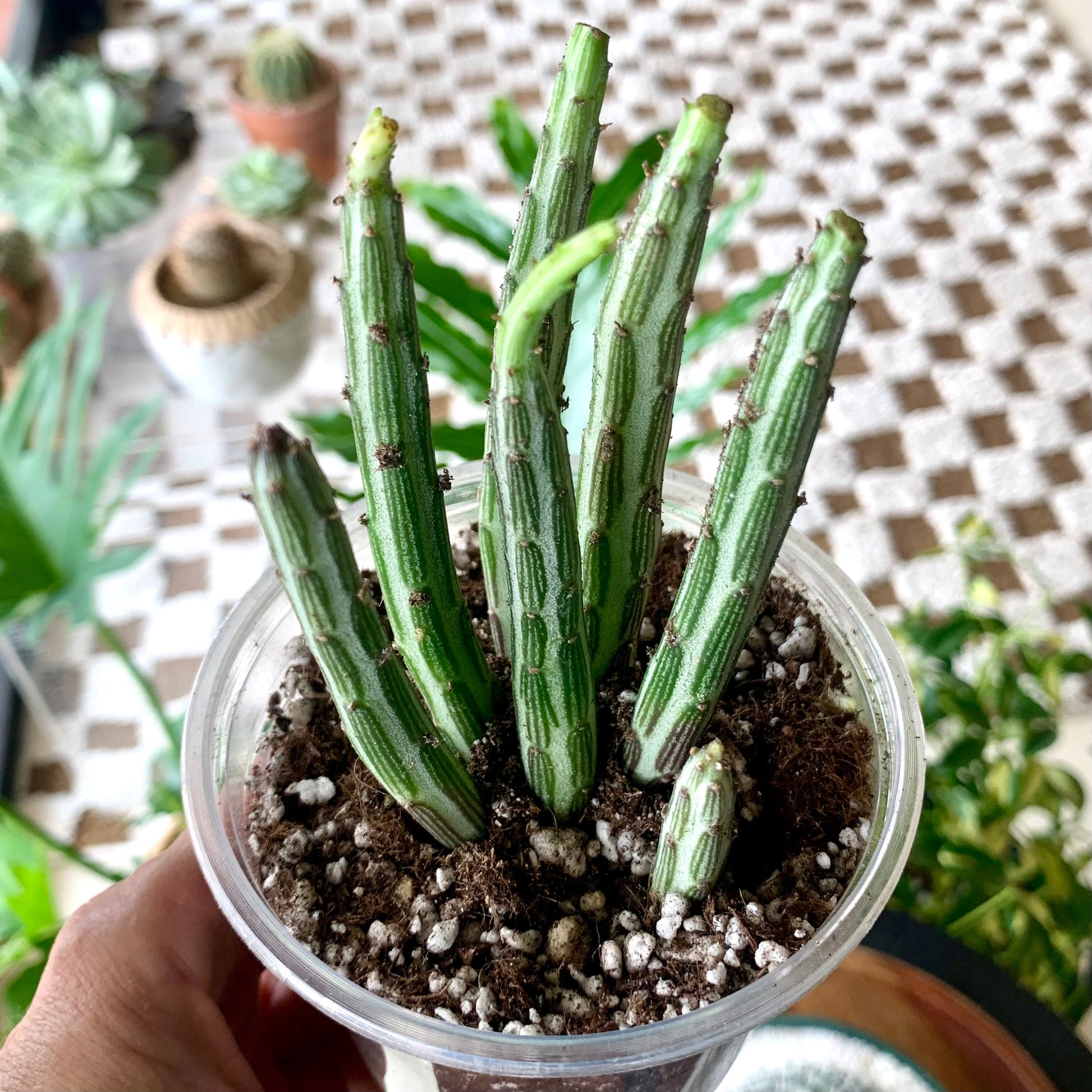 Kleinia stapeliiformis (previously Senecio stapeliiformis): A stem succulent with a unique growth pattern and eye-catching designs (hence the nickname!)