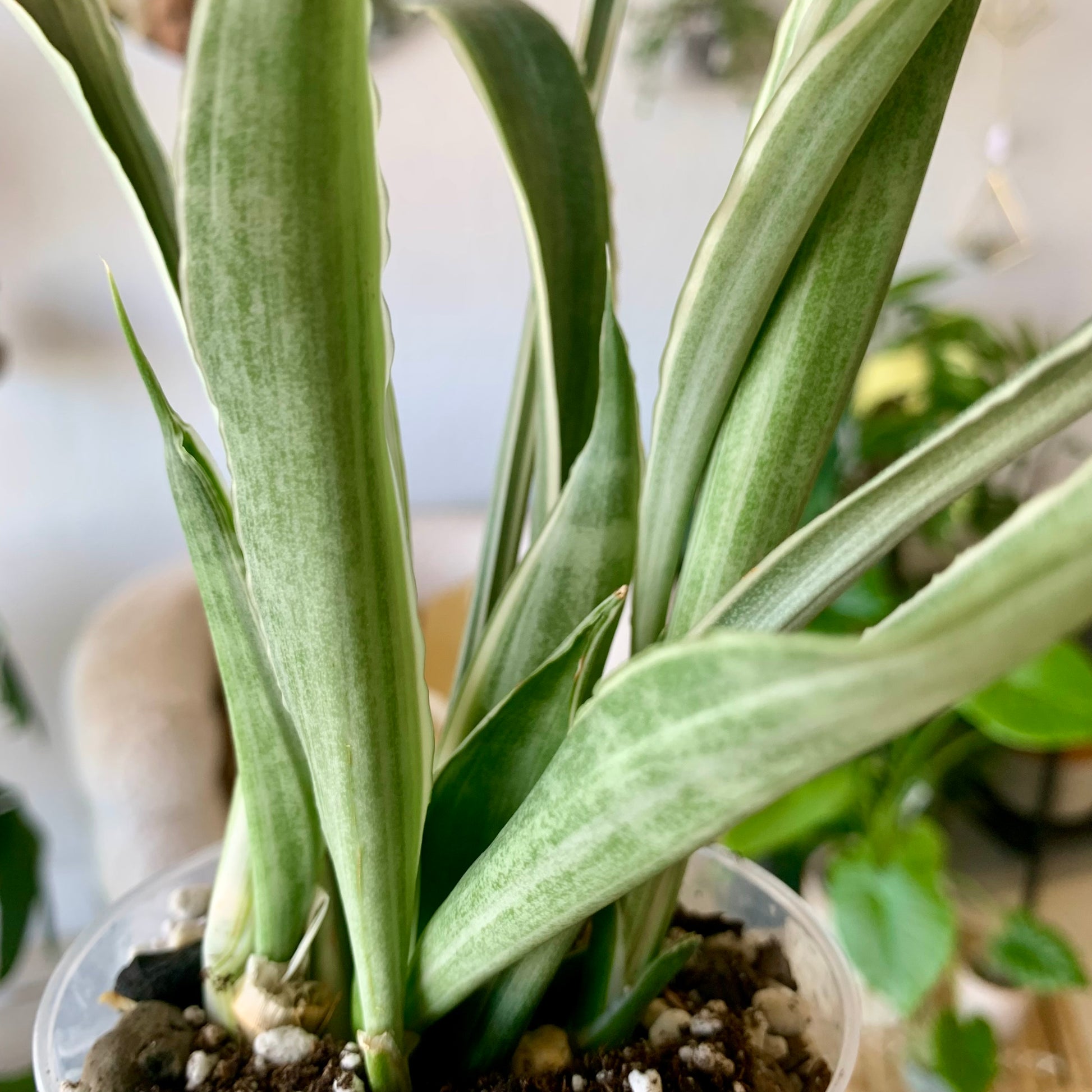 What sets the Sayuri snake plant apart is its distinctive appearance. Its leaves are a vibrant shade of green, with bold, irregular stripes of creamy white running vertically along their length. This gives the plant a dramatic, almost graphic quality that is both eye-catching and sophisticated.