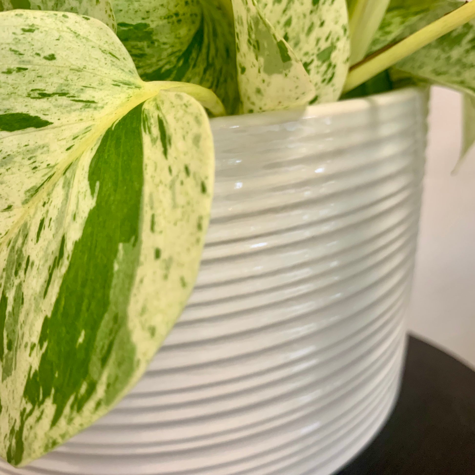 Simple and elegant, this sleek off-white planter adds a touch of modernity to any space. Its wavy texture adds interest and creates a unique aesthetic. Perfect for those looking for a neutral yet stylish option for their plants.