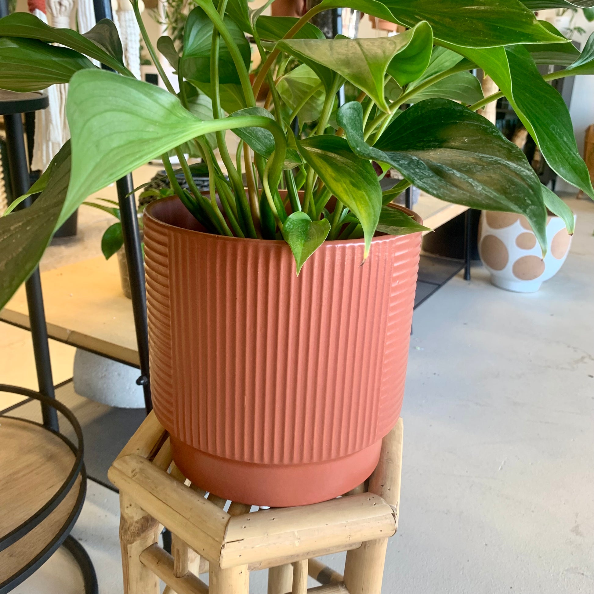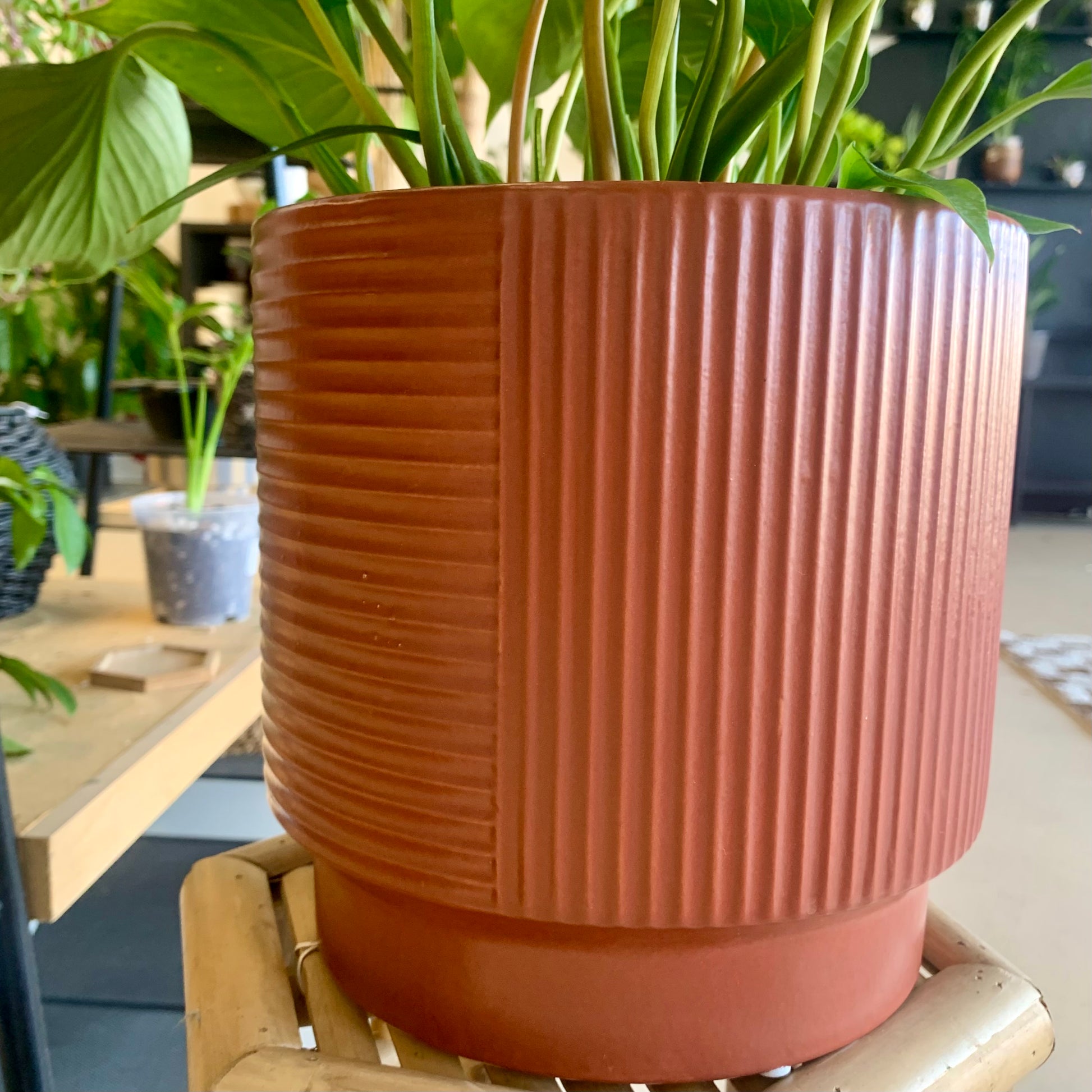 With its deep terracotta color, this Soren Planter provides a beautiful addition to your space. The size is perfect for larger plants, adding both color and texture to your indoor or outdoor decor. Plus, its durable material ensures that your plants will thrive for seasons to come.