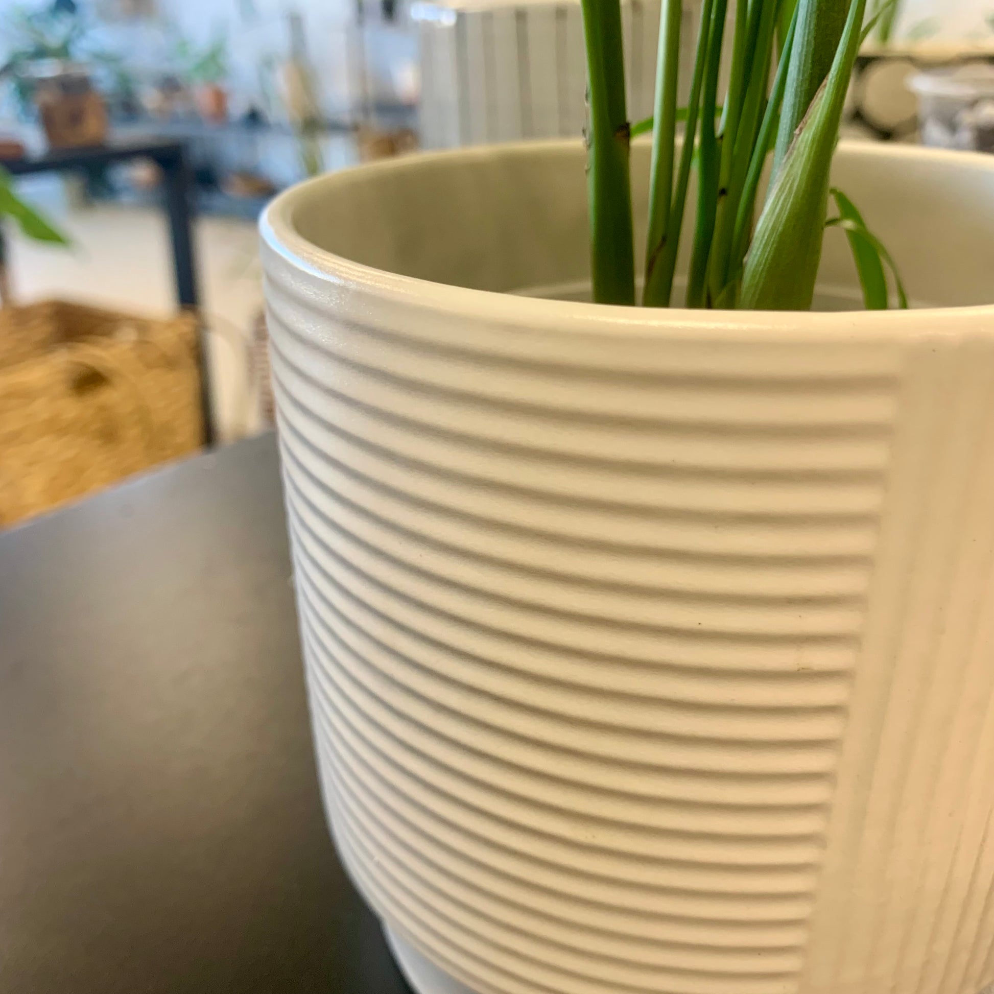 The off-white color of the Sorenette Planter provides a modern and neutral look for your plants, allowing them to stand out beautifully in any room or outdoor area. With a sleek design and versatility, it's the perfect complement to your collection of green foliage.