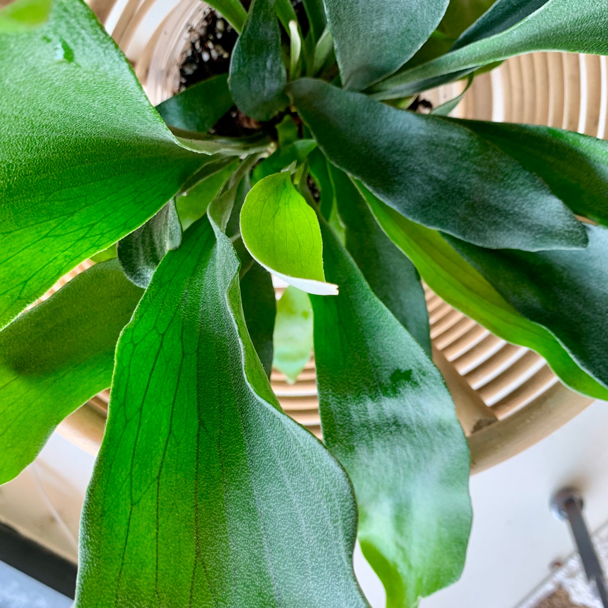 Staghorn ferns prefer to be kept in a location that boasts consistent, shaded light. That being said, they can handle more sunlight if given enough water, warmth, and humidity. Just be cautious about allowing any direct rays to hit the fragile fronds, as they can burn easily.