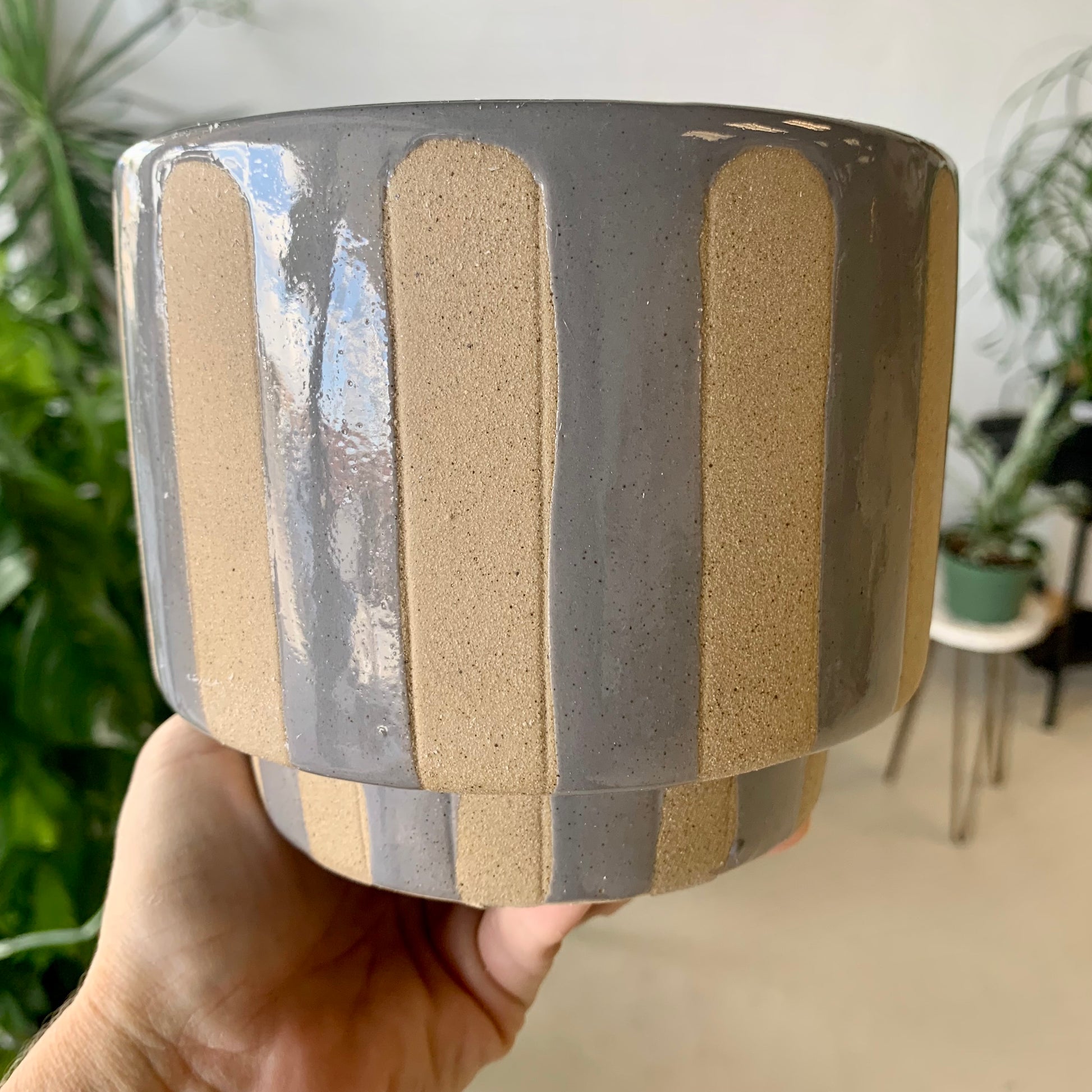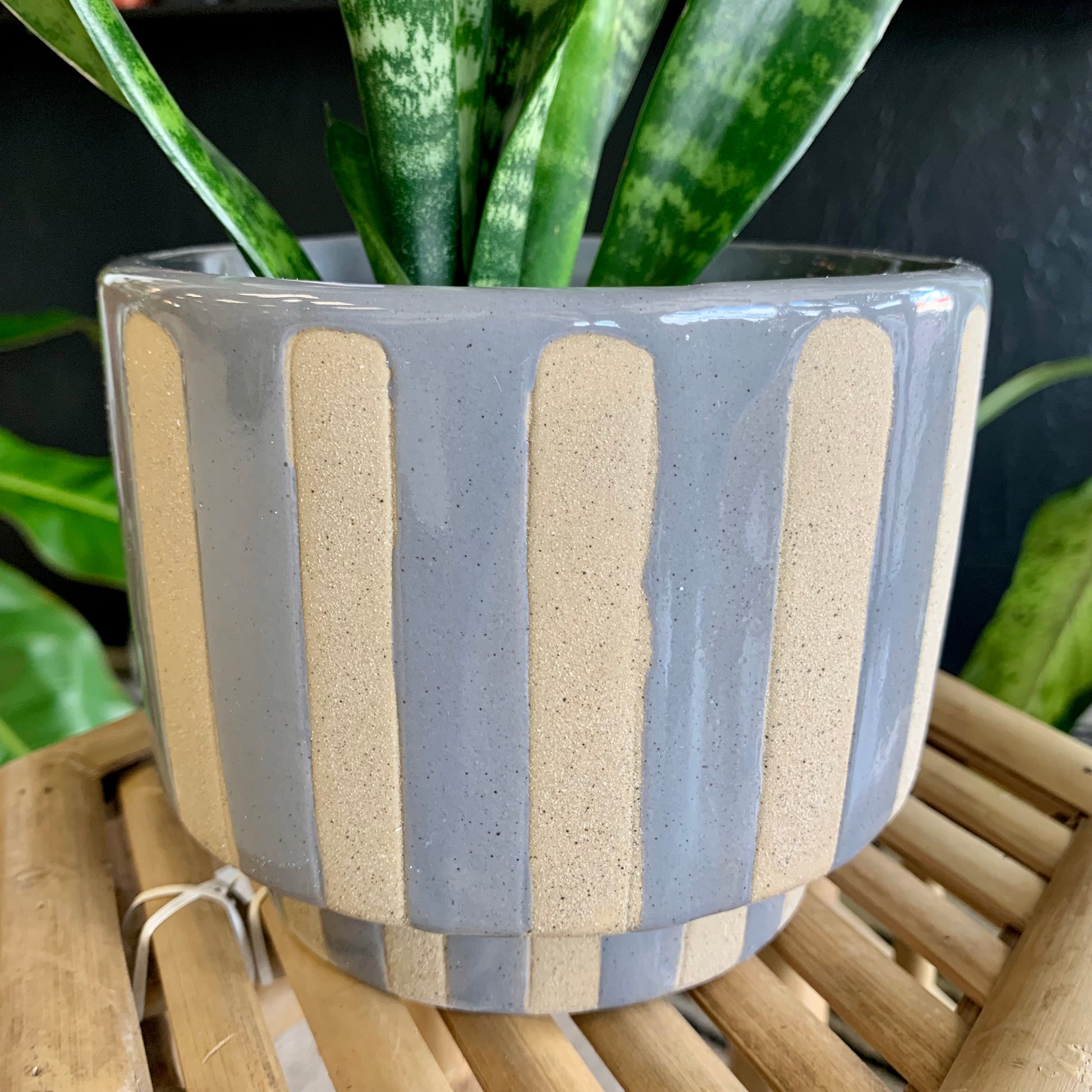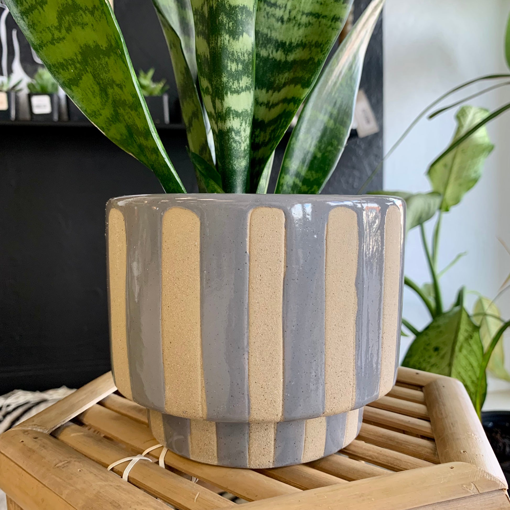 Add some bold design to your home with this modern striped stoneware planter! Made with a tiered design and contrasting stripes, this planter will put the perfect finishing touch on your autumn style.