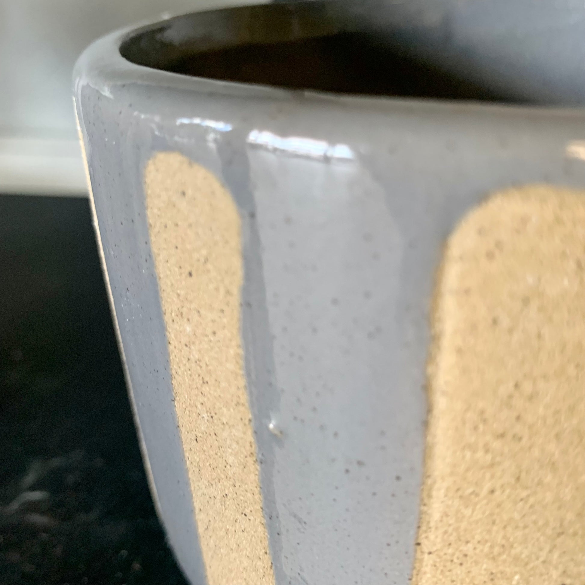 Planter measures 5.5" wide by 4.5" tall. No drainage hole, one can be drilled in-store when purchased, if ordering online send note via email with your request.