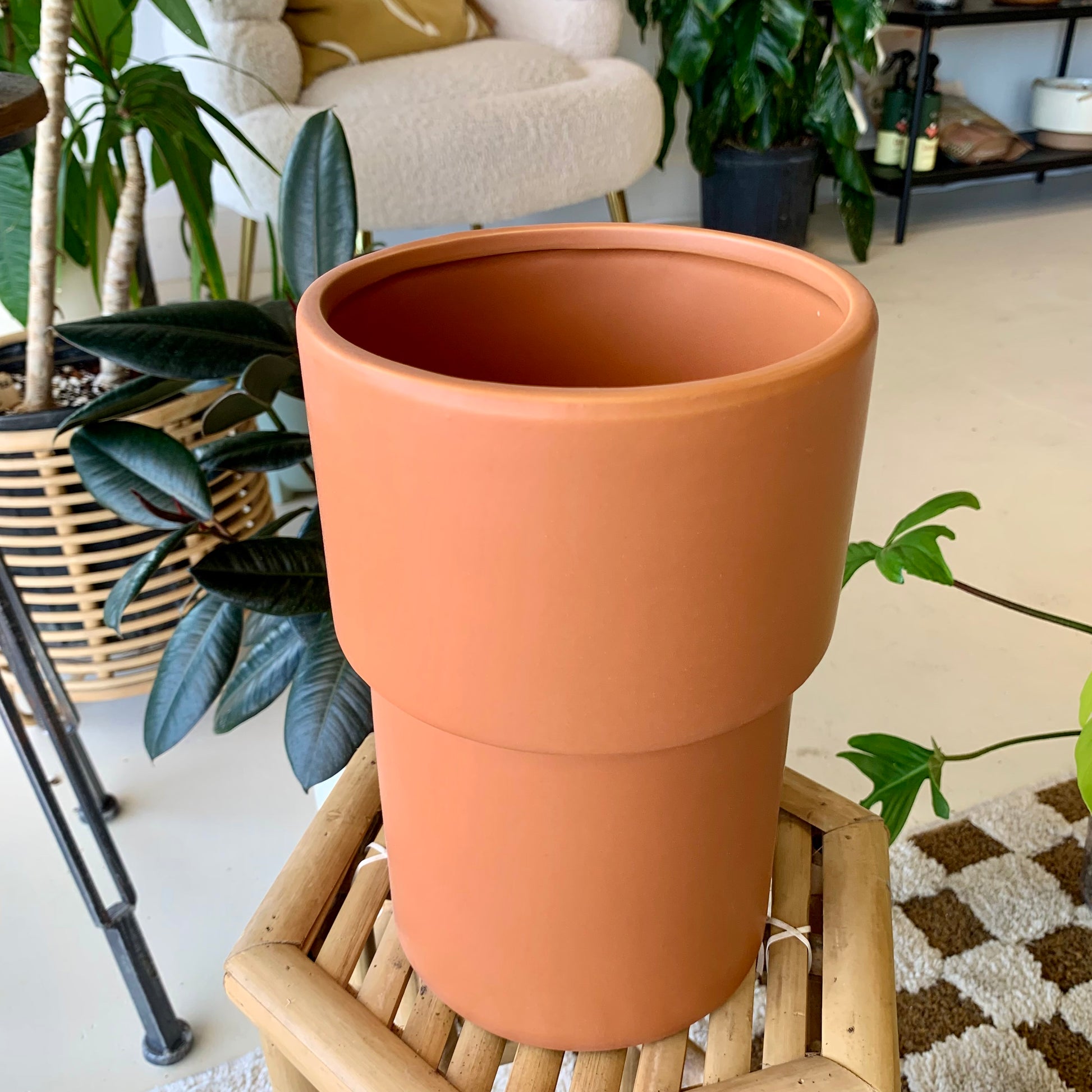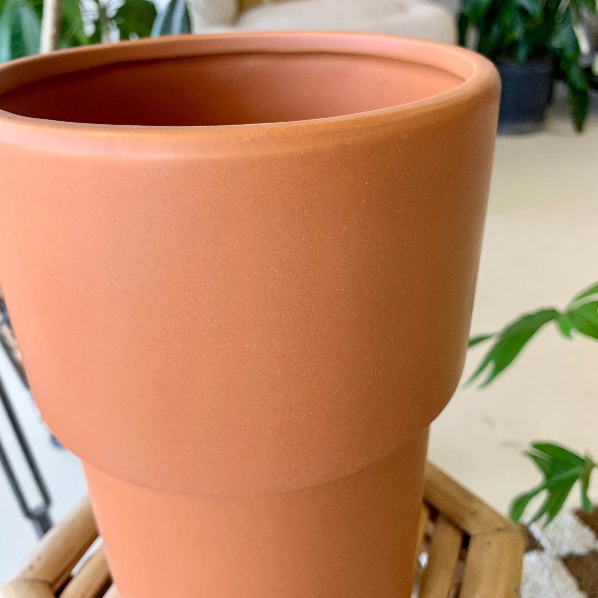 Transform your space with this stunning tall terracotta planter or vase! A versatile piece that adds height and color to your plant collection. Say goodbye to boring plant displays and hello to a vibrant, eye-catching focal point.