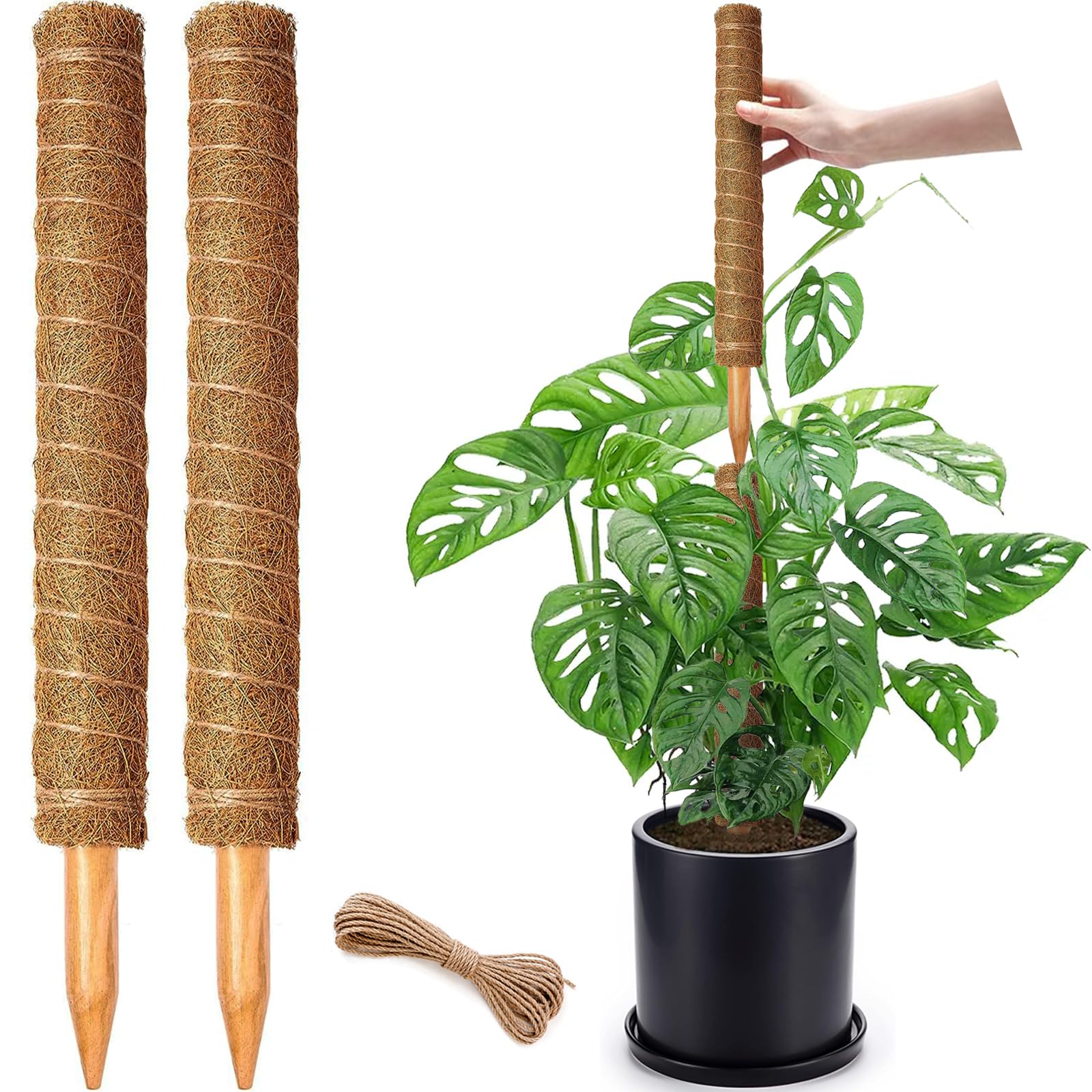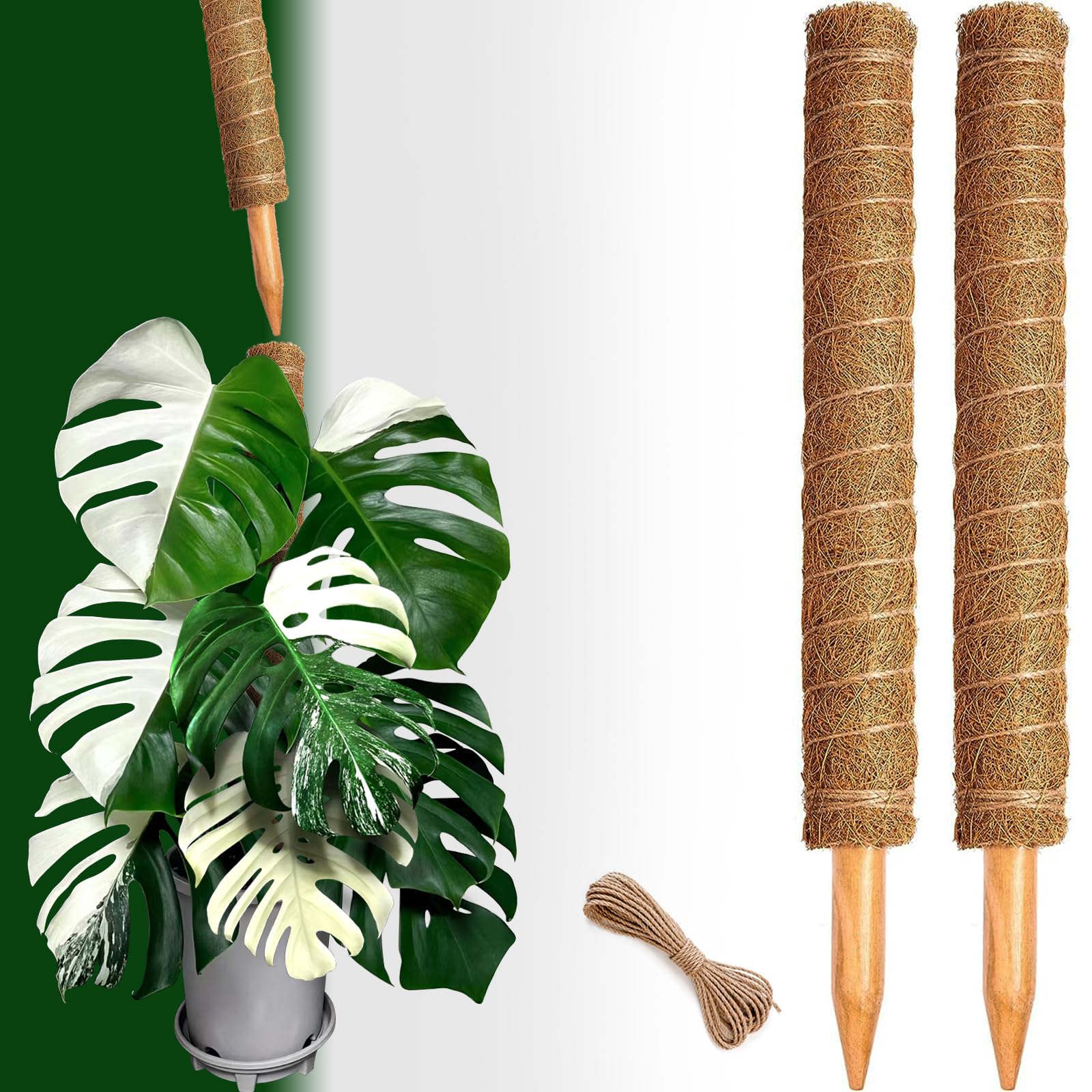 - WHAT YOU GET - 2 x 21 inch vertical coir plant moss poles, 6.6 feet of jute twine.