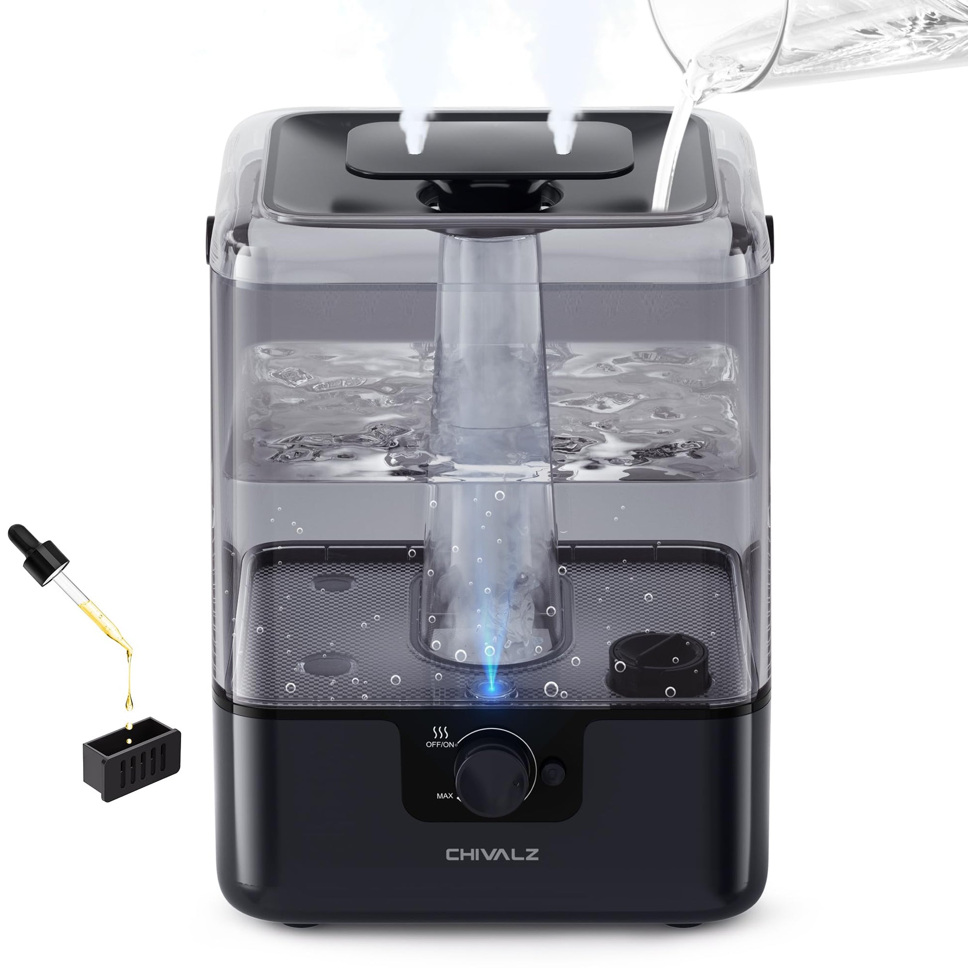 Top Filling and Easy to Clean: The top filling design has been optimized for easy filling and cleaning. The water tank is easy to disassemble, has a large opening, and comes with a cleaning brush, making it easy to scrub every corner of the humidifier. It is recommended to clean the humidifier every 2-3 weeks to extend its lifespan.