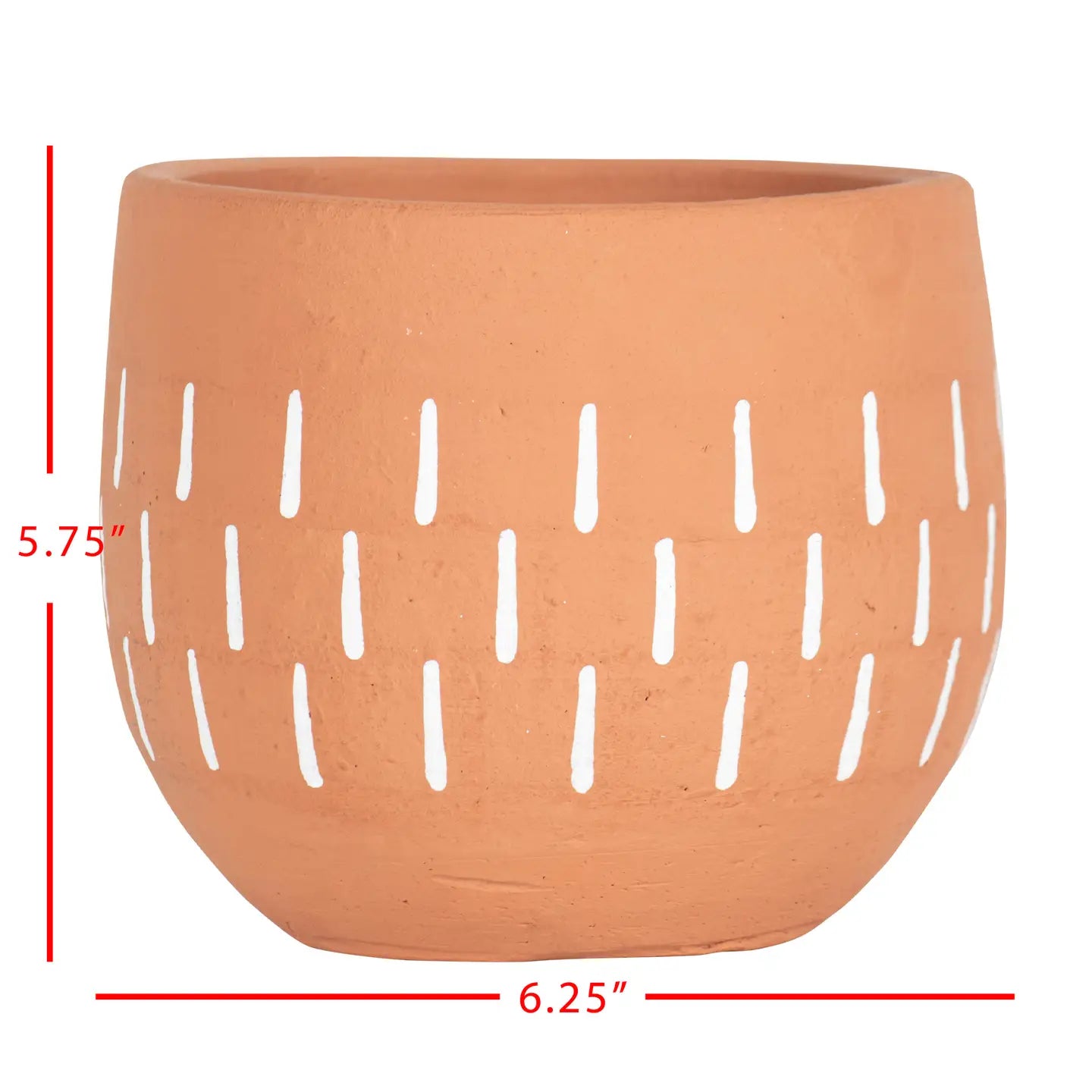 Due to the handcrafted nature of this item, no two pieces will be identical. -No drainage holes. -Interior Dimensions: 5.5x5"H -Materials: Terracotta