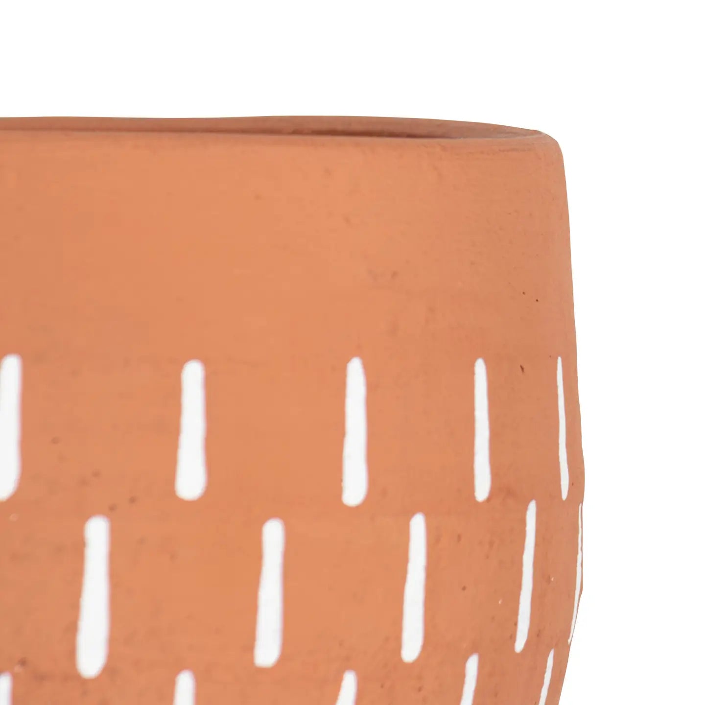 Hand thrown and hand painted by artisans in India, the beauty of craftsmanship is easy to see on this terracotta pot. Perfectly suited for accenting indoor and outdoor spaces with a boho decor style.