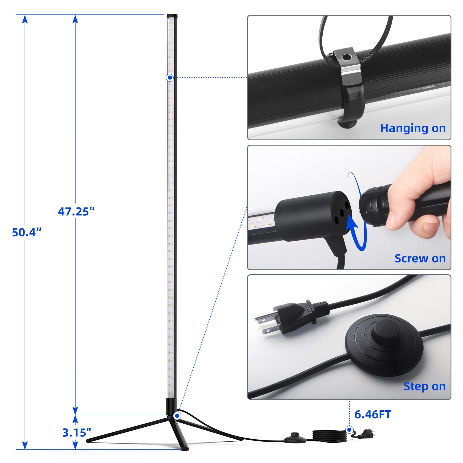 - Simple and Quick Installation: Designed for convenience, our grow light can be effortlessly set up. Just connect the stand to the light, plug in the power, and switch it on
