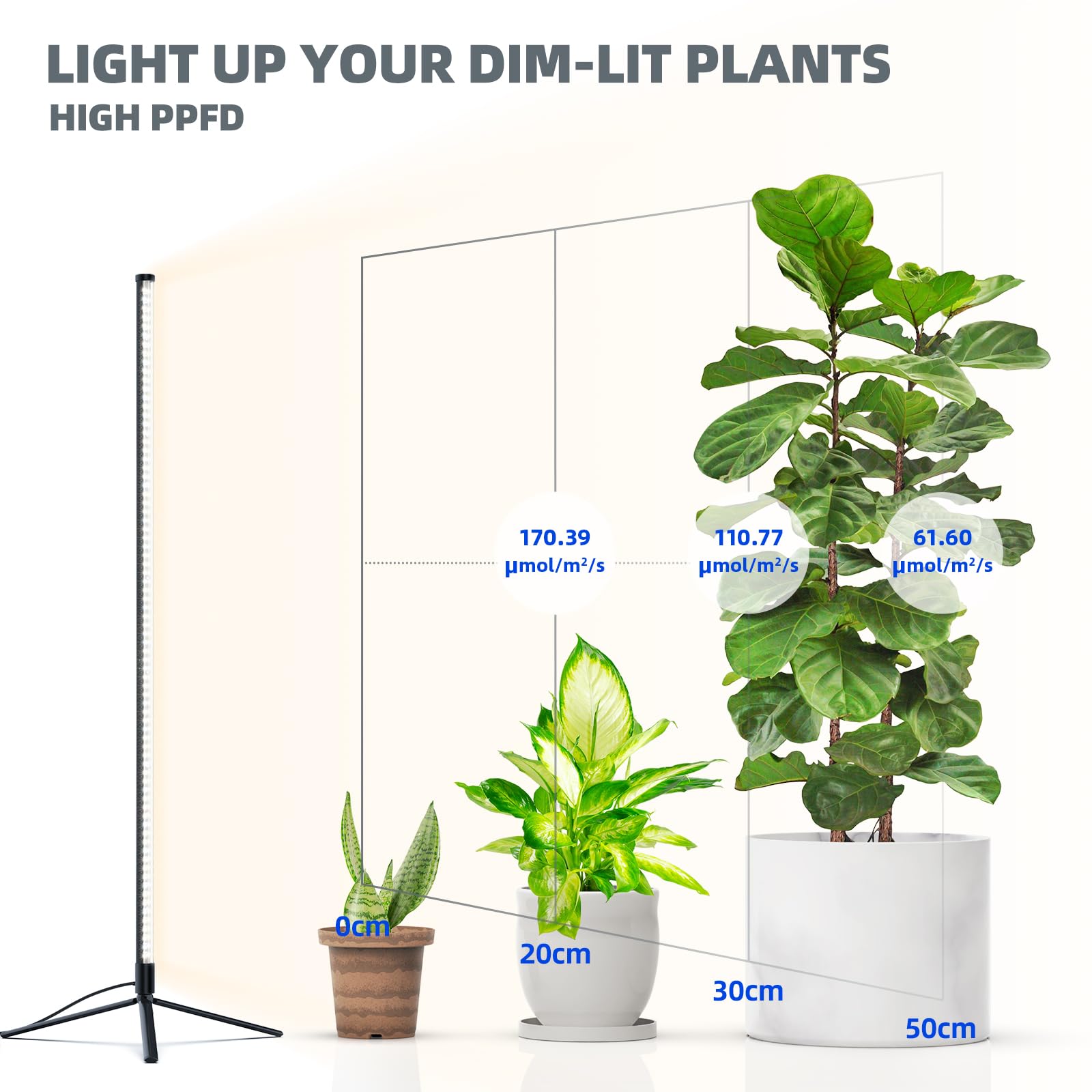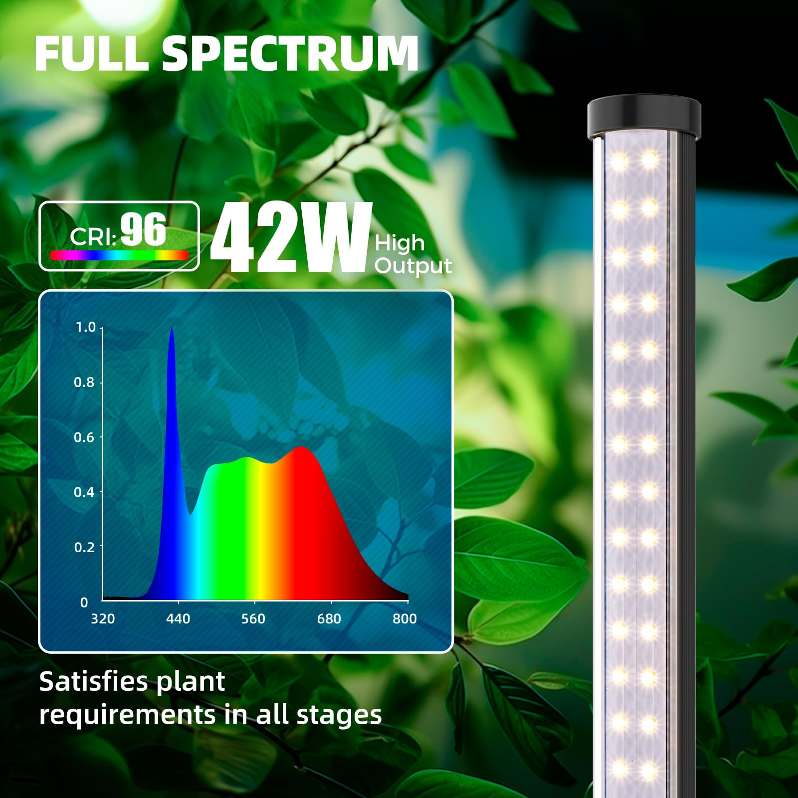 - High-Quality LED Chips and High PPFD: Our grow light is equipped with high-quality LED chips and delivers high PPFD (Photosynthetic Photon Flux Density). It is full spectrum 5000K suitable for a wide range of plants including aquarium plants, potted plants, ornamental plants, and flowering plants.With a CRI of 96, it provides a daylight white color that closely resembles natural sunlight
