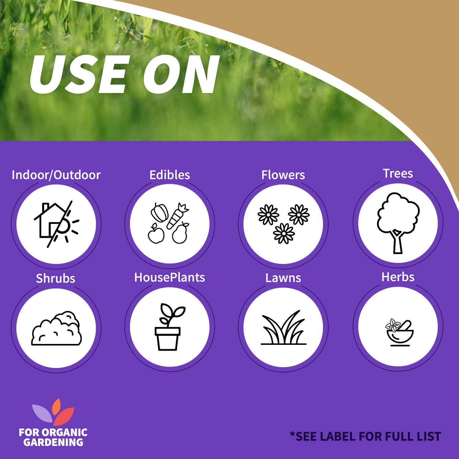 - USE ON ANY PLANT - This organic product, can be used on roses and other flowers, vegetables, herbs, spices, indoor houseplants, trees, turf, shrubs, and any other organic gardening you may perform.