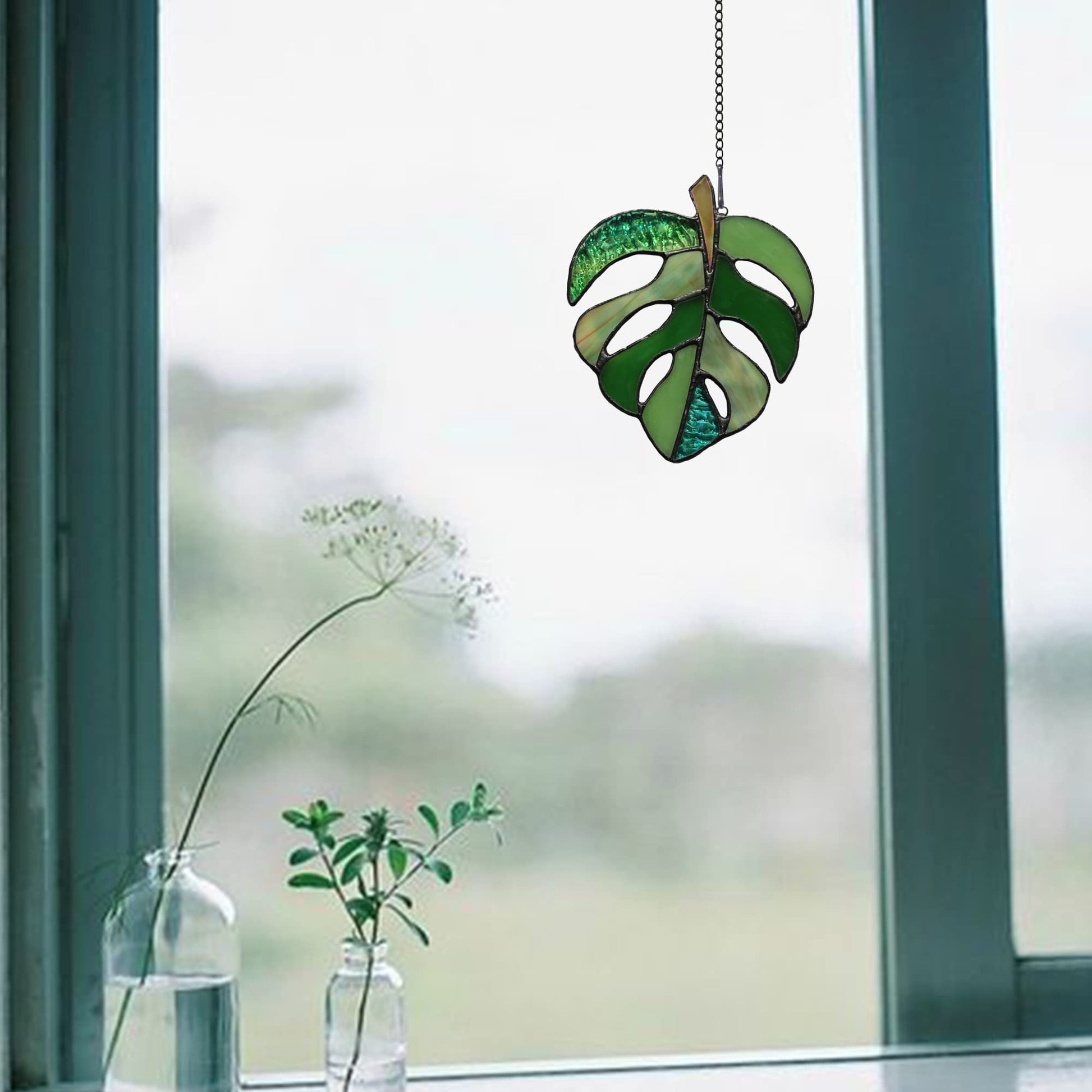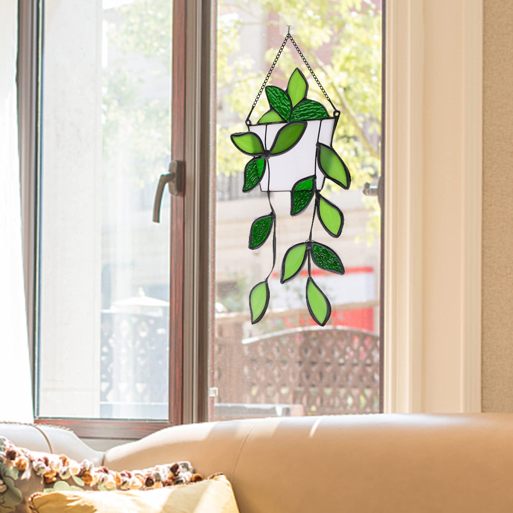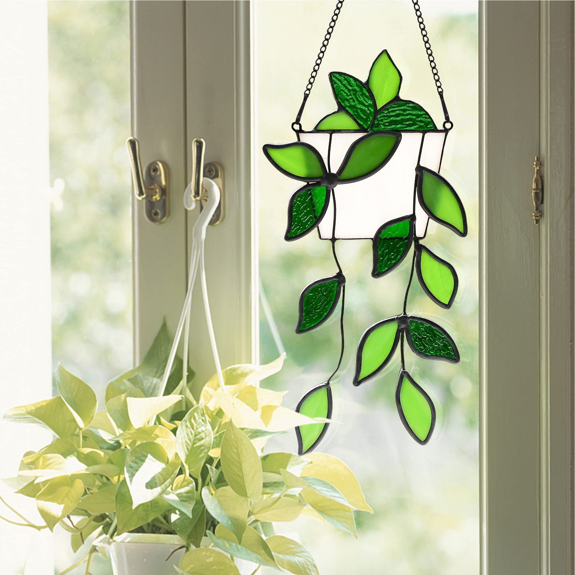 - STAINED GLASS PLANT WINDOW HANGING : Our Hanging Fake Plant Stained Glass Window Hanging Feature a Highly Realistic Look,Vibrant Colors and Timeless Beauty.The Stained Glass Plants Suncatchers Will Look Beautiful in Your Window,Balconies,Windowsill or Living Room Along with Your Plants. Add a Touch of Green to Your Home and Lift Your Mood With Our Plant Stained Glass Window Hanging.