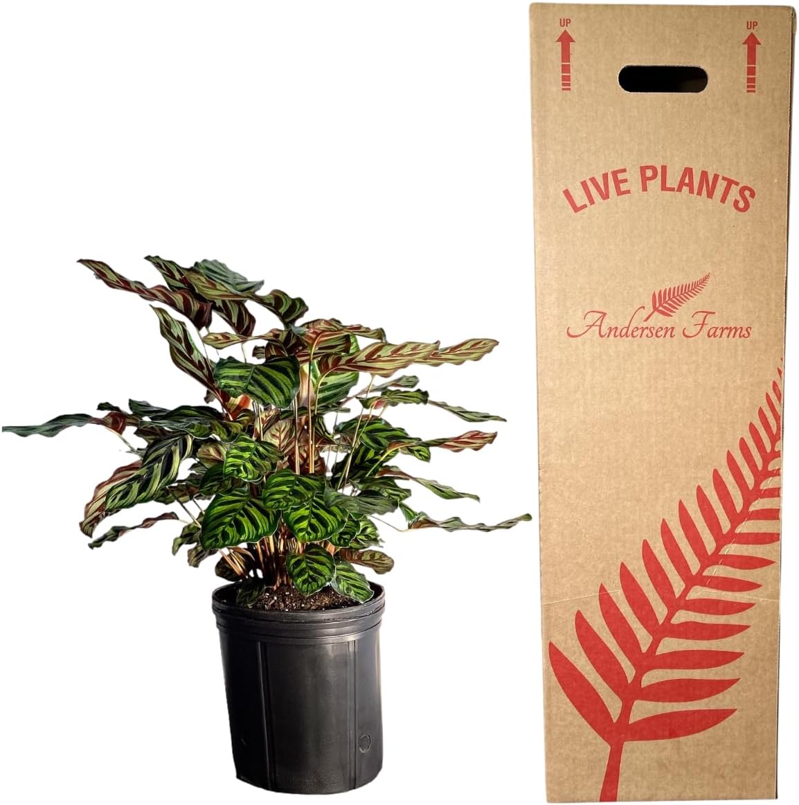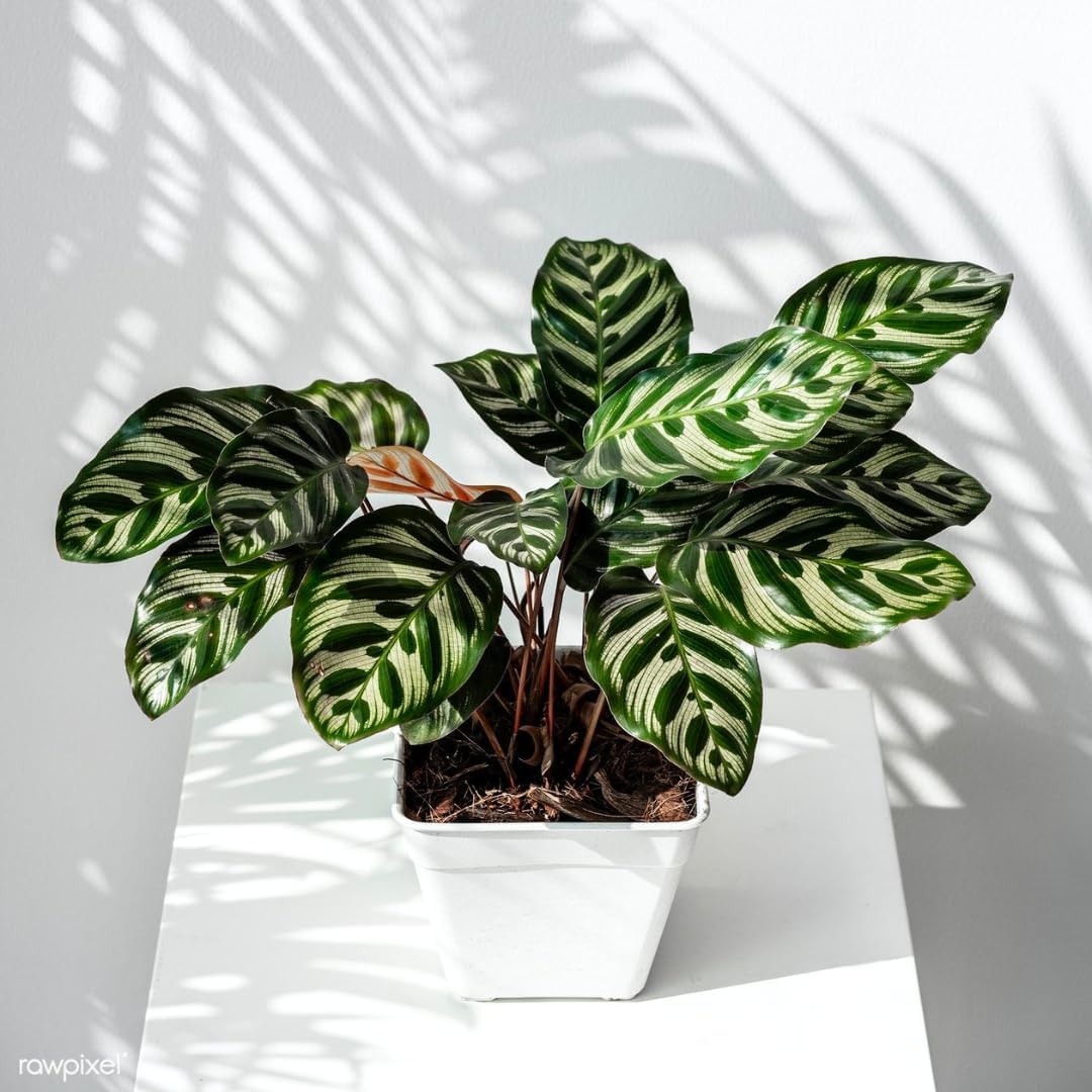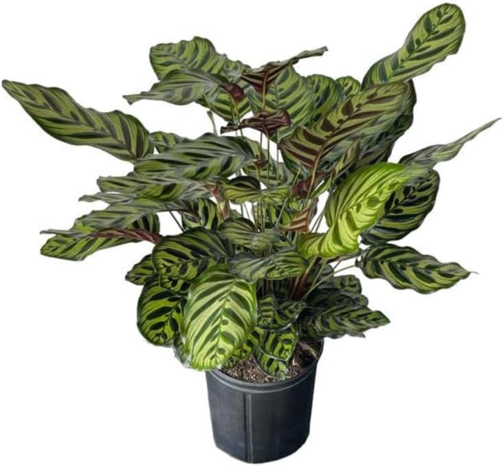The Calathea Makoyana, also known as the Peacock Plant, is a stunning tropical houseplant prized for its unique foliage. Its broad, oval leaves showcase intricate patterns of dark green and creamy white, resembling the feathers of a peacock. The undersides of the leaves feature a rich purple hue, adding an extra layer of visual appeal. Ideal for indoor environments, this plant thrives in low to medium light and requires high humidity, making it a perfect choice for plant enthusiasts seeking to add a touch of exotic beauty to their collection.