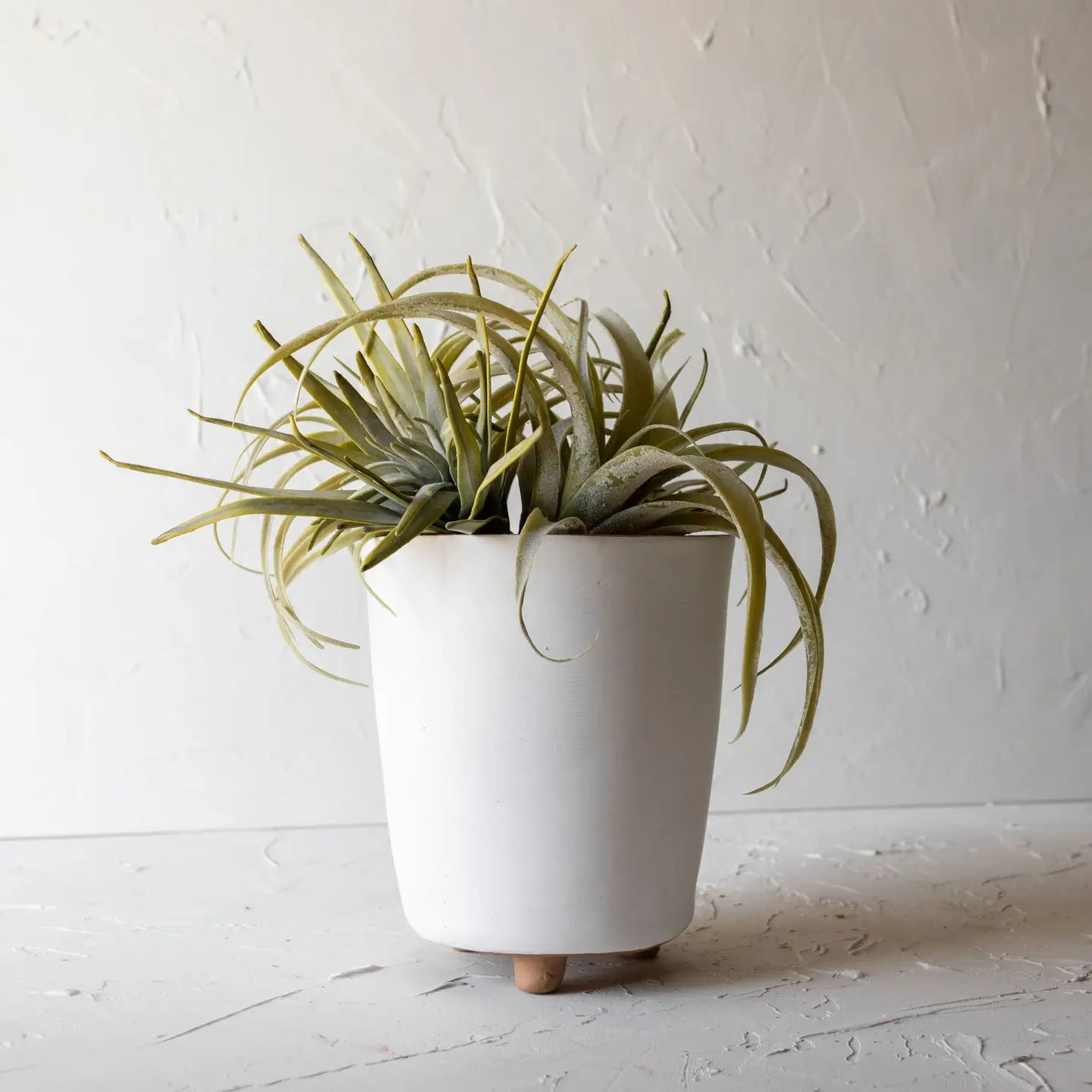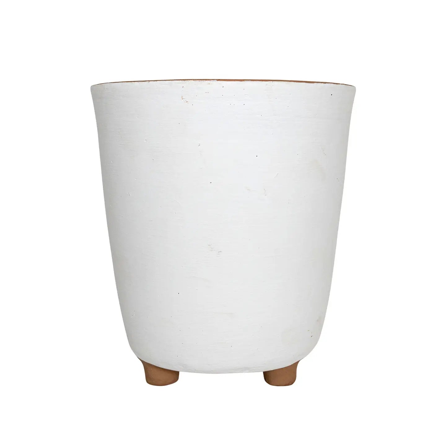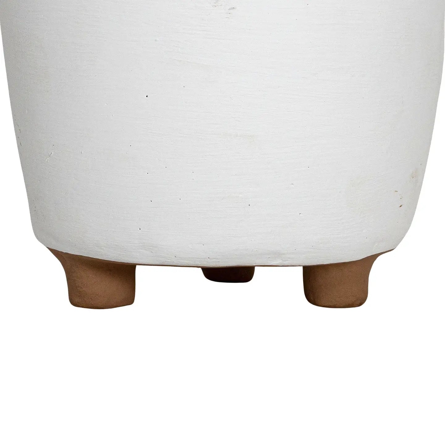 Corbin Footed Terracotta Pot - Hand thrown and hand painted, the natural terracotta clay is contrasted with a clean white painted exterior. Elevated by small feet, the large size of this modern style terracotta pot creates a home for your favorite houseplants!