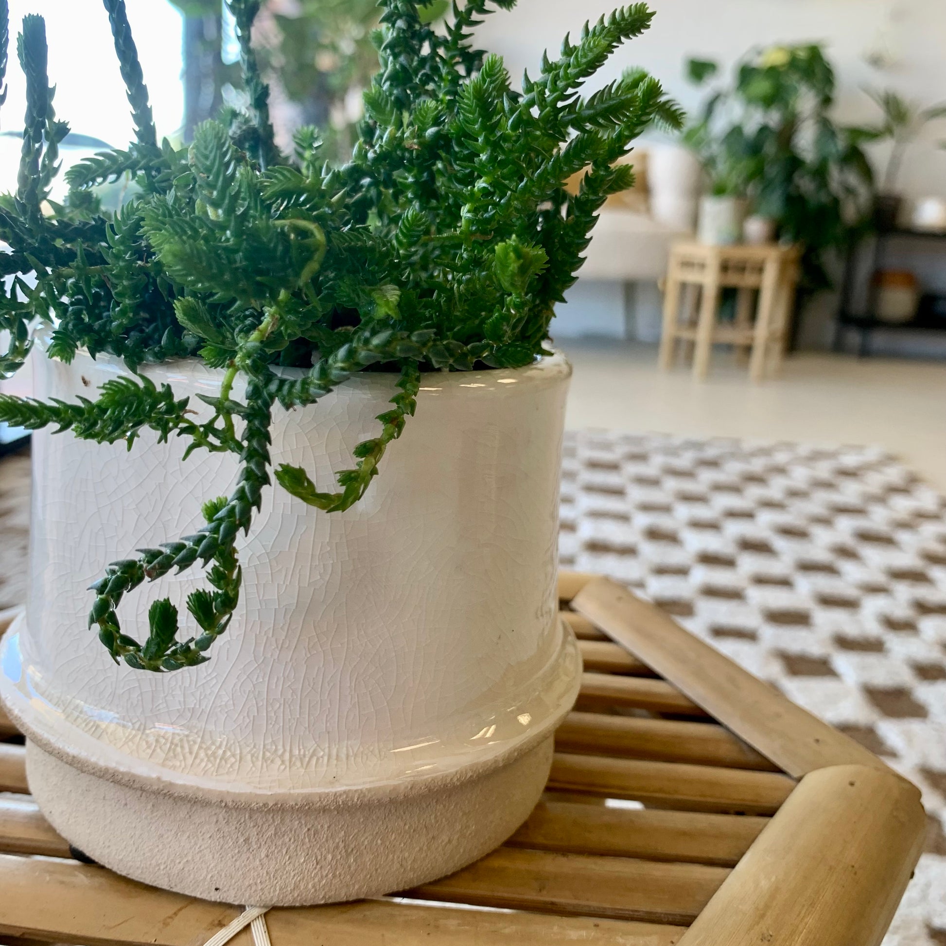 The small, pale yellowish-green, musty-smelling flowers appear along with the leaves tight along the stems from spring to mid-summer. This succulent is great for adding a unique texture to a mixed planting or hanging planter.