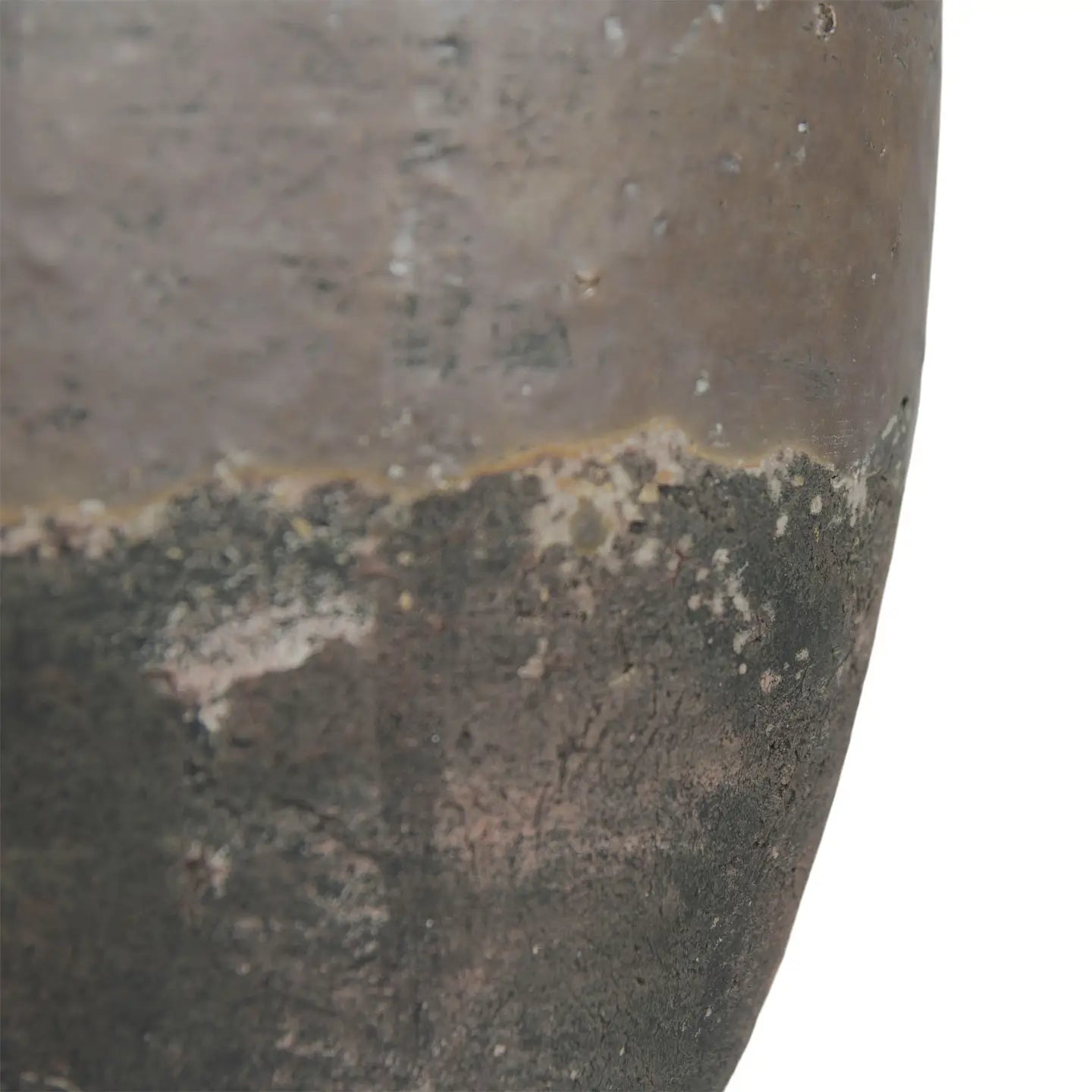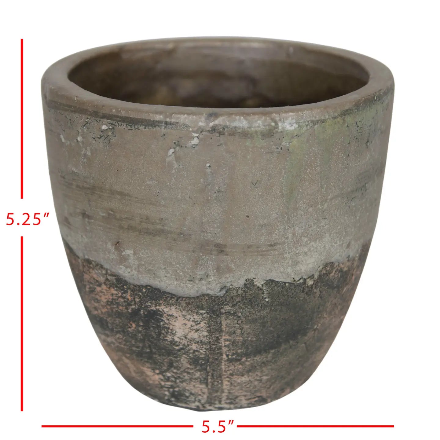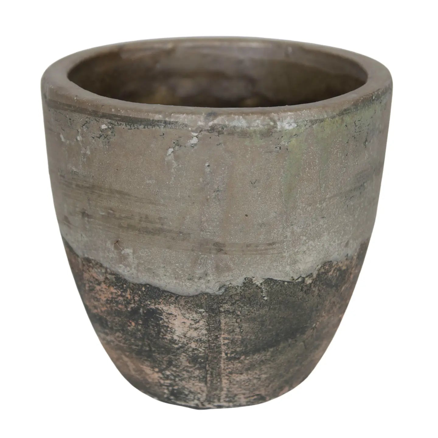 Gita Small Gray Terracotta Planter - Display your favorite plants with this rustic terracotta pot. The clay is pushed into a mold by hand and brushed with a natural matte glaze that gives it a raw, earthy textural finish. Tones of charcoal gray and earthy brown will elevate the look of your greenery in this planter.