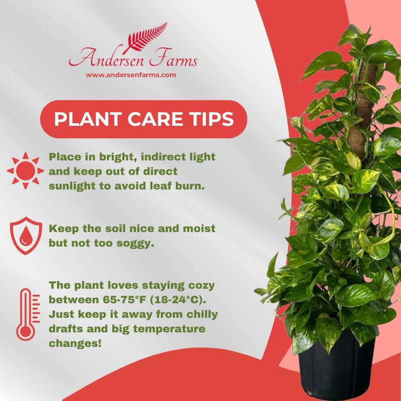 🌿 Bring Nature Indoors: Add a refreshing touch to any space with the Golden Pothos Totem, featuring lush, trailing vines and heart-shaped, golden-green leaves. 🌞 Versatile Placement: Ideal for both indoor and outdoor environments, this plant thrives in various lighting conditions, perfect for homes, offices, or patios. 💧 Low Maintenance: Known for its easy care, the Golden Pothos requires minimal attention, making it an excellent choice for busy gardeners. 🏡 Air-Purifying: As an air-purifying plant, the Golden Pothos helps to filter out toxins and improve indoor air quality. 🪴 Grower Pot Included: Comes in a 10-inch grower pot, providing a stable base for your plant while adding to its visual appeal.