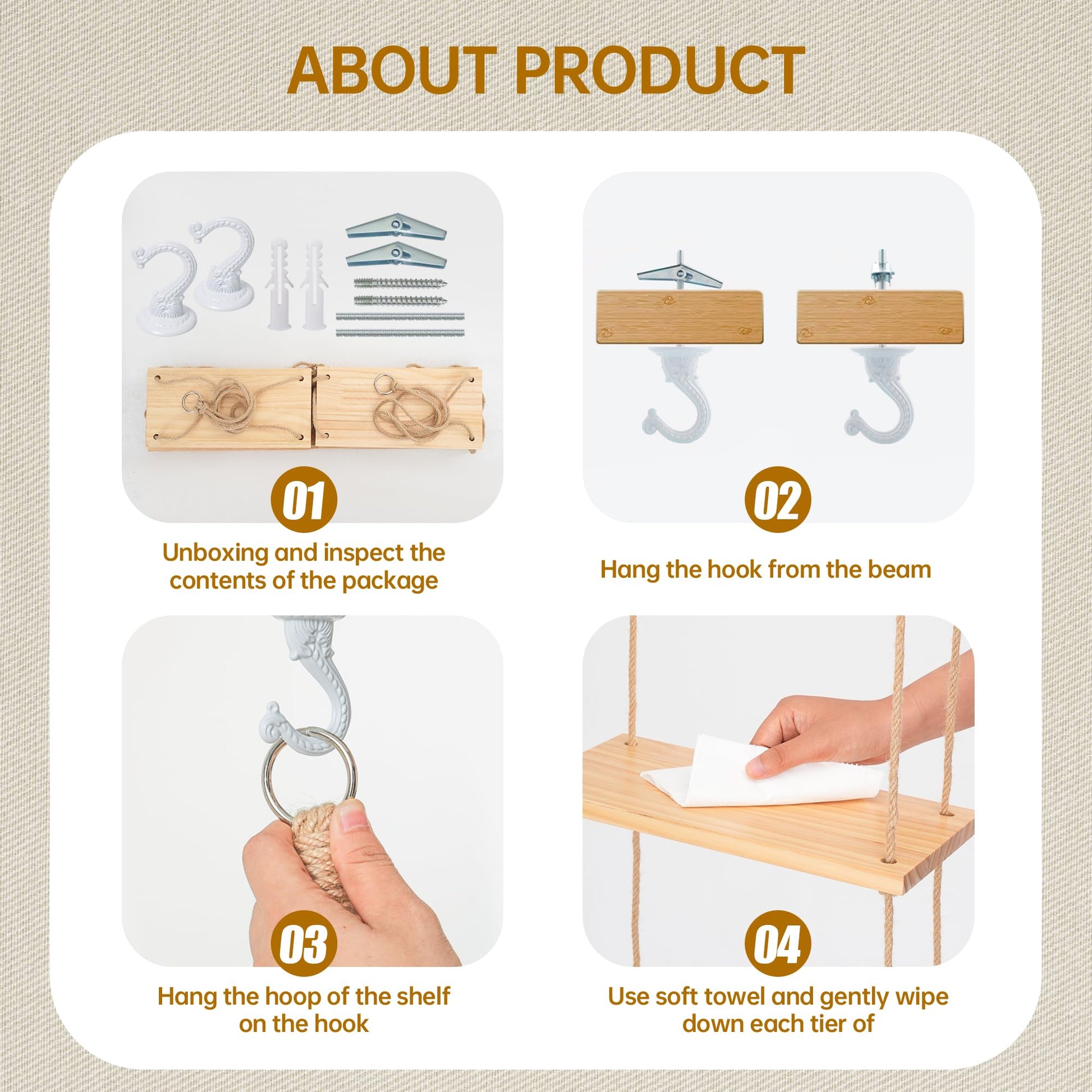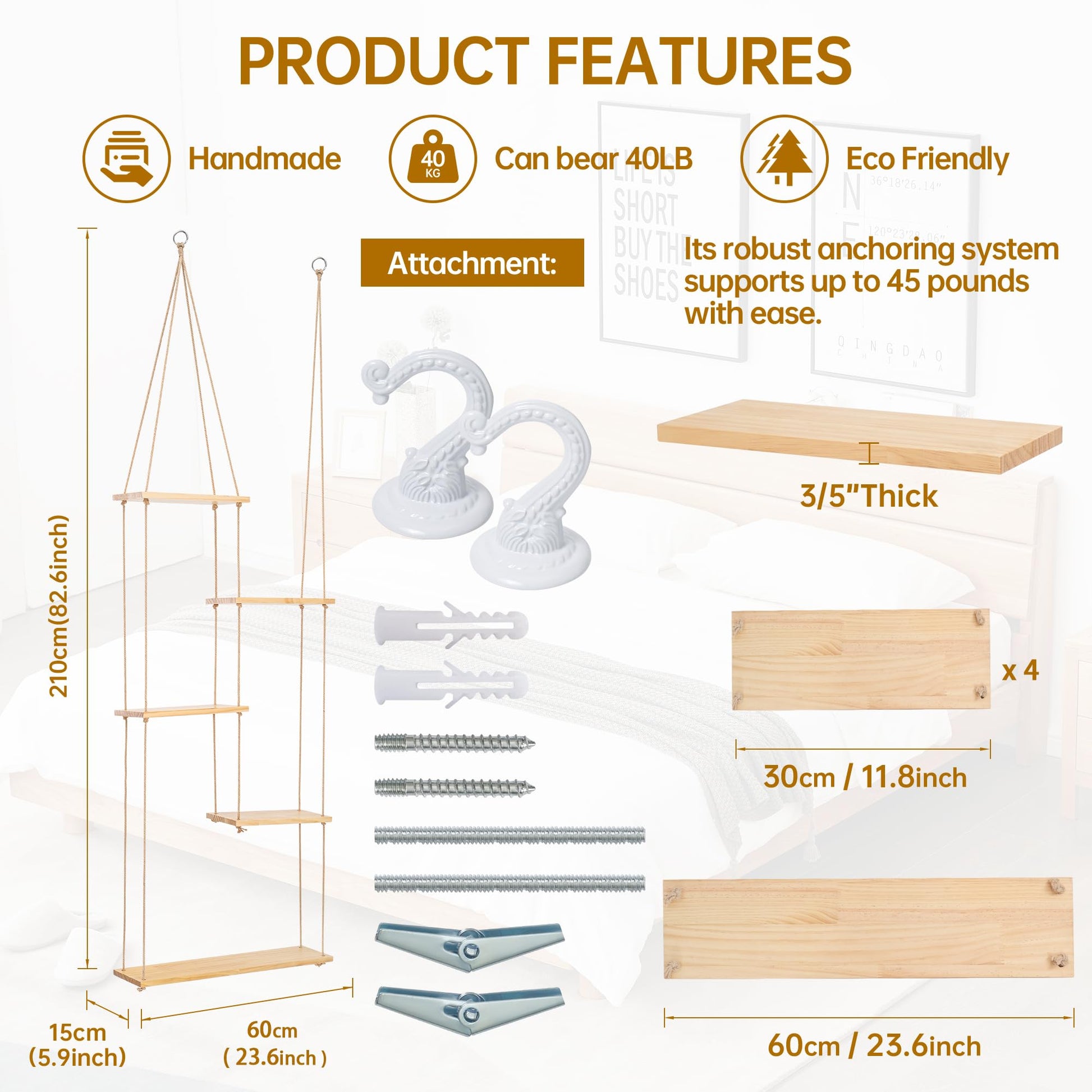 - 【Inspire and Be Inspired】 Elevate your decor and functionality with the 4-Tier Bohemian Macrame Hanging Rack. It's versatile enough to serve as a plant or crystal display, a unique floating coffee table, or a charming nightstand beside your bed. Imagine it as a floating table or reading nook next to your workspace or relaxation area, adding both style and convenience
