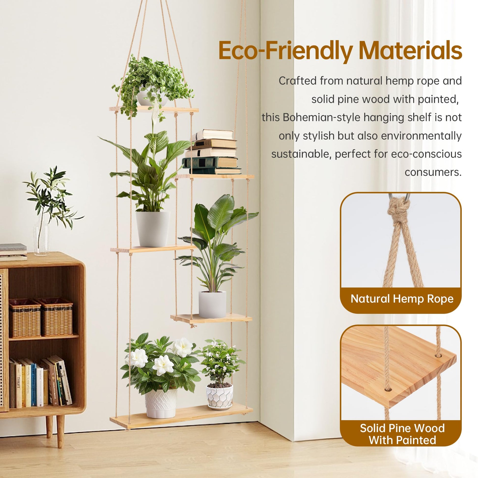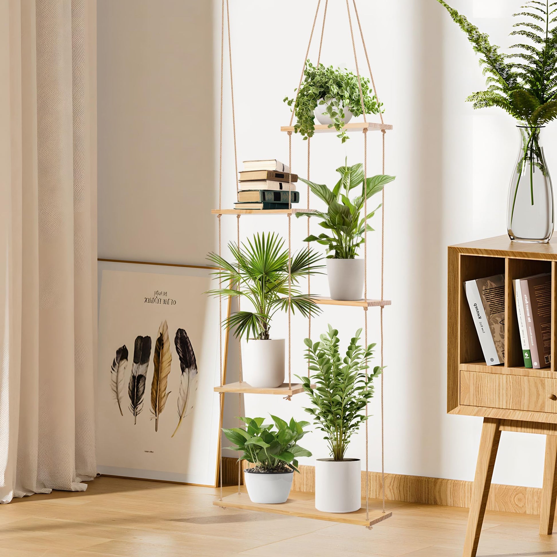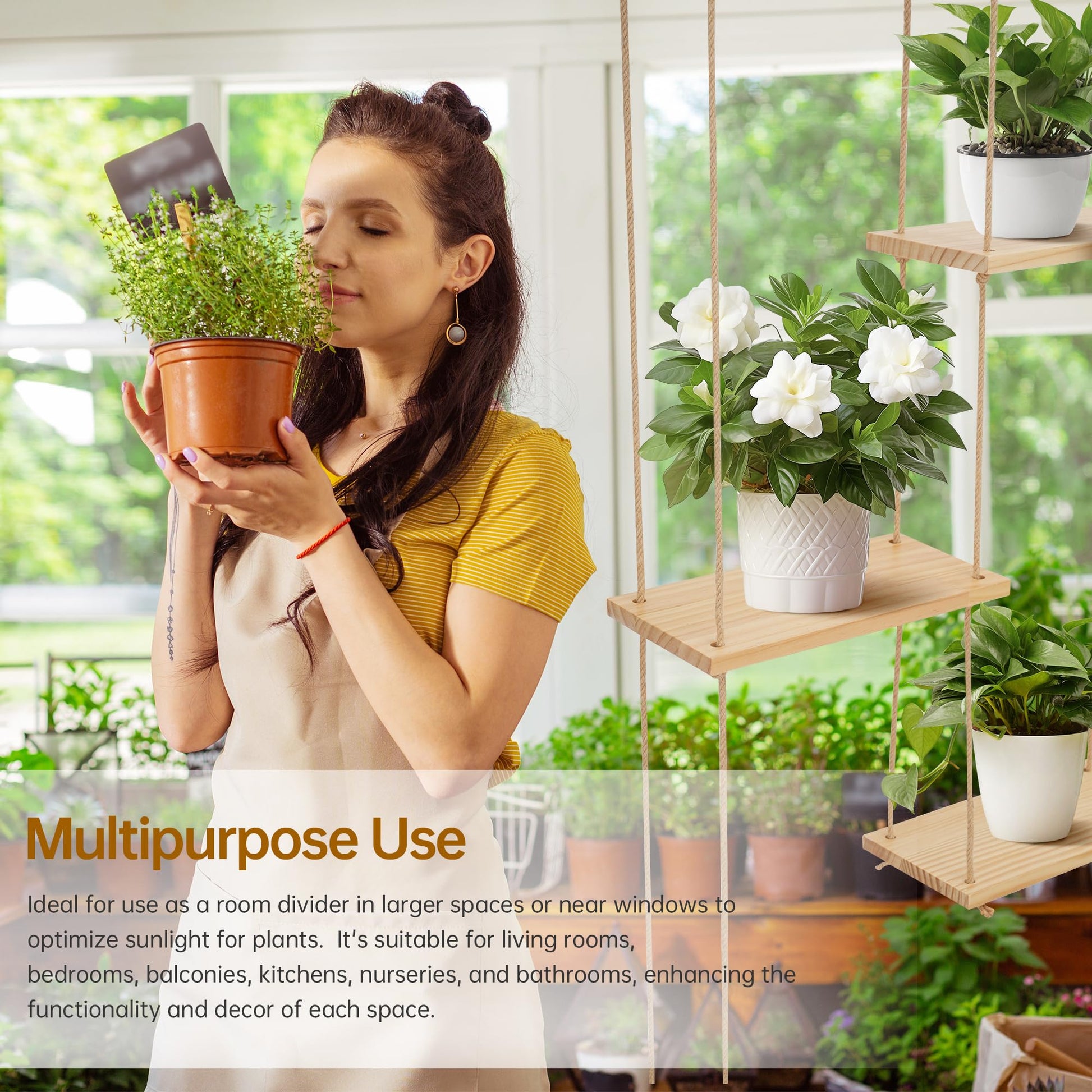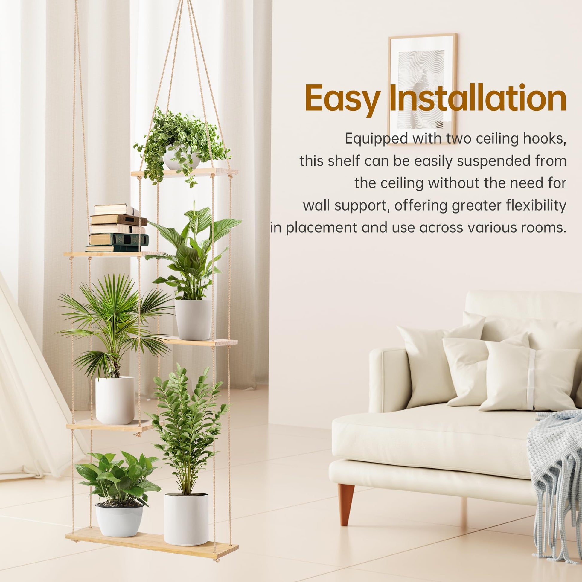 - 【Stunning Unique simplicity Design】 Transform any corner into a botanical oasis with our 4-Tier Bohemian Macrame Hanging Plant Shelf. This unique design hangs effortlessly from the ceiling, making it perfect for small spaces seeking a touch of greenery.