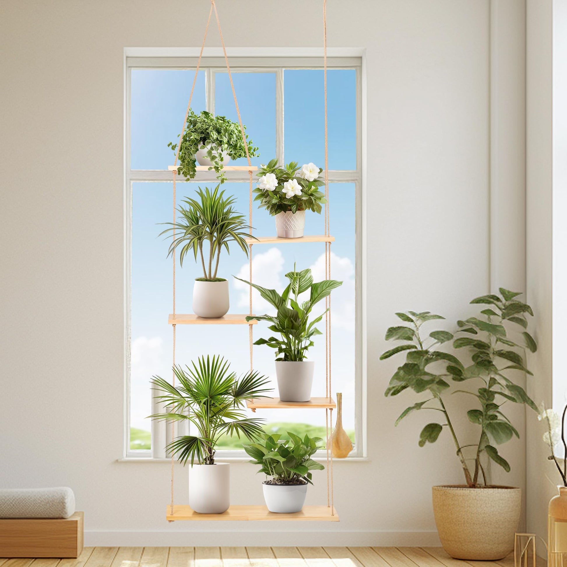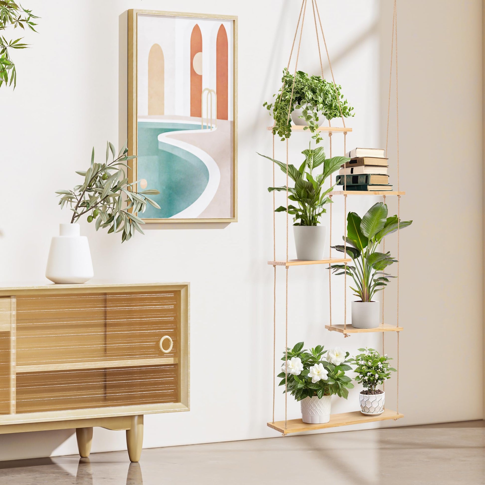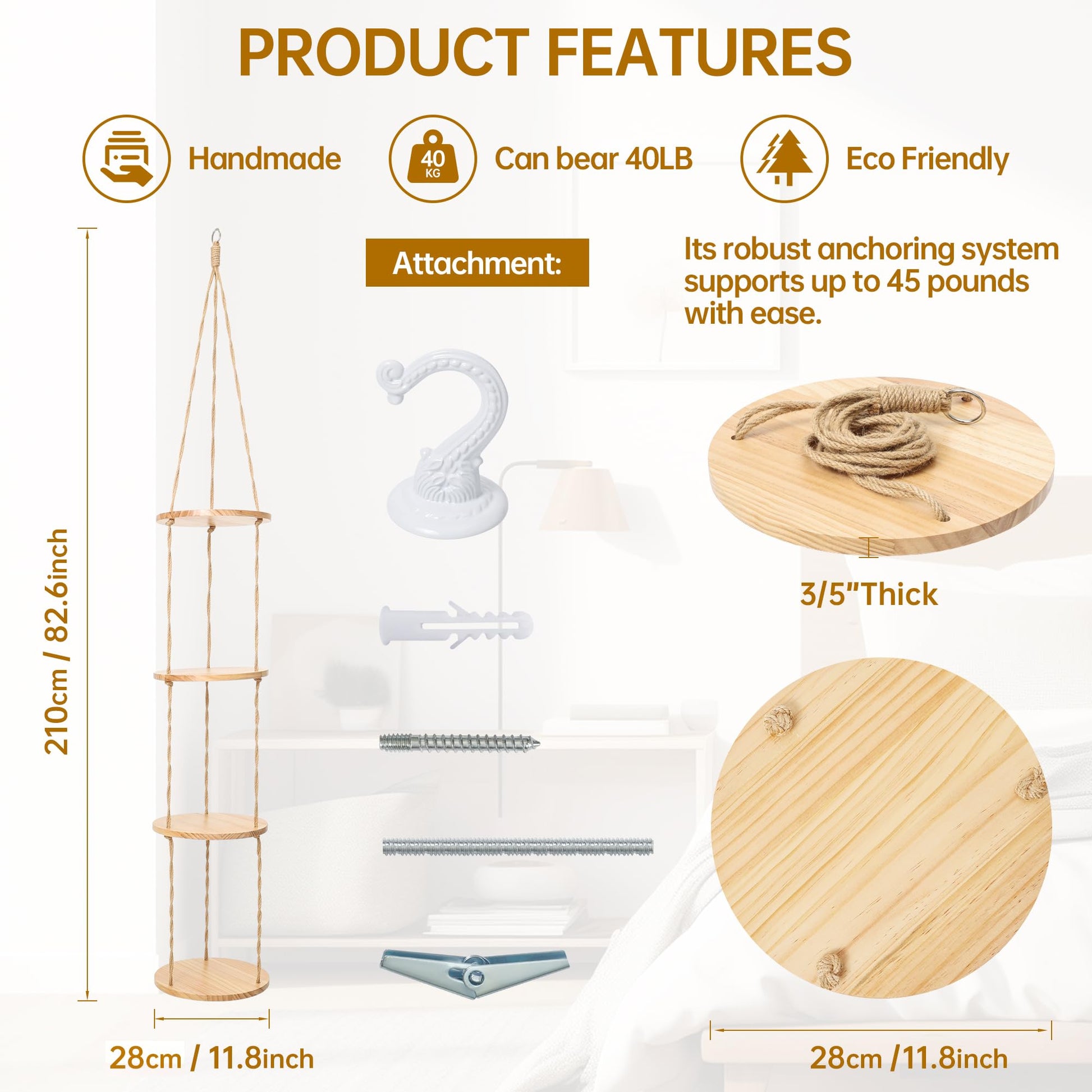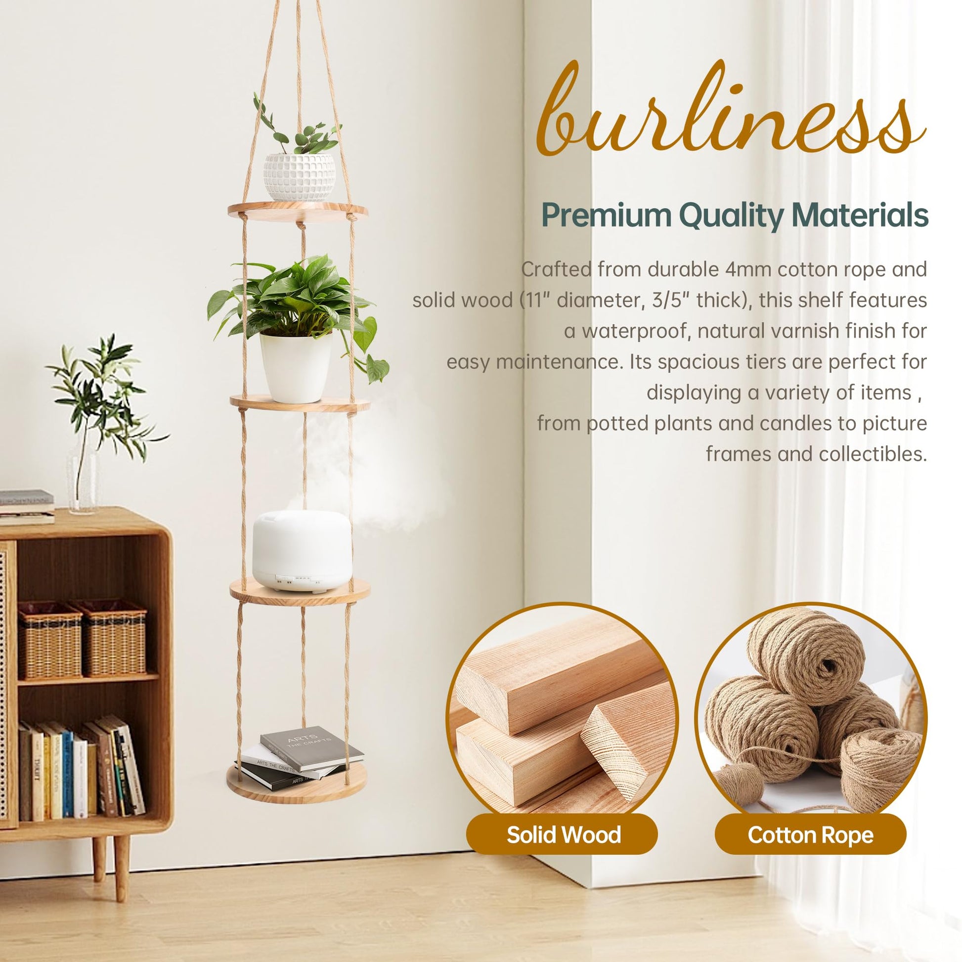 - 【Stunning Unique simplicity Design】 Transform any corner into a botanical oasis with our 4-Tier Bohemian Macrame Hanging Plant Shelf. This unique design hangs effortlessly from the ceiling, making it perfect for small spaces seeking a touch of greenery.