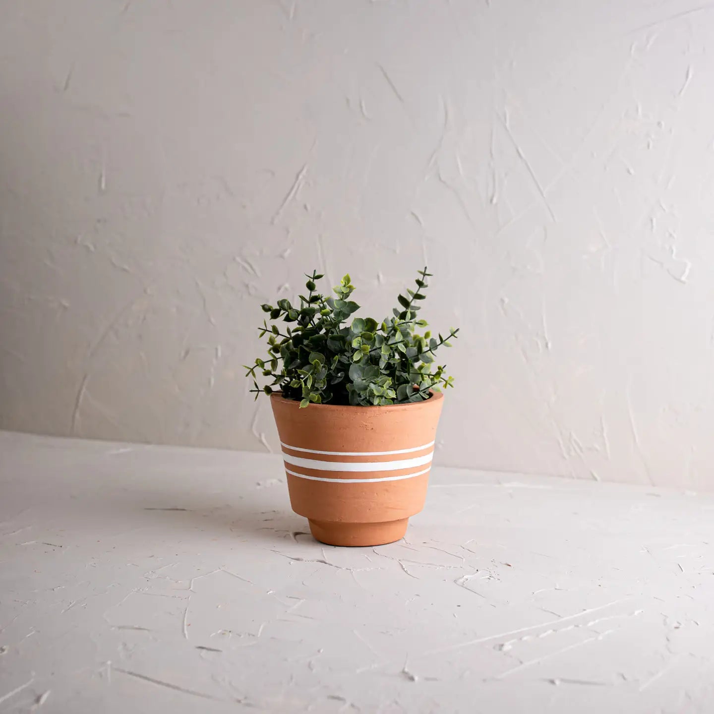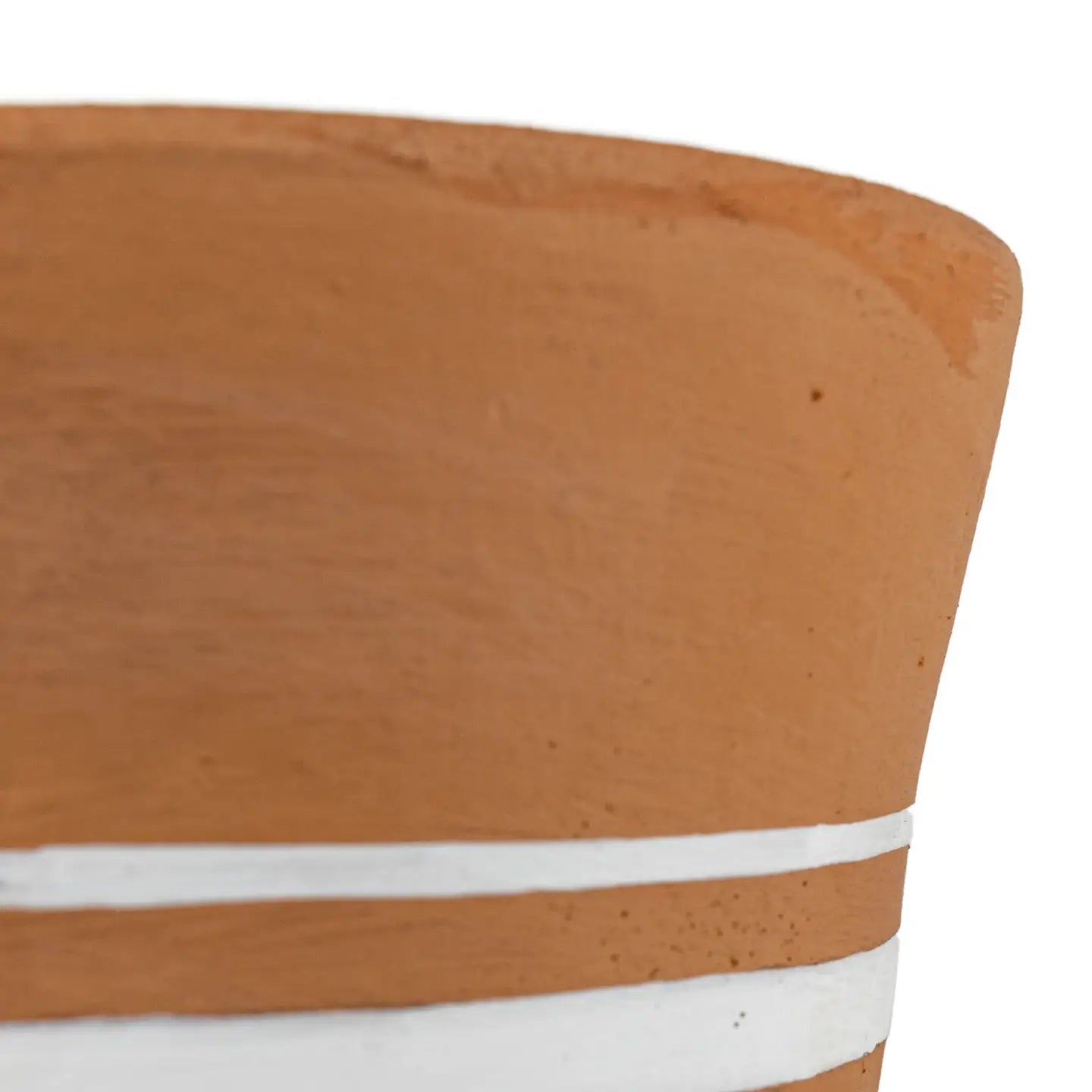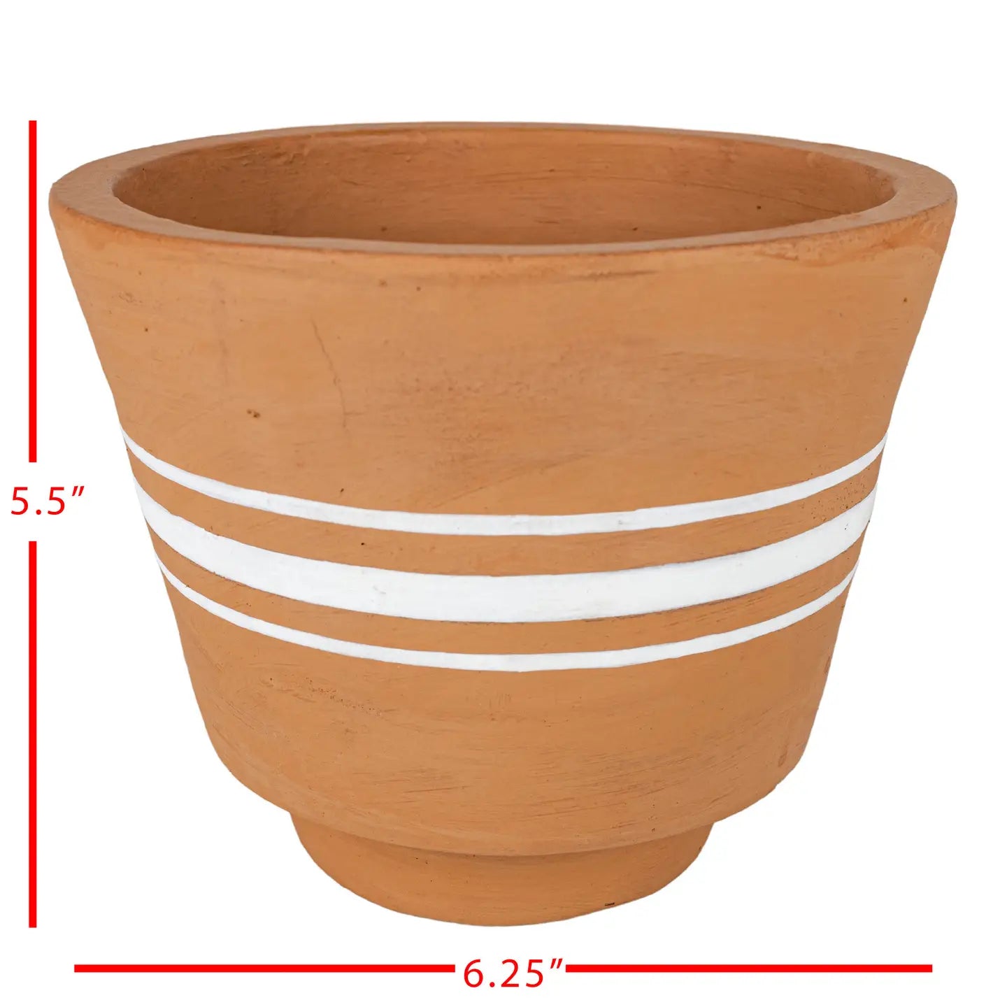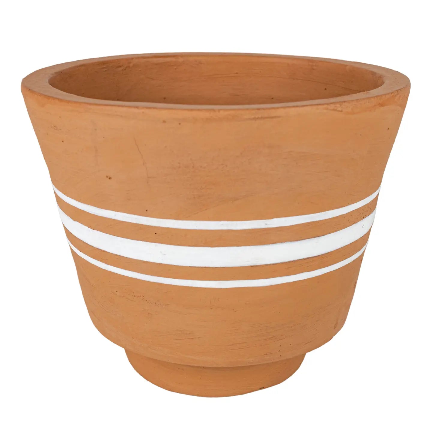Kacy White Stripe Terracotta pot - Using white striping to enhance the texture of the rich terracotta clay, three ticking white stripes wrap around the center of this terracotta pot. Perfectly suited for accenting indoor and outdoor spaces with boho decor styles.