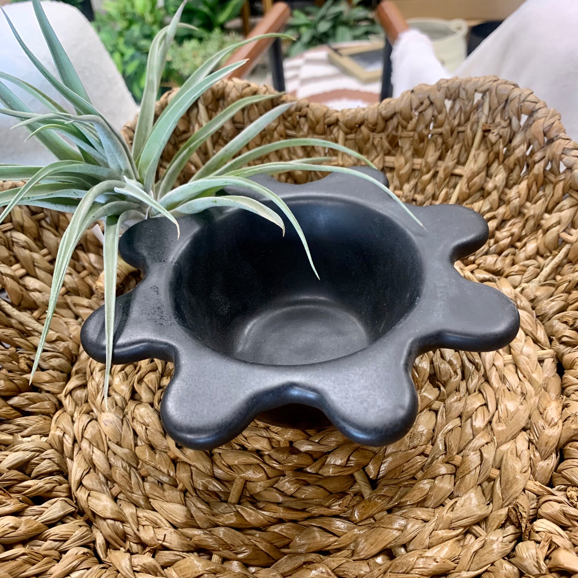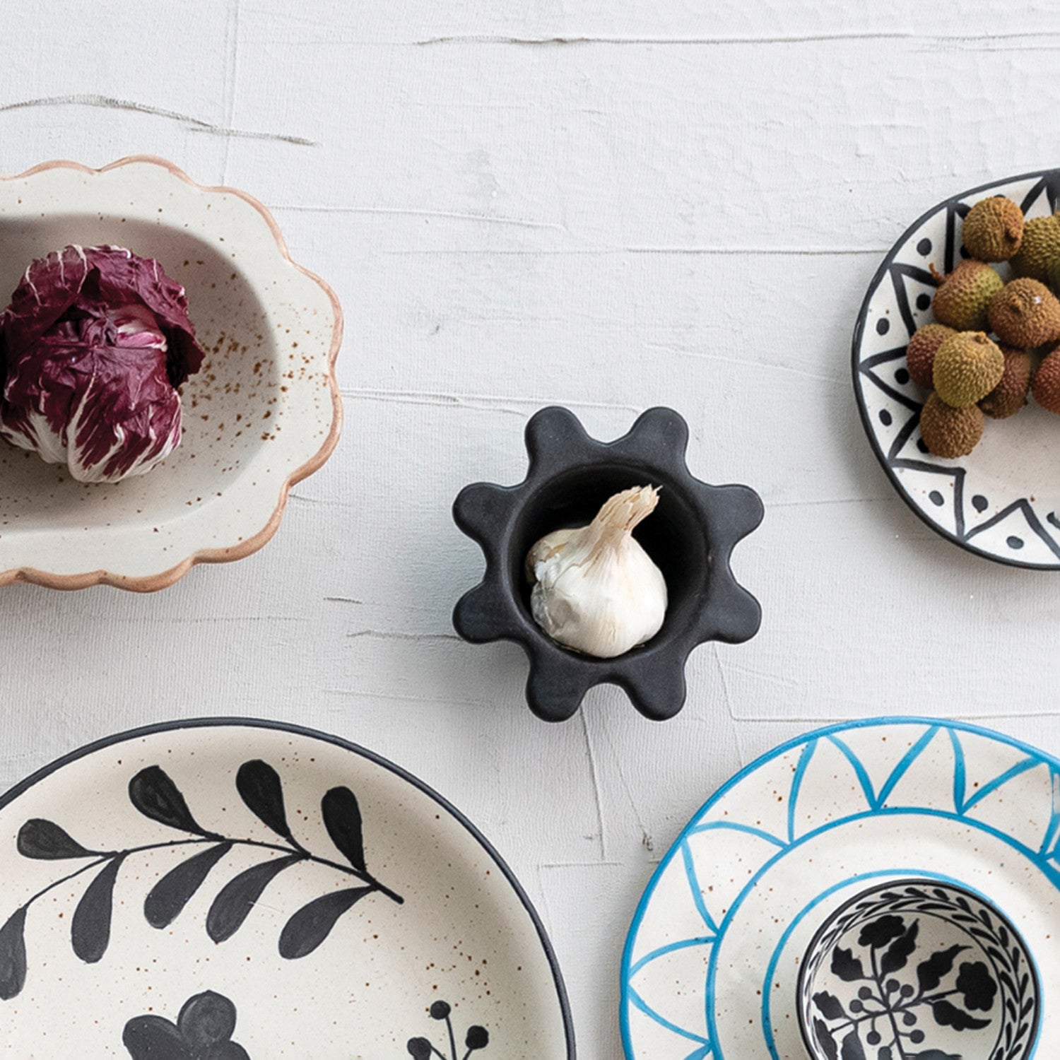 6-1/2" Round x 2-1/2"H Stoneware Abstract Bowl, Matte Black