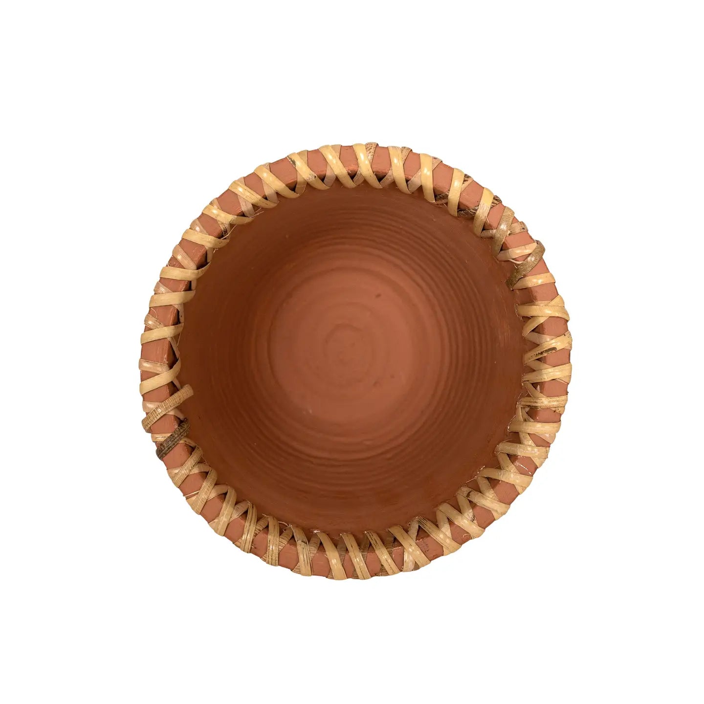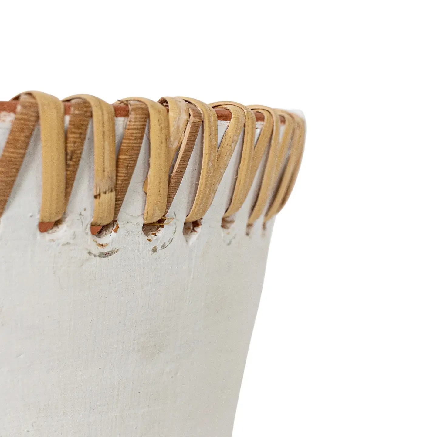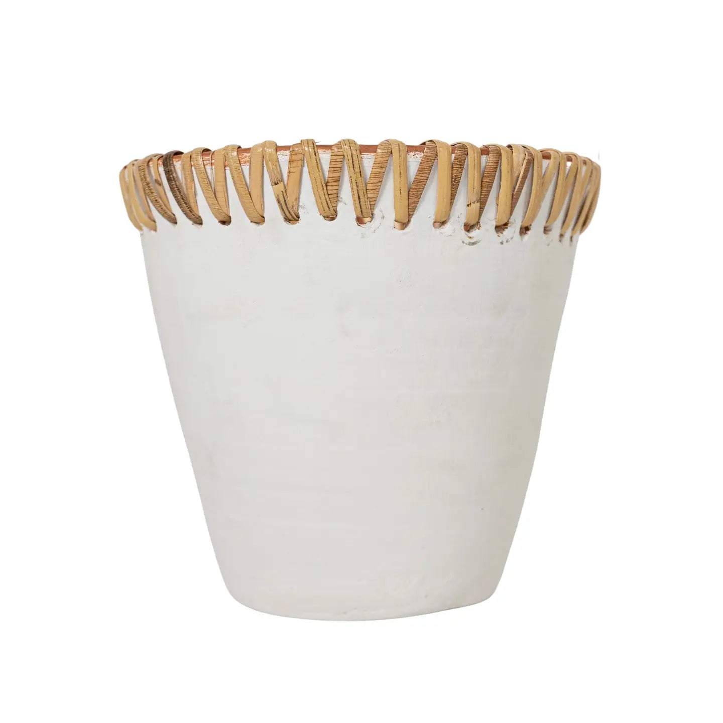 Mesa White Terracotta Pot - Give your plants a stylish home with this terracotta pot from Foreside Home & Garden. Handmade by artisans in India, this planter is carefully crafted from hand thrown terracotta clay and accented by a hand-woven rattan design. The combination of natural materials offers a soft boho infusion for your space. Its bold yet simple display will look lovely both inside and out of your home.